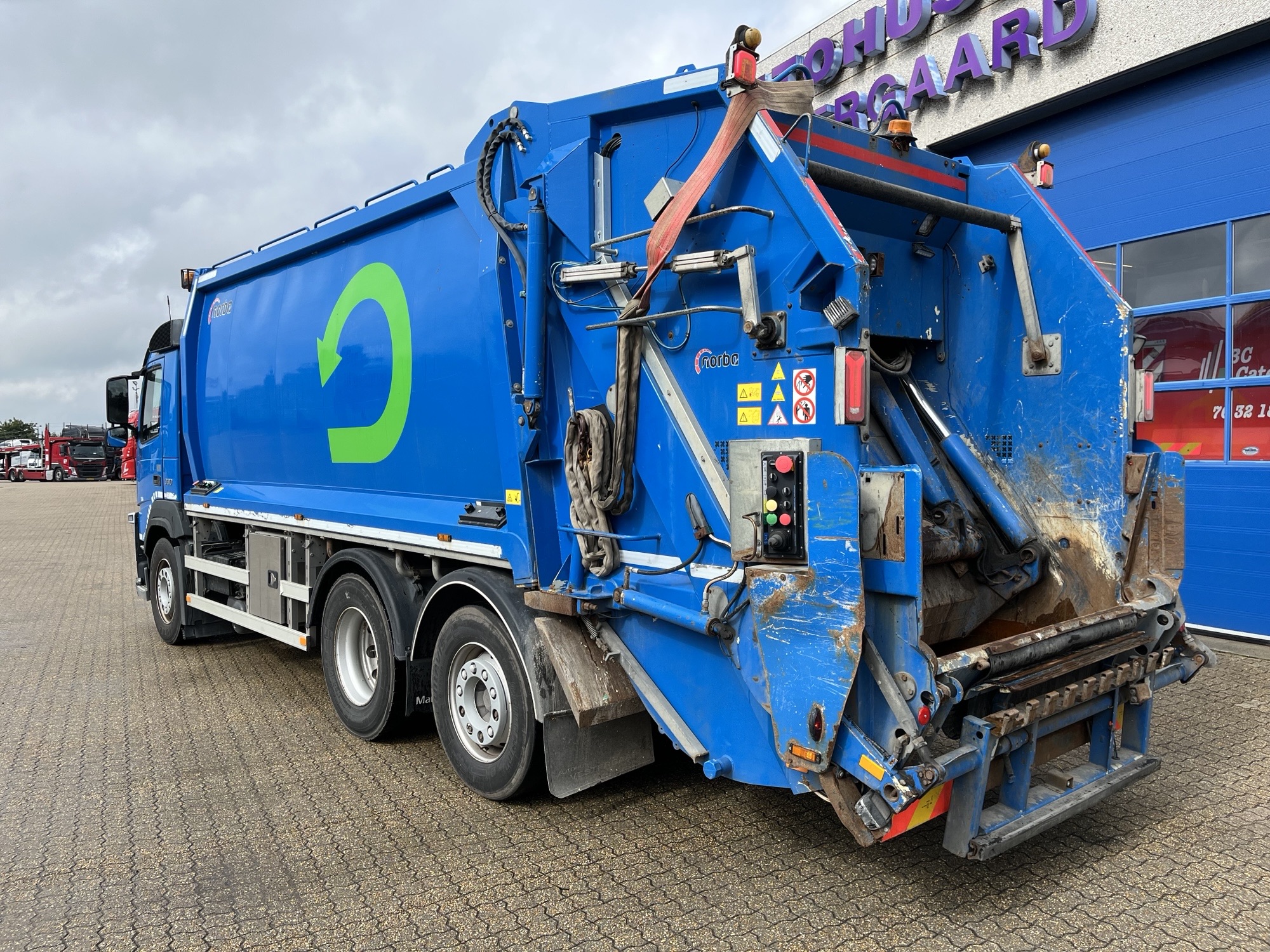 Bilen kan køre industricontainer samt spande.