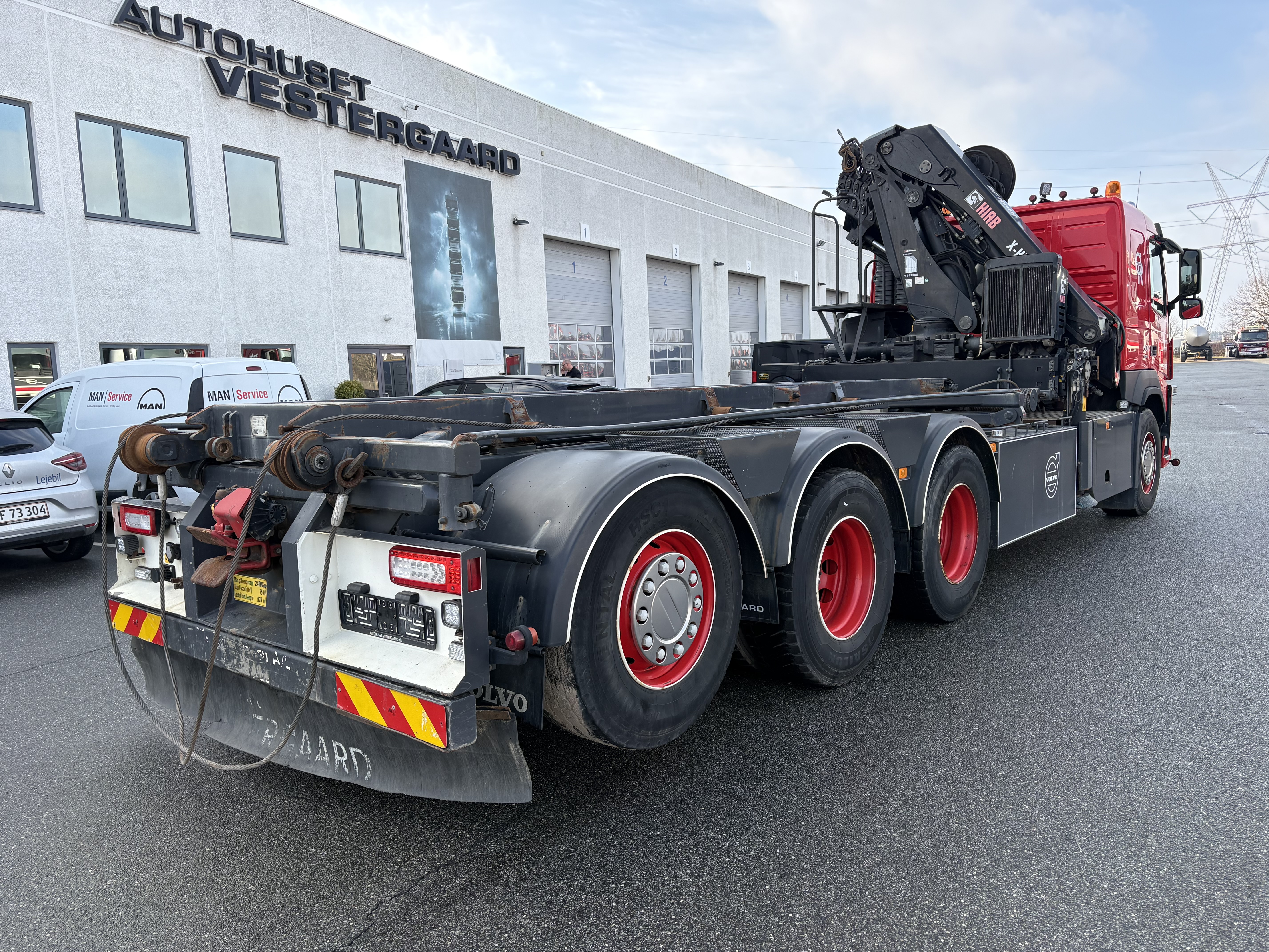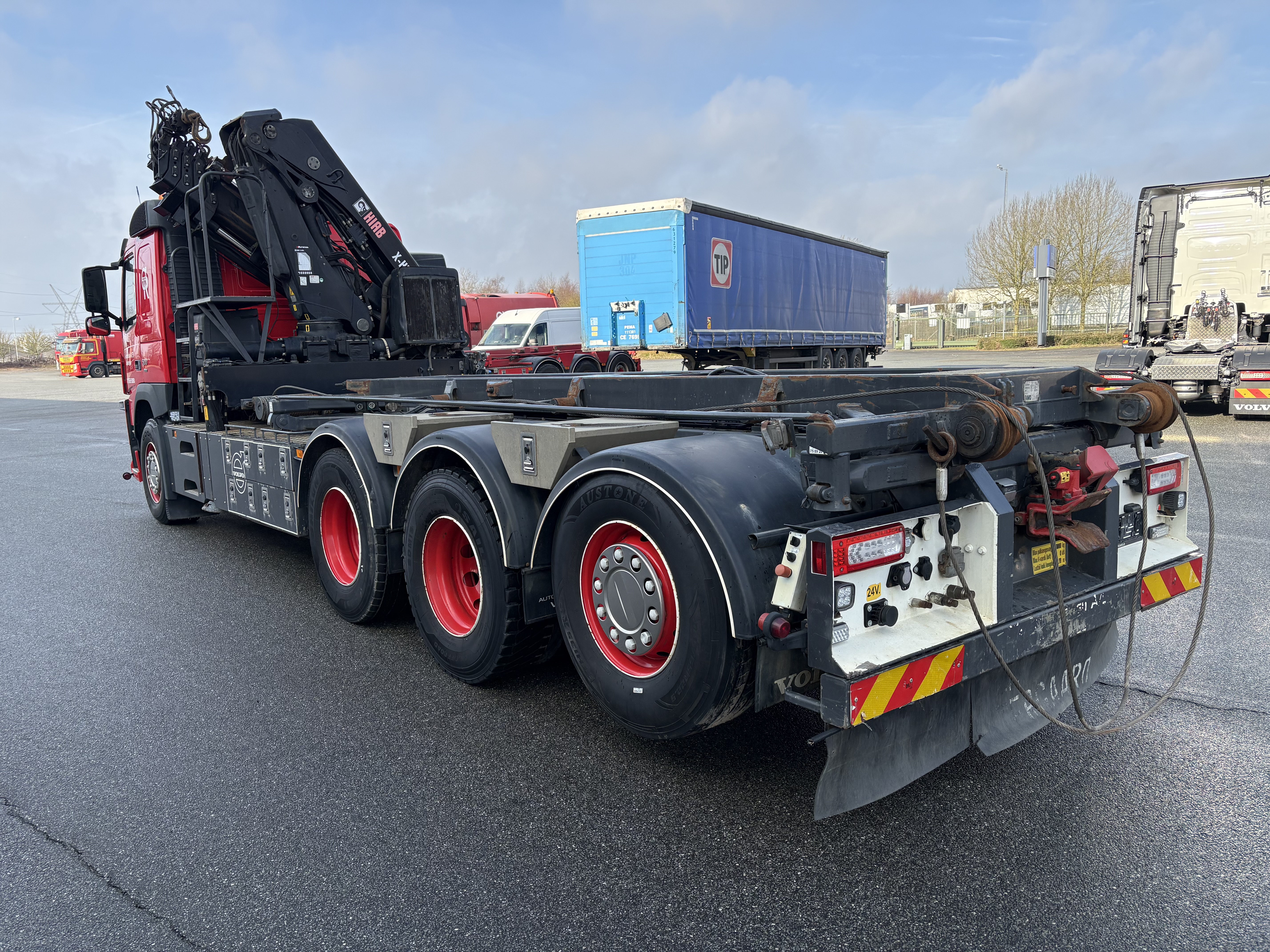 Volvo FM500 8x4 tridemtag, fuld luft, i-shift m. crawler gear, Volvo Dynamic Steering, 9 tons foraksel, sawo hejs, HIAB X-Hipro 302 EP-5 kran, kærretræk. Km. 297.000.