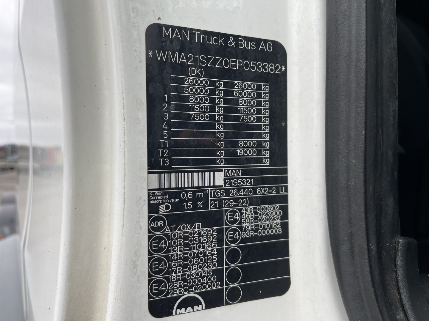 Totalvægt: 26000 Kg