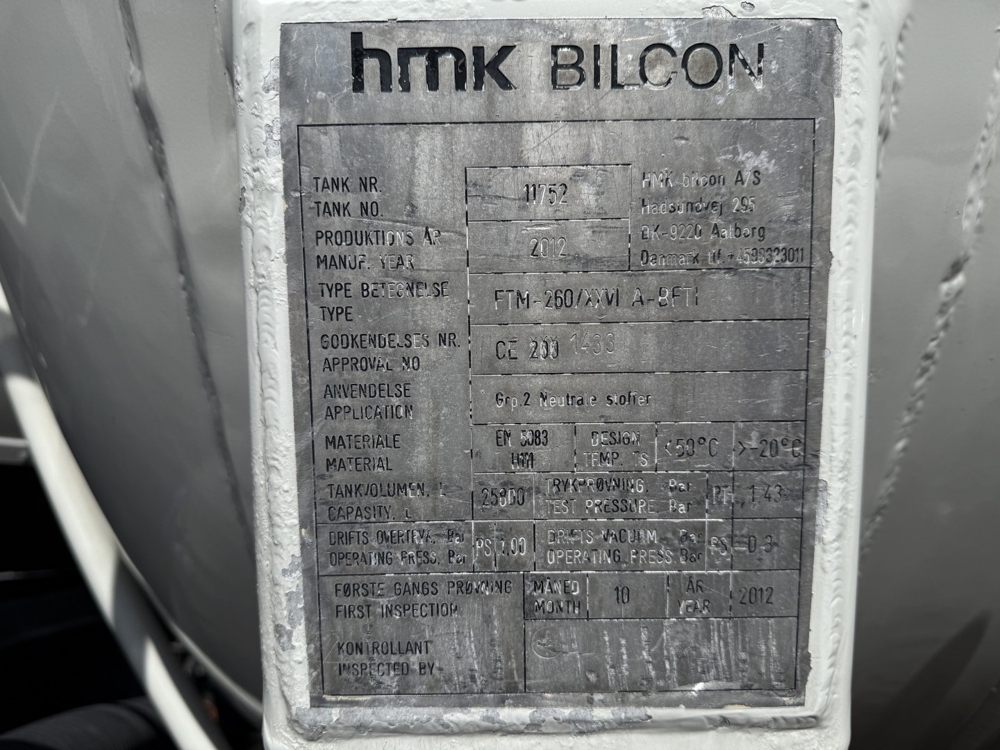 Totalvægt: 26000 kg.