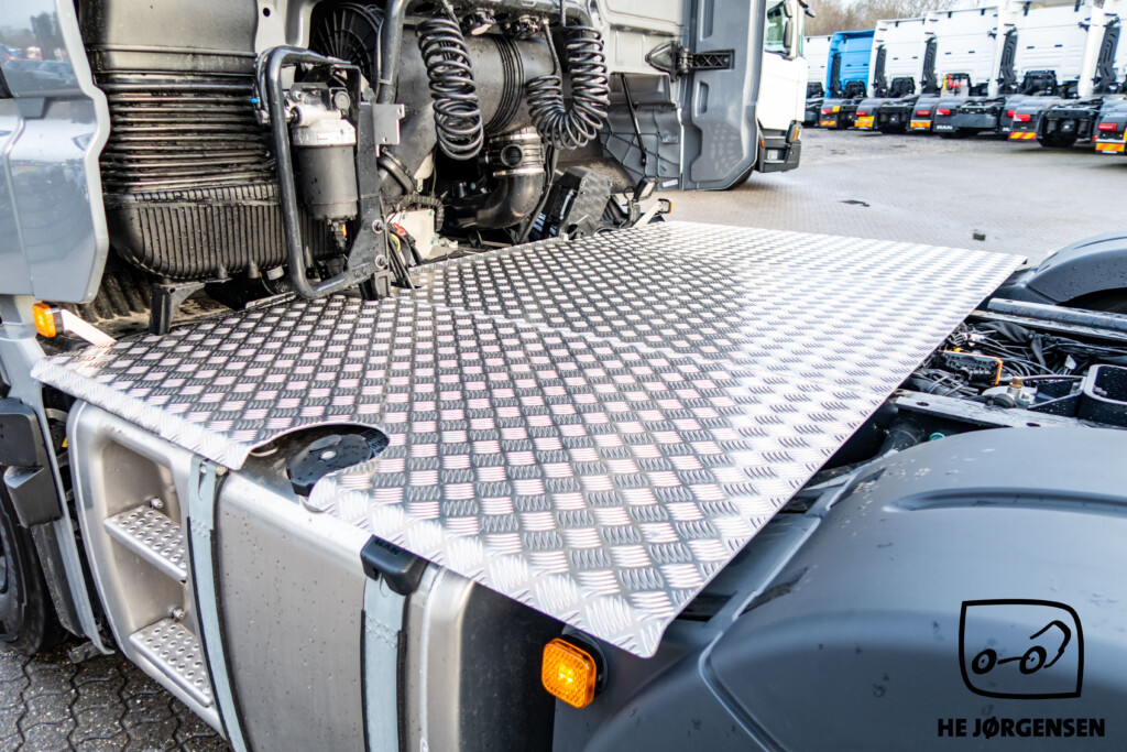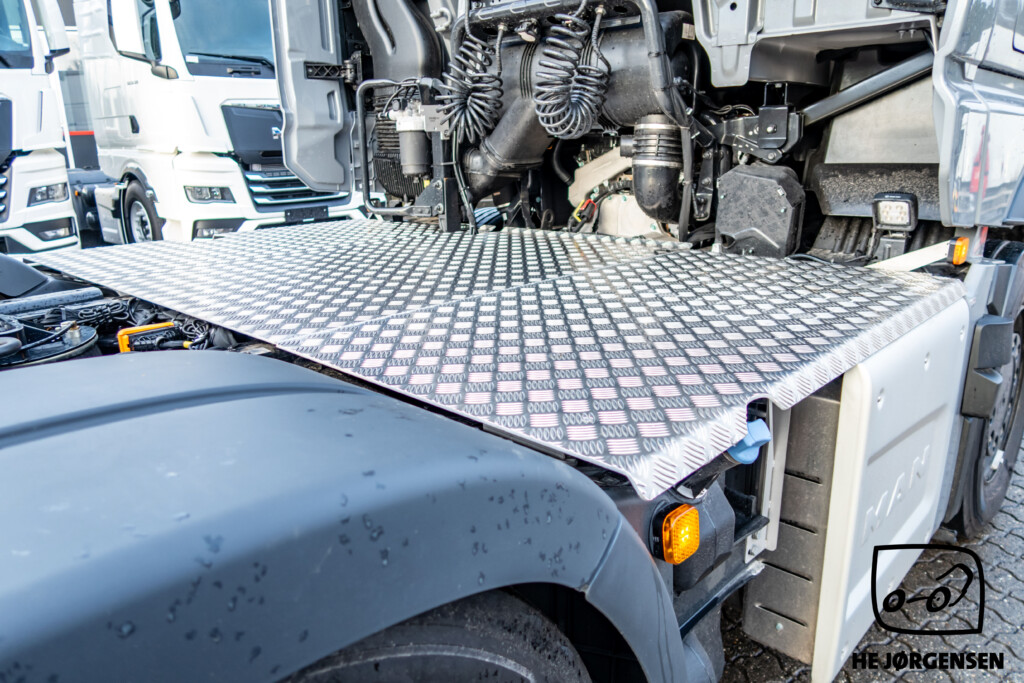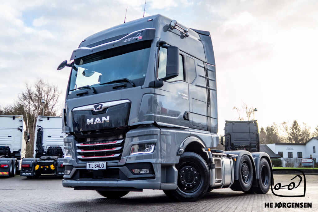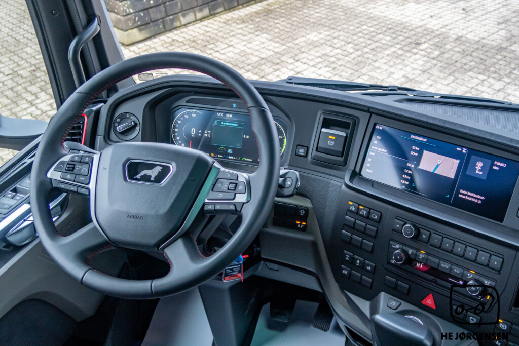 Så har vi igen fået en MAN TGX Individual Lion S på lager, denne gang en pusher-trækker! Individual Lion S'en er bl.a. udstyret med elektronisk glassoltag, el-indstilbare sidespejle med varme, sædevarme, digital instrumentering, TipMatic automatgearkasse med ny gearvælger ved rattet, adaptiv fartpilot, lane-assist, cyklist censorer i både venstre og højre side, elektronisk intelligent håndbremse og SmartSelect - som er den nye styreplatform, som styrer MAN’s radio, navigation mv. samt distraherer dig mindre fra trafikken end en sædvanlig touchskærm. Lion S interiøret består bl.a. af premiumsæder med læder/alcantara-indtræk og diamantsygninger samt nakkestøtter med løveapplikation, røde sikkerhedsseler som skaber et sportsligt look, luftåbninger med røde rammer, indersiderne af døre og armlæn er beklædt med materiale i læderlook, multifunktionslæderrat med røde syninger som understreger det sportslige look, kromlister i dørene og meget mere! I kabinen byder den største MAN-førerkabine, GX på maksimal komfort, både under arbejdet og i pauserne. MAN'ens ydre består bl.a. af spejlkapper med kulfiberlook og løve-design, mørkegrå designsolskærm med Individual Lion S-signatur, skinnende sorte hjulkapsler, kofanger i kulfiberlook med røde detaljer, sortlakeret kølergrill samt den iøjnefaldende kølergrill med forkromede lameller og røde designstriber. MAN'en er opbygget med fuld aludørk samt forskydelig drejeskammel. Trækkeren er fra MAN's nye generation og står klar til omgående levering. Kontakt vores salgsafdeling for yderligere information og interesse. Vi glæder os til at vise den frem! *Der tages forbehold for eventuelle taste fejl*