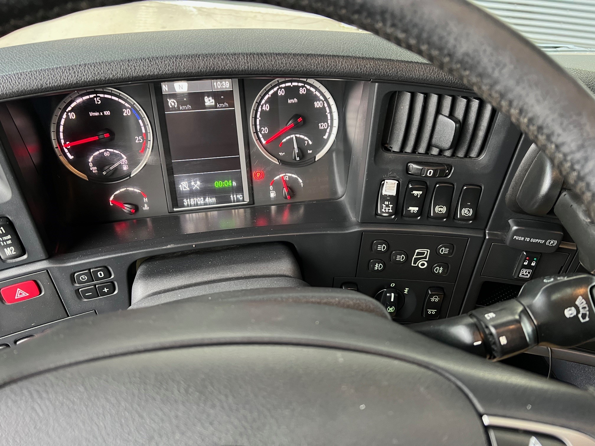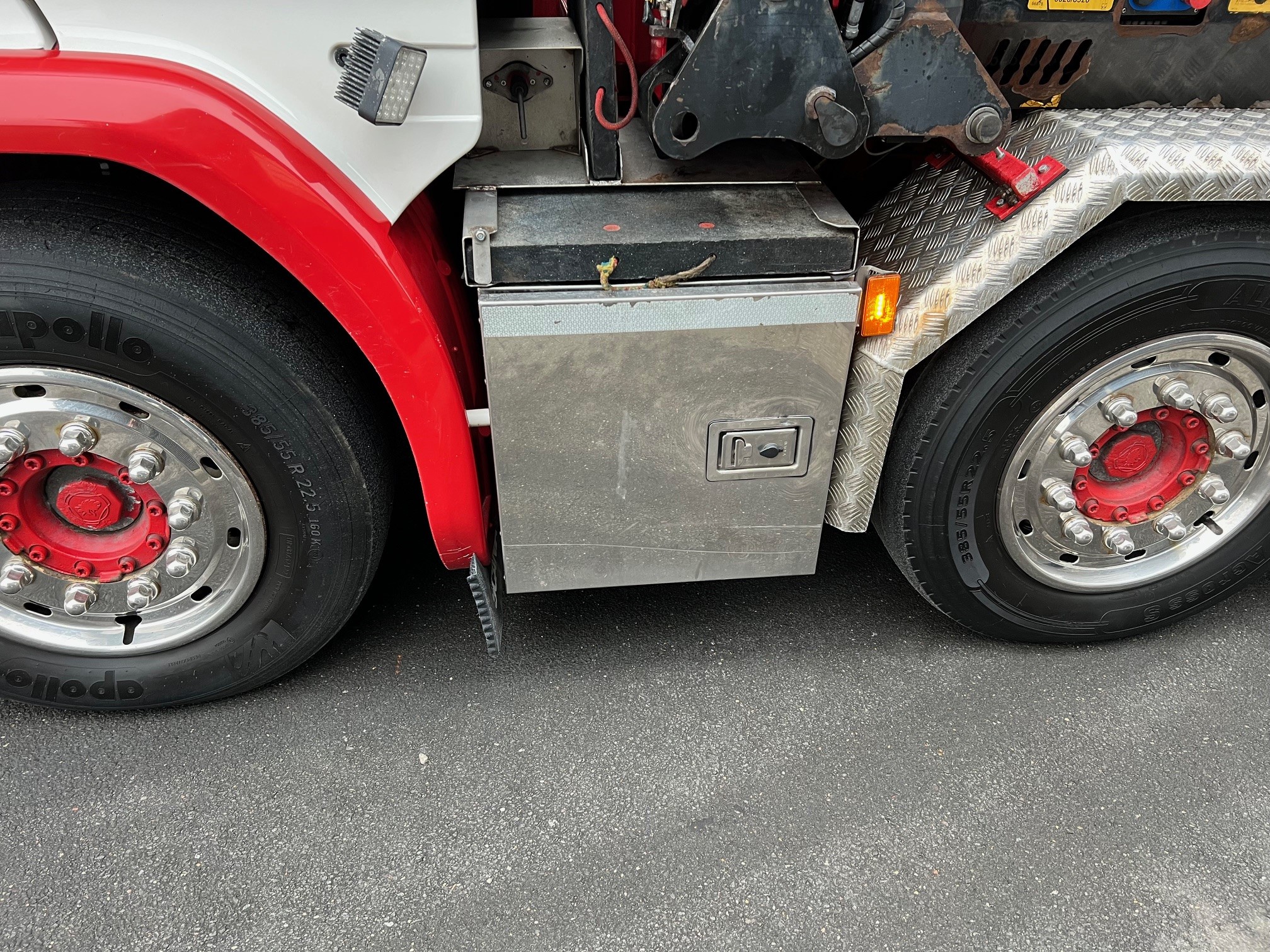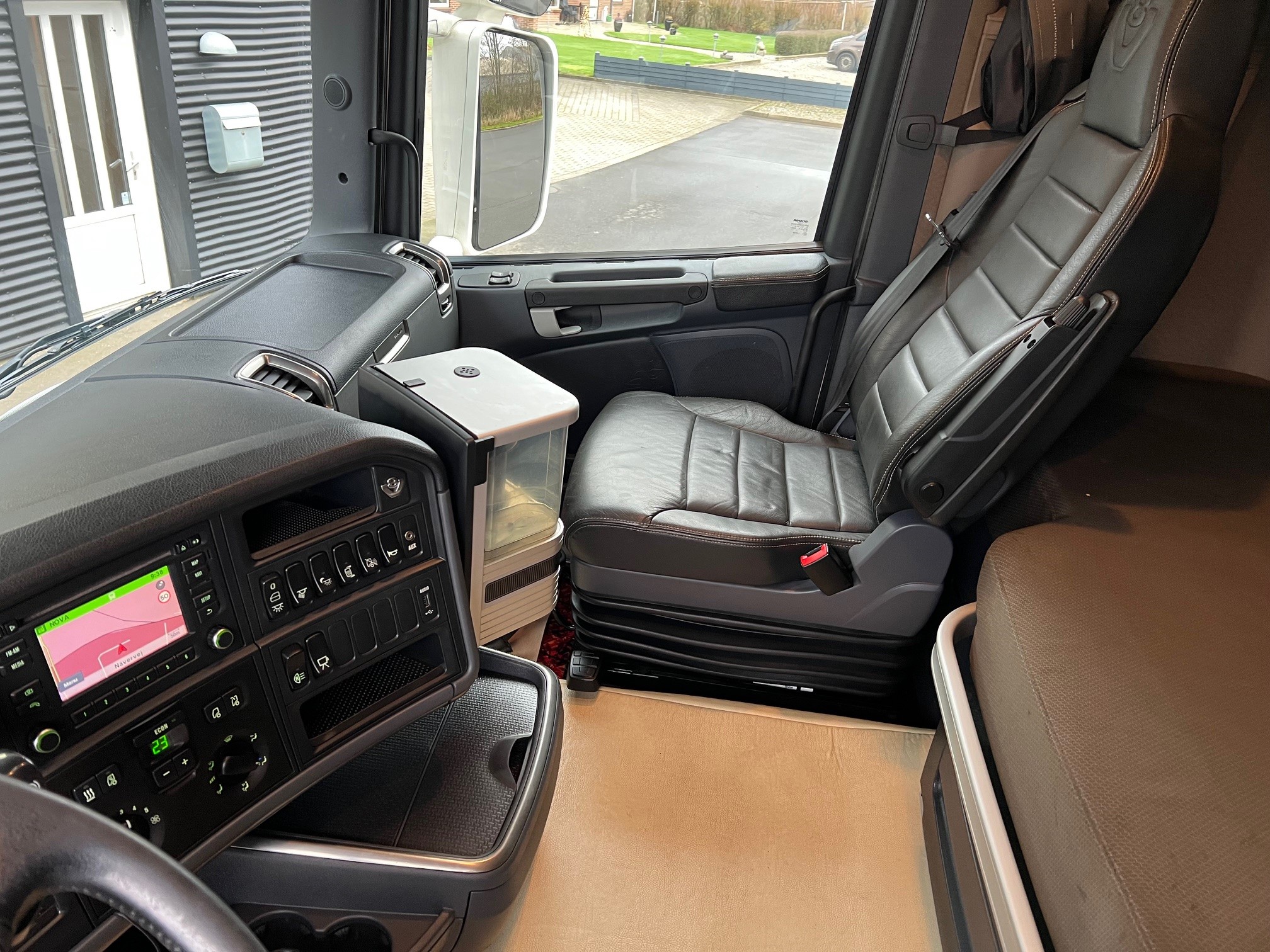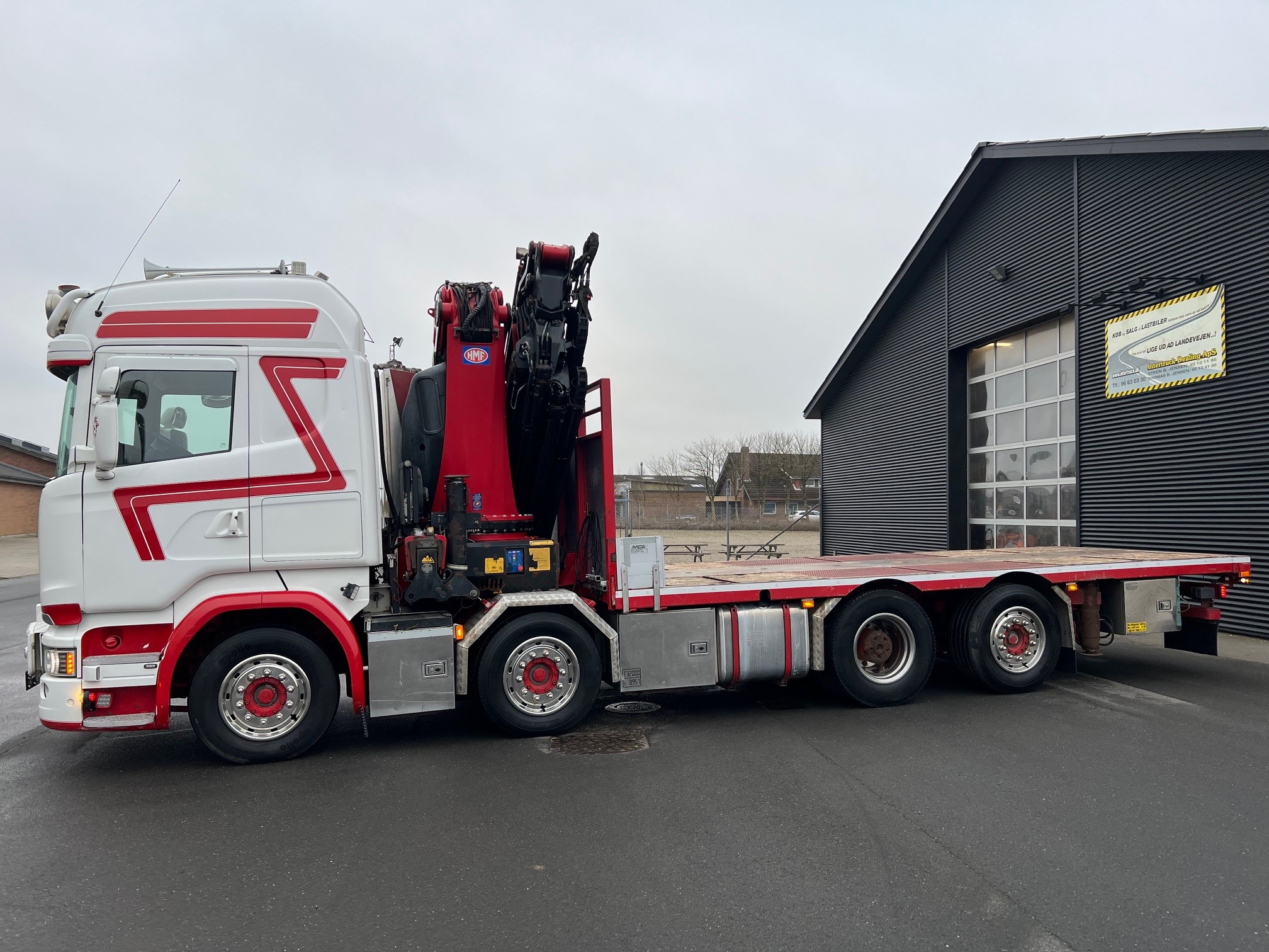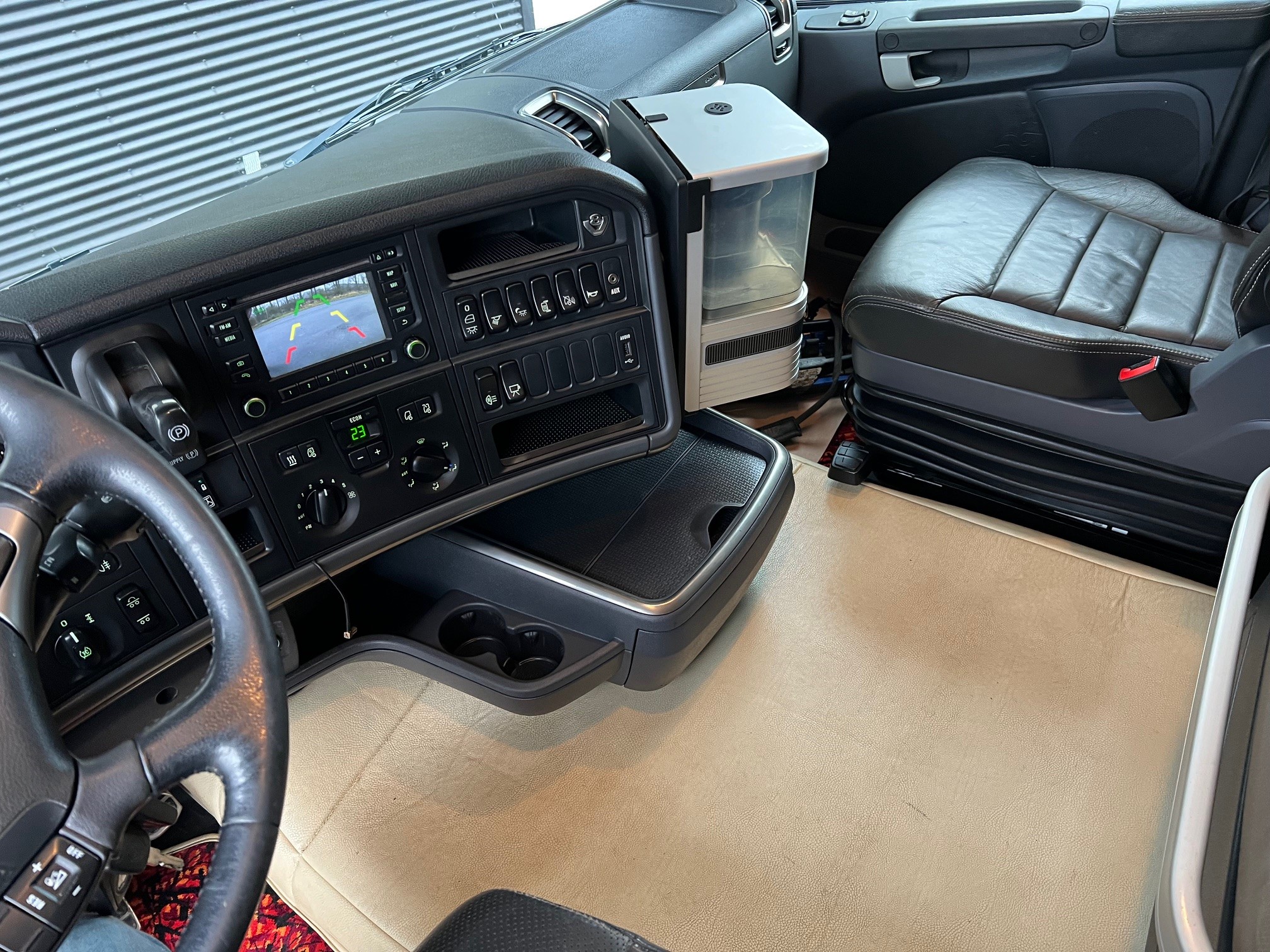 6,35 m open lad med kæpstokkehuller og med 1,2 m hydraulisk udtræk, VBG kærretræk, Skabe, lygtebøjle med projektører, lyskasse, kompressorhorn, rustfri stål pyntekapsler, fuld luftaffjedret, Sovekabine, Aut. Gear – GRSO905R med retarder, Fuld luftaffjedret, Oliefyr, Klima, Kamera, Navigation, lædersæder m.v.