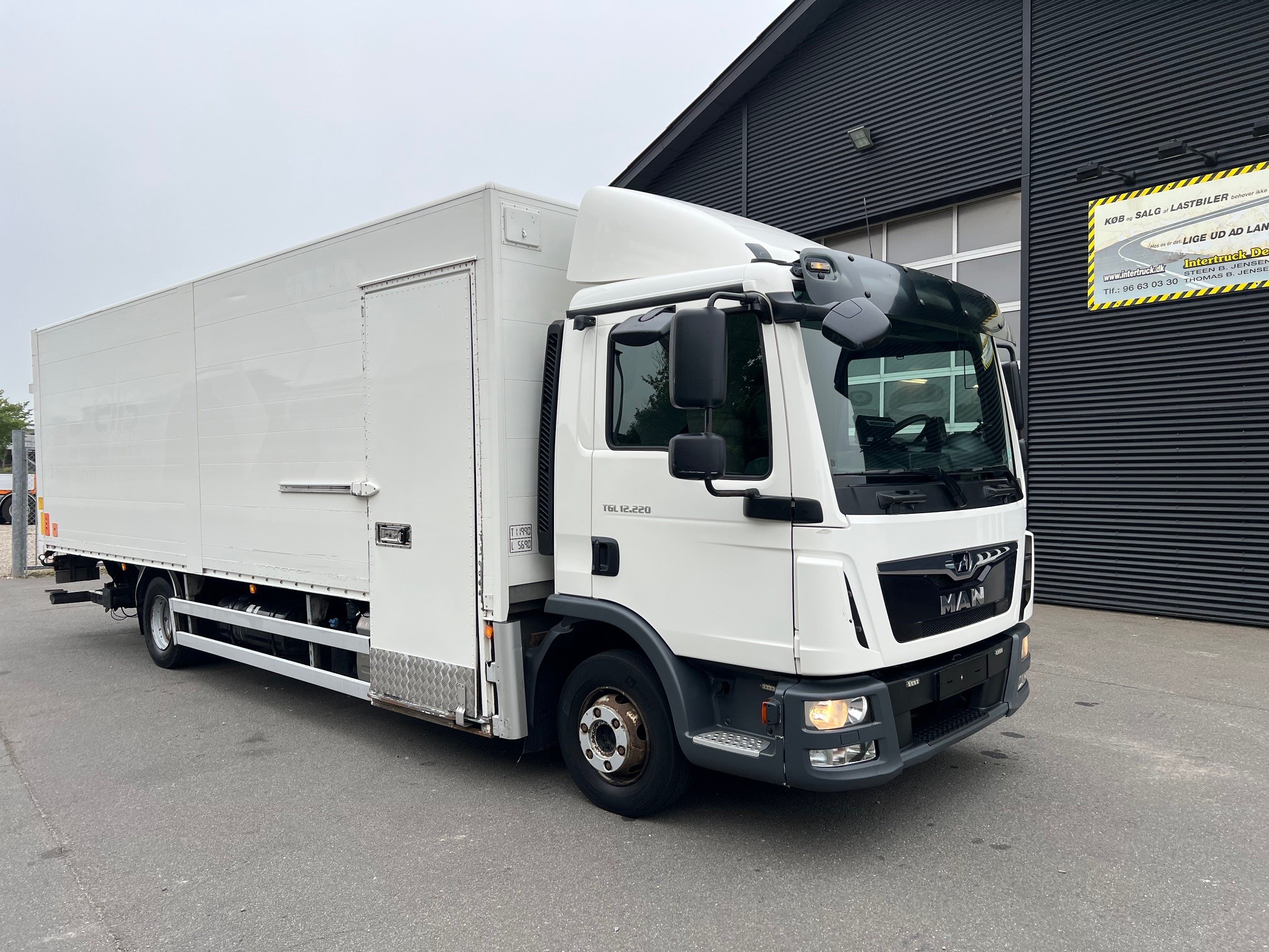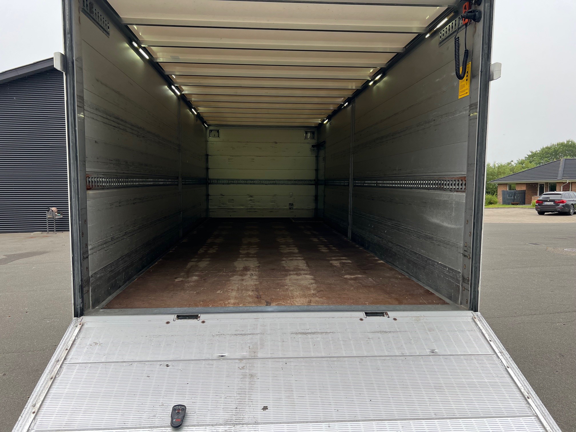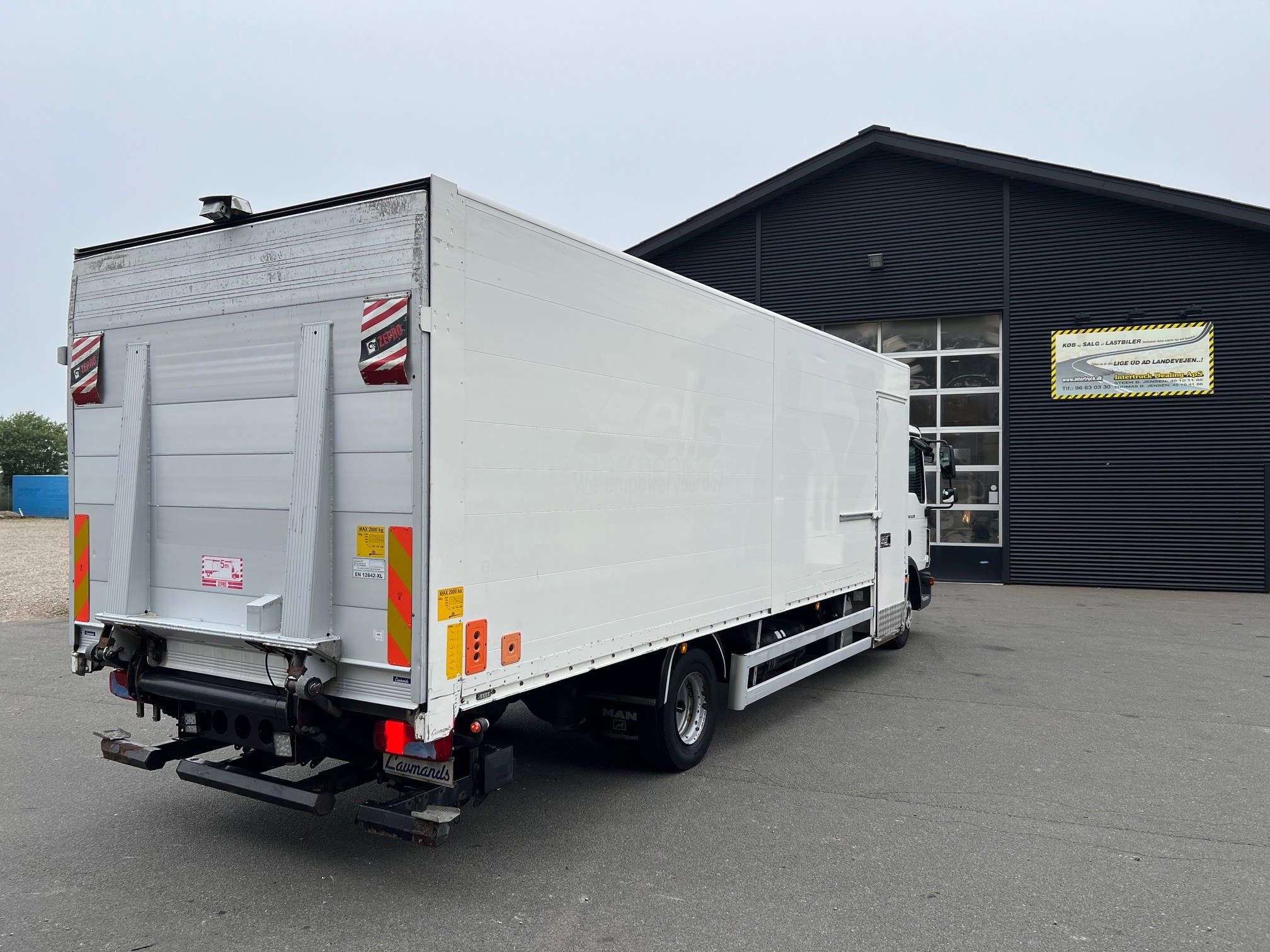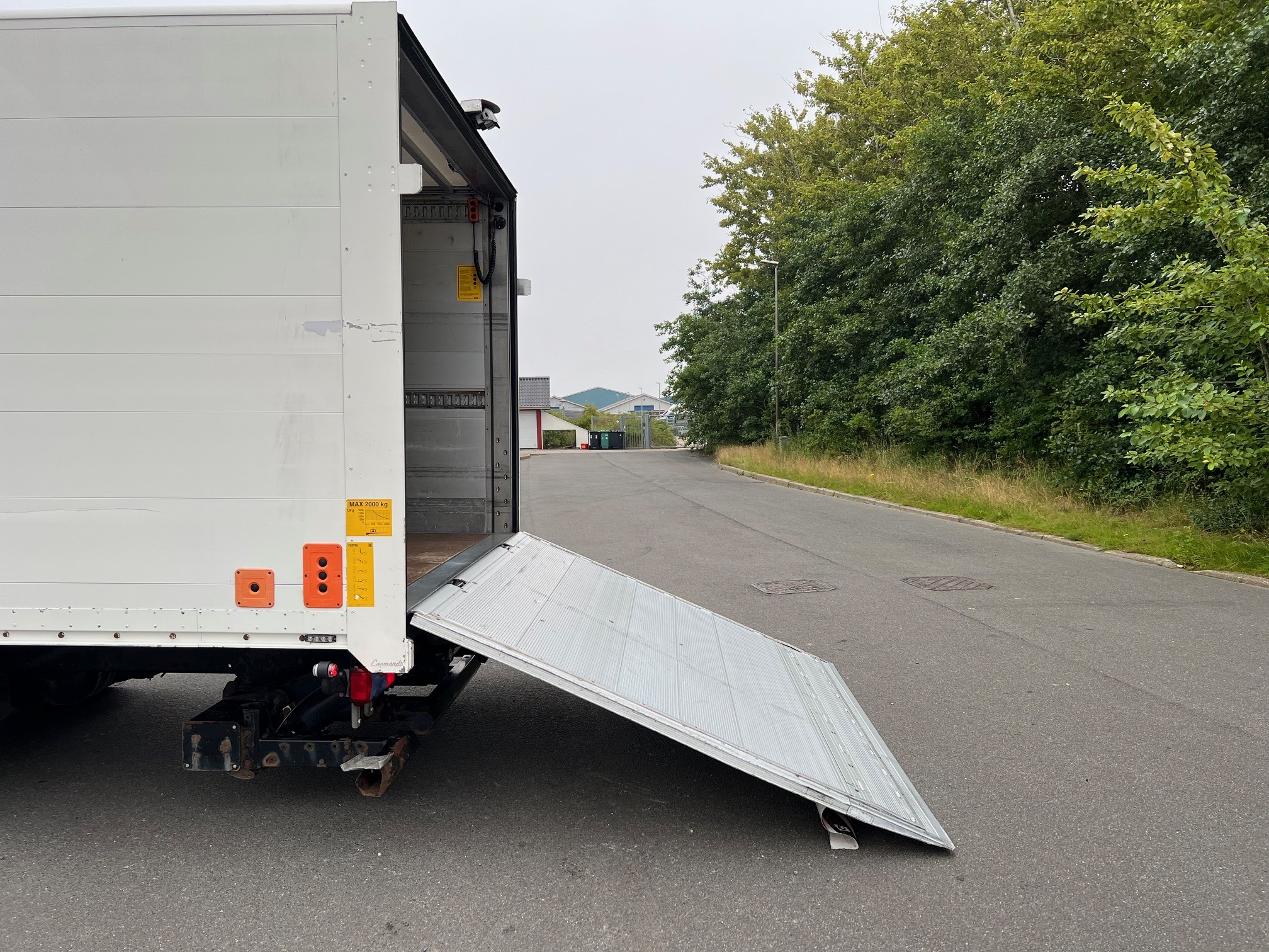 Med 7,3 m lukket alukasse med 2.000 kg. lift med fjernbetjening, 2 m. plade, der kan vippe helt ned mod jorden med luften sænket, Miljøzonegodkendt Euro 6 - her kan du køre uden vejafgift - med spoiler, aut. gear, bak- og sidekamera, luftafjedret,