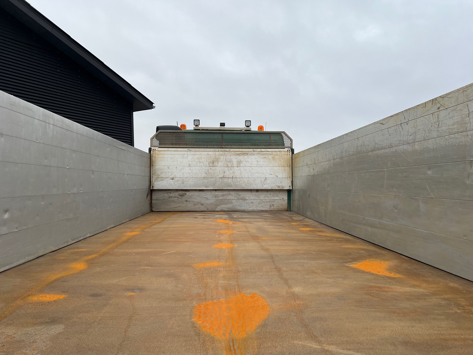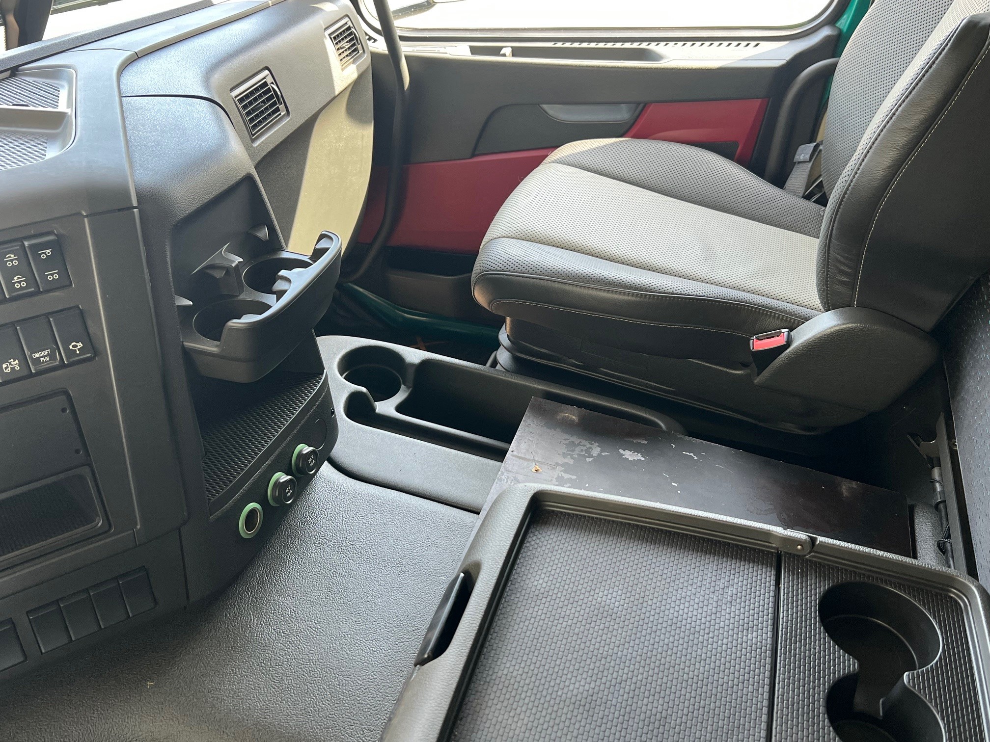 1-ejers vogn fra ny - kørt på servicekontrakt - 8X4 Tandemtræk med løftbogie, med 3-vejs HMF tippelad med fuld pendel i v. side, aut. bagsmæk, luftstyret VBG kærretræk med olie ført ud, skabe og skørter, fuld luftaffjedret, I-shift, VEB+, Work Remote, Klima, oliefyr, Loadindikator, luksus lædersæder, kamera m.v.