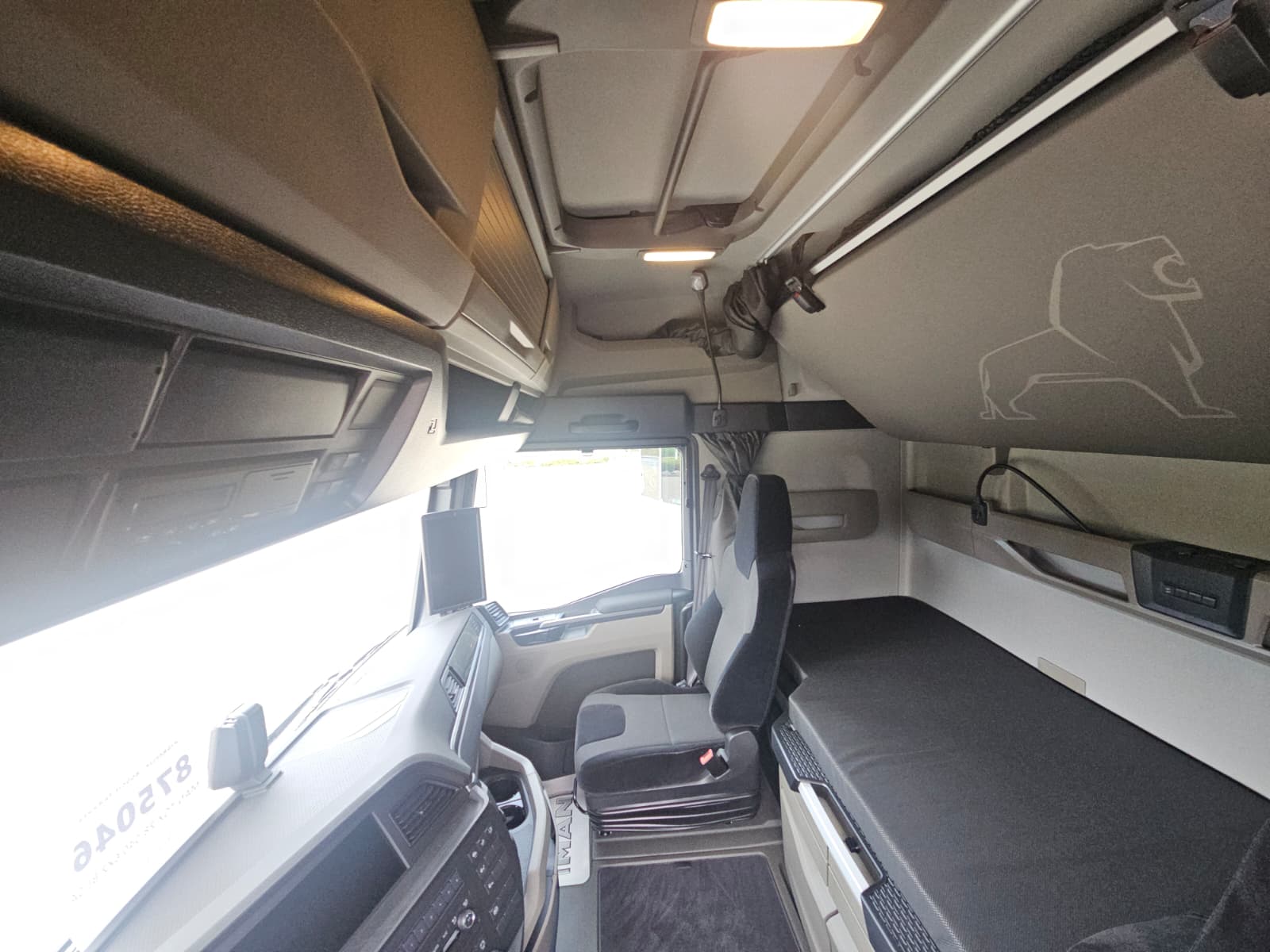Sikkerhedspakke Lys og Udsyn Plus, Sikkerhedspakke, elektronisk parkeringsbremse, Digital akseltrykvisning (ALM) til luftaffjedrede aksler / sættevogn, Centrallåsesystem, med fjernbetjening, Spejlpakke, MAN OptiView, digitalt spejlerstatningssystem, Multifunktionsrat læder, Elektronisk reguleret styresystem MAN ComfortSteering, 2 køjer, madrasser 110 mm/90 mm, med just. af hovedende, solgardin i forrude, elektrisk, Fartpilot Adaptive Cruise Control Stop and Go, Fartpilotfunktion MAN EfficientCruise med PredictiveDrive afstandsreguleret, MAN Mediasystem Navigation Professional 12,3 tommer, MAN Soundsystem Advanced med subwoofer.-
