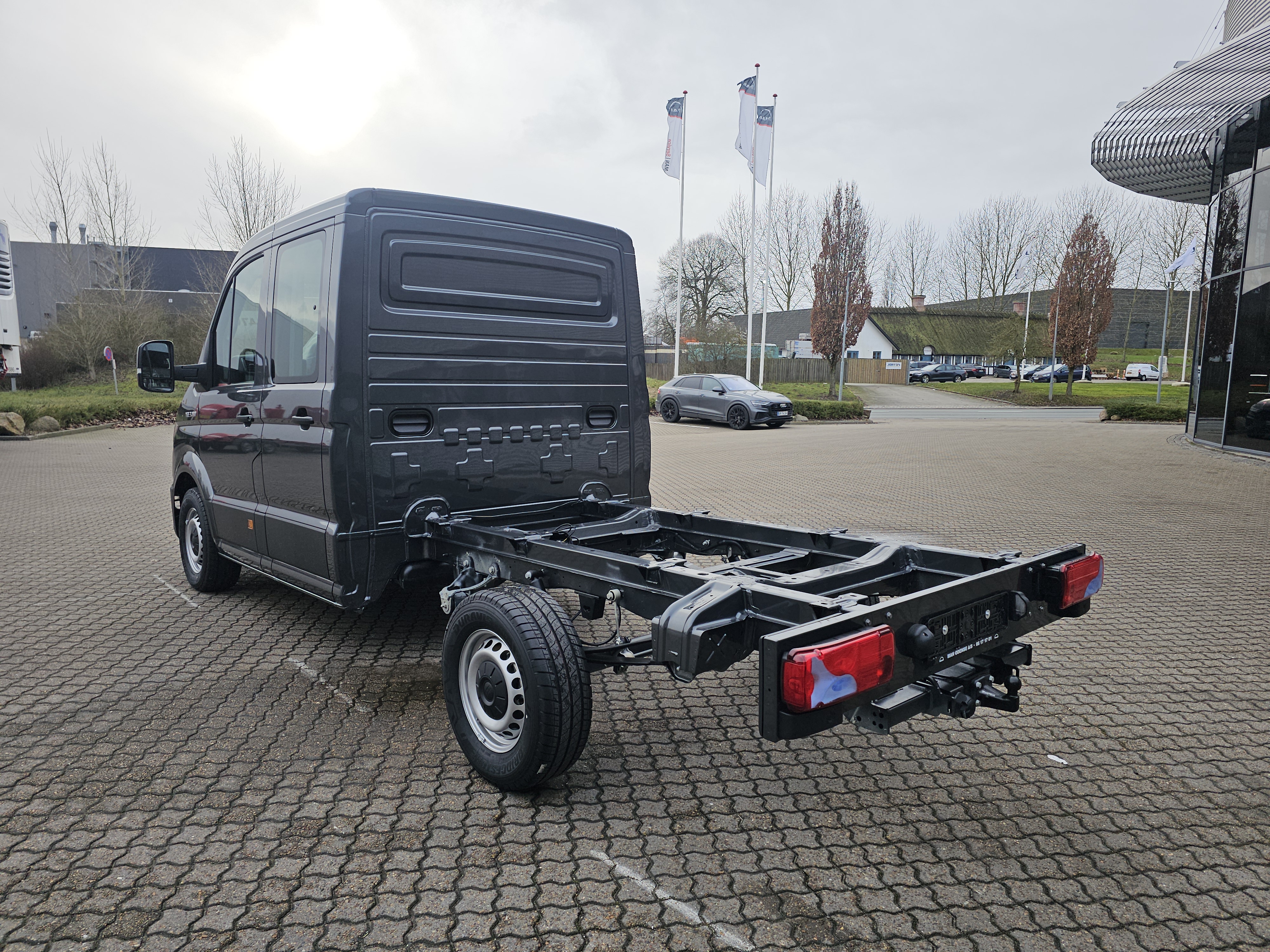 4 højttalere, 2 diskant, 2 basenheder, Aflåseligt handskerum med lys, Eksternt USB type C, kun stik, Klimaanlæg Climatronic i førerkabine, fuldautomatisk, 2 zoner,, Kørelys med aktivering af nærlys (automatisk), "Leaving home" funktion og manuel "Coming home" funktion, LED forlygter med LED kørelys, MAN Media Van Business , MAN Smart Link (både ledning og wireless), Mobiltelefon interface, Online-tjeneste, med OCU, med Head Unit-kodning, uden WFS-forbindelse, Opbevaringspakke 2: Tagrum med to DIN porte og læselampe, Pan-Europæisk-e Call, Regionskode ECE til radio, Stemmestyring (kun engelsk), Uden navigationssystem, Vinduesvisker intervalrelæ med lys- og regnsensor