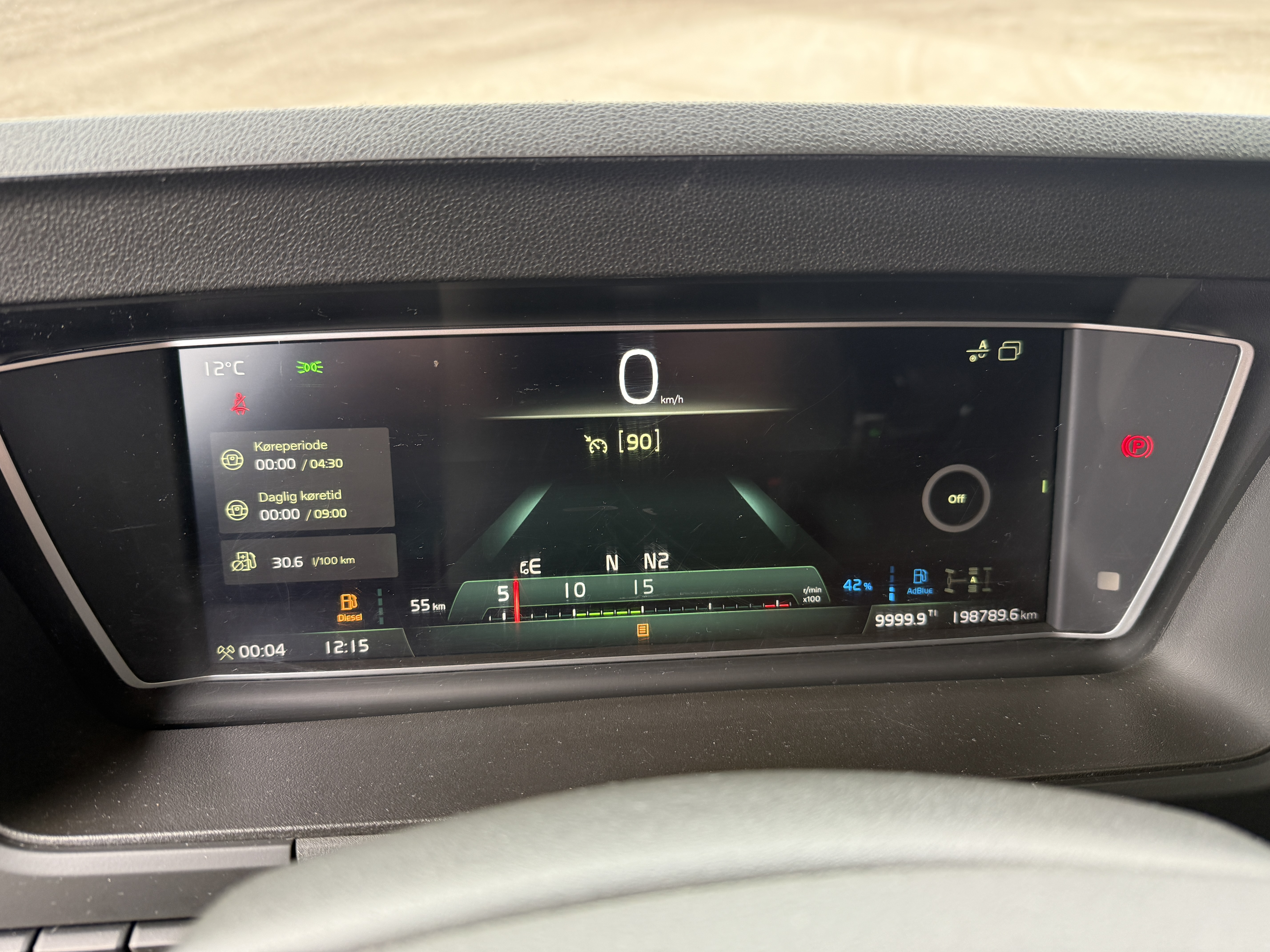 Kabinen er udstyret med fartpilot, sporassistent, navigation, aircondition og automatisk klimaanlæg. Lædersæder.