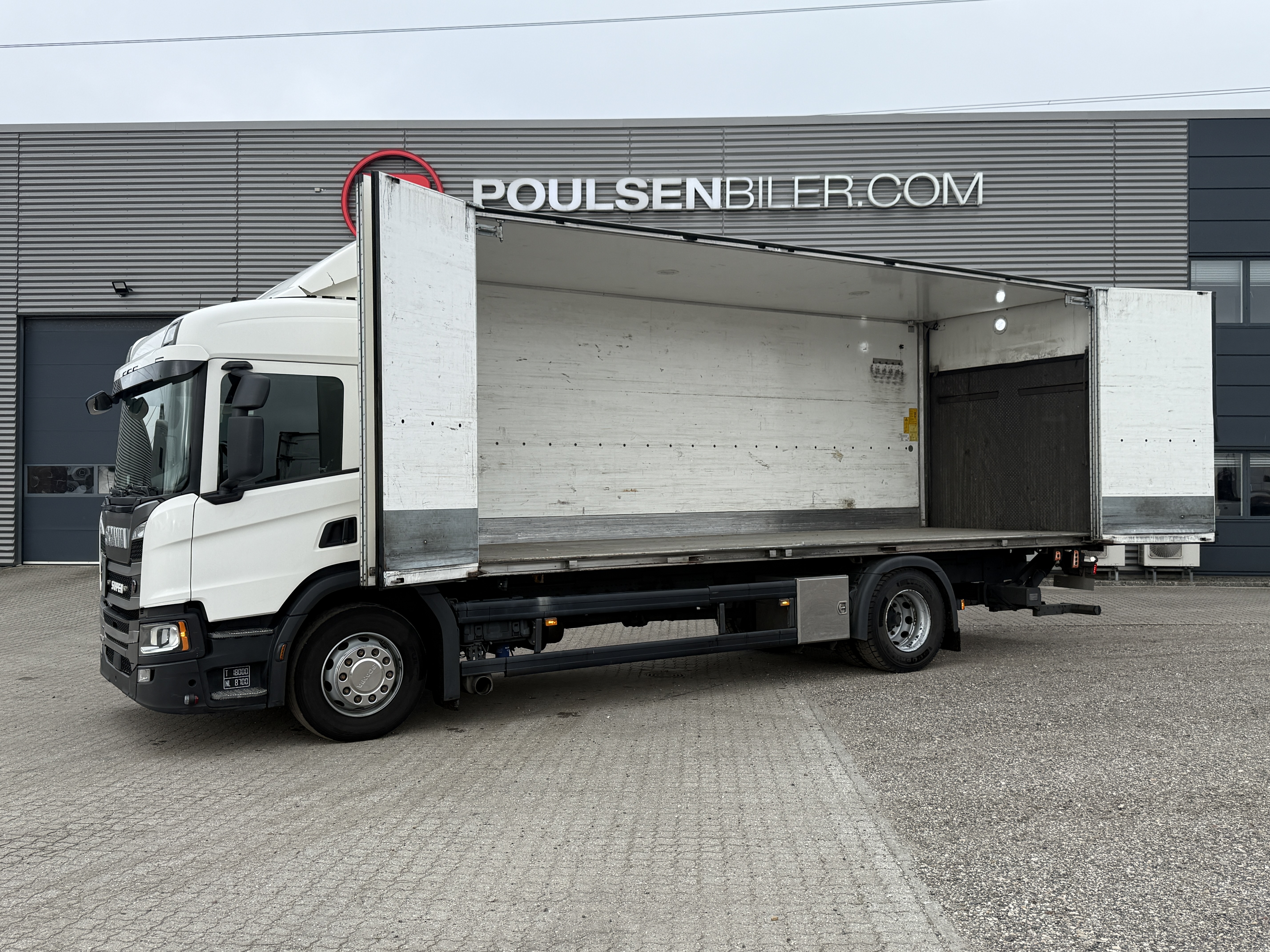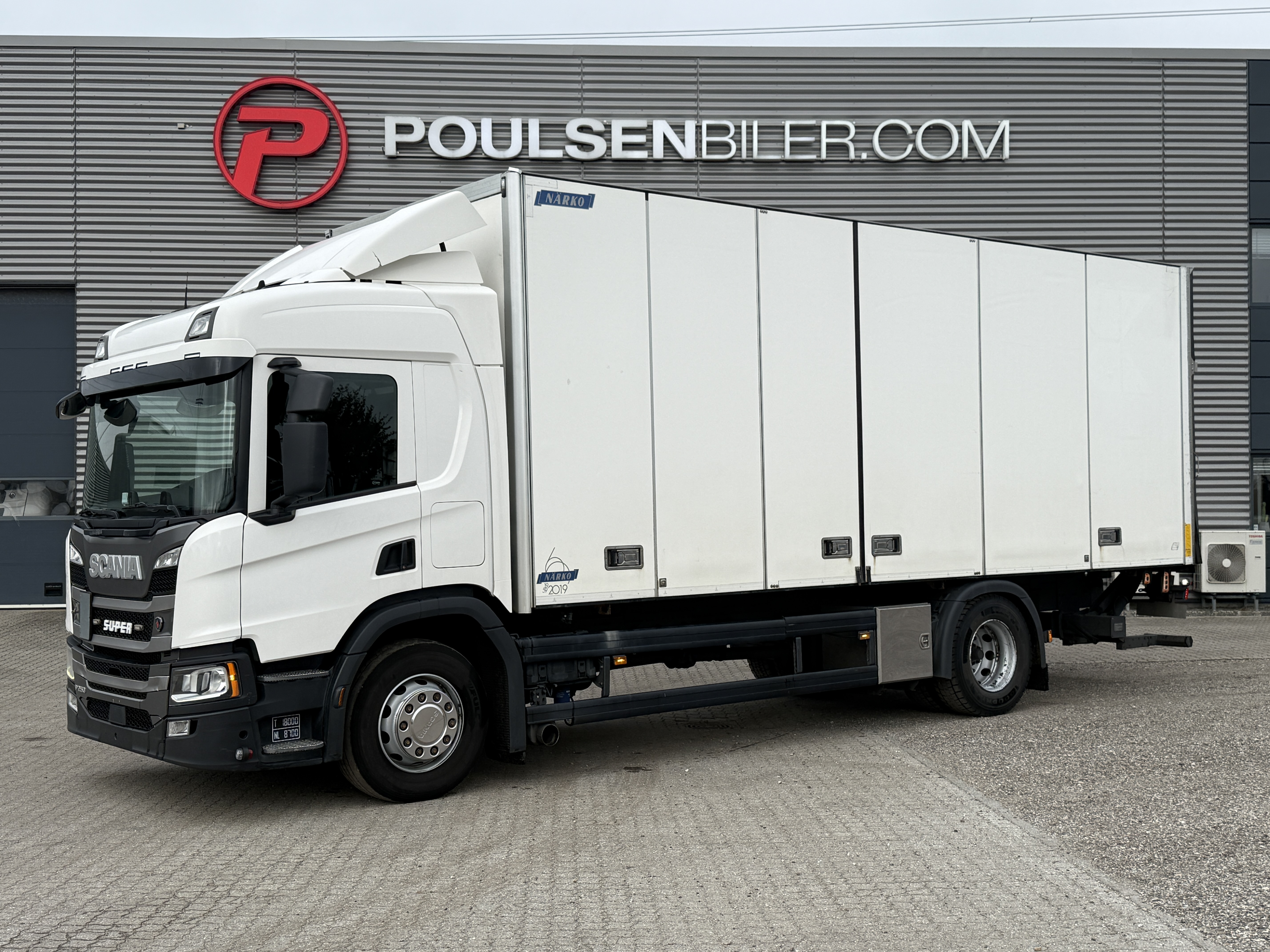 Scania P250 4x2 Forvogn med 18-pallers Närko foldedørsopbygning