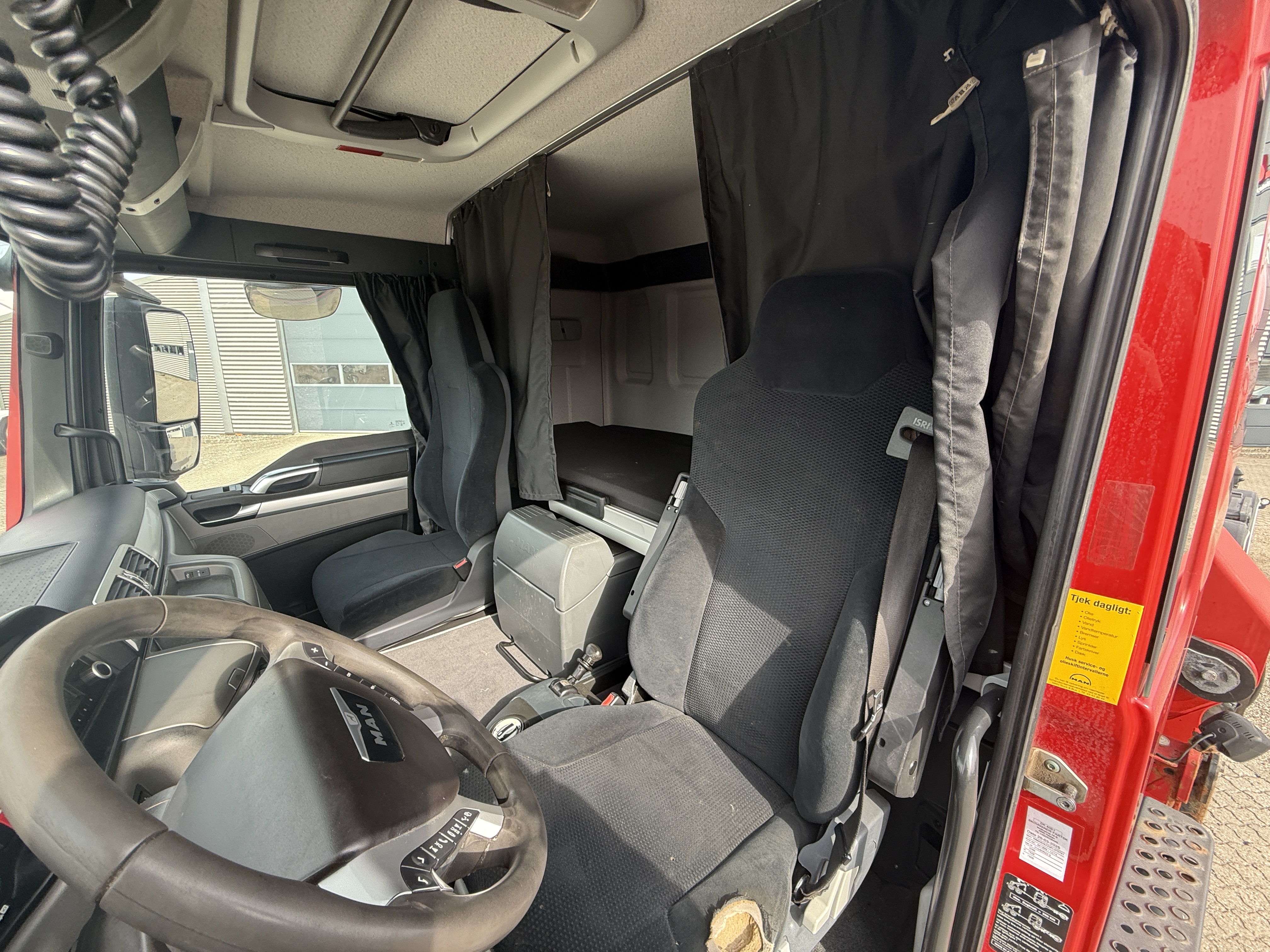 Førerhuset er udstyret med navigation, bakkamera, arbejdslys, slingerlamper, rotorlys, fartpilot, sædevarme, automatisk klimaanlæg, aircondition, radio og walkie.