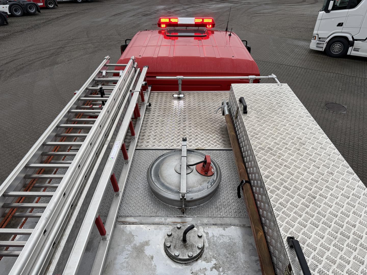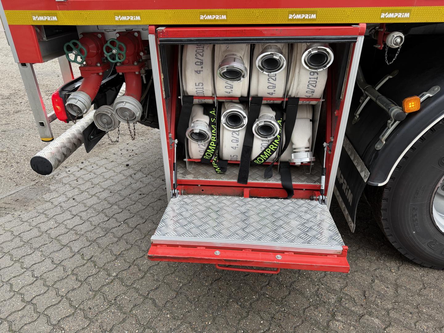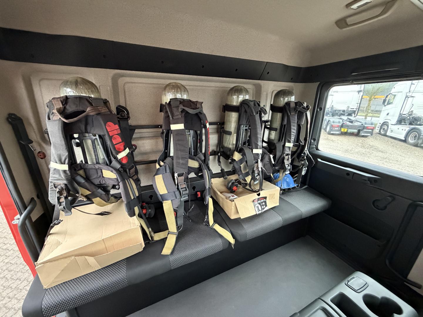 Brandbilen leveres fuldt udstyret med alt nødvendigt materiel, herunder slanger, pumper, generator, værktøj, iltflasker m.m. Den står i samme stand, som da den kørte ud fra fabrikken – helt ubrugt siden første indregistrering i 2020.