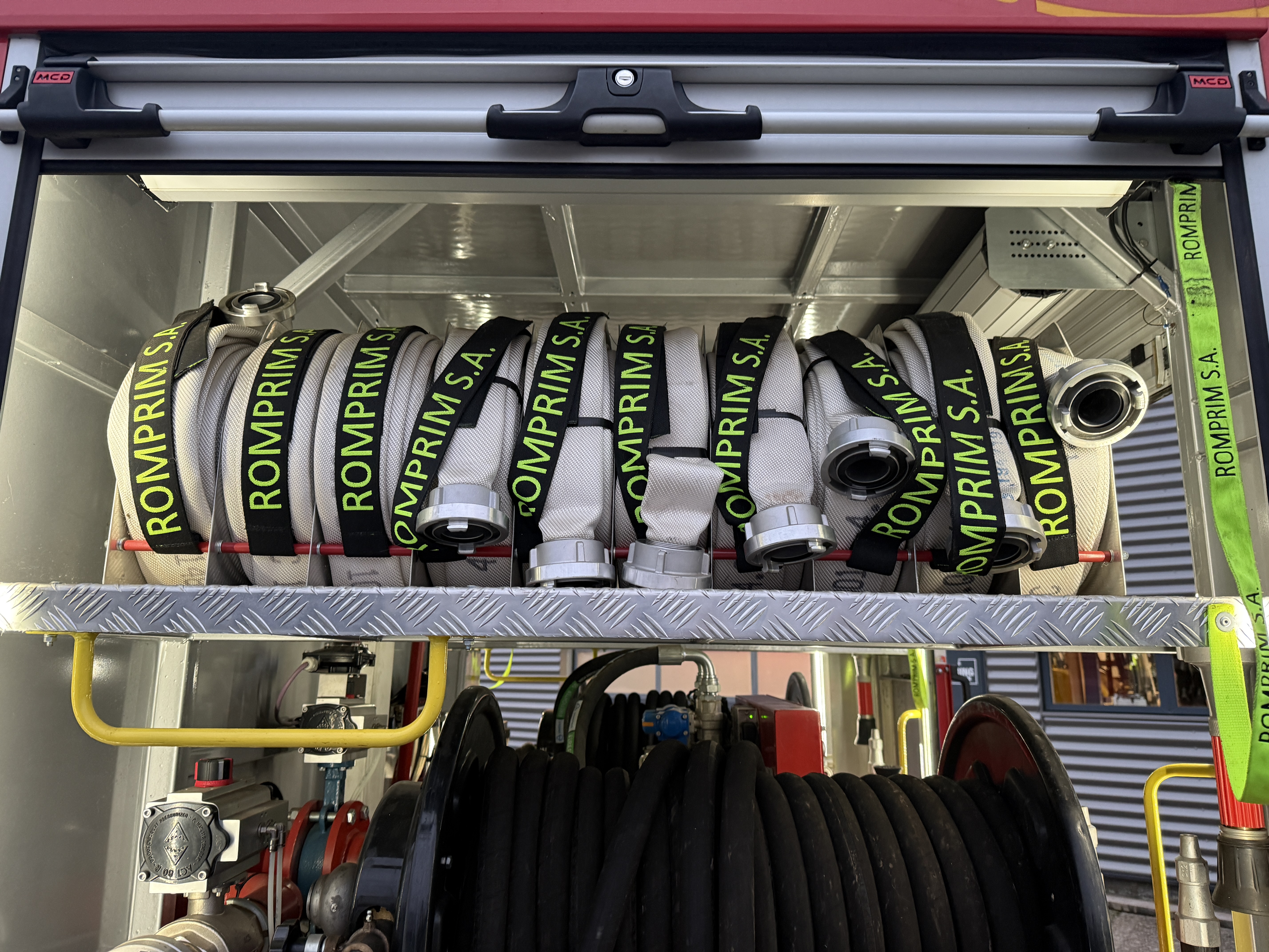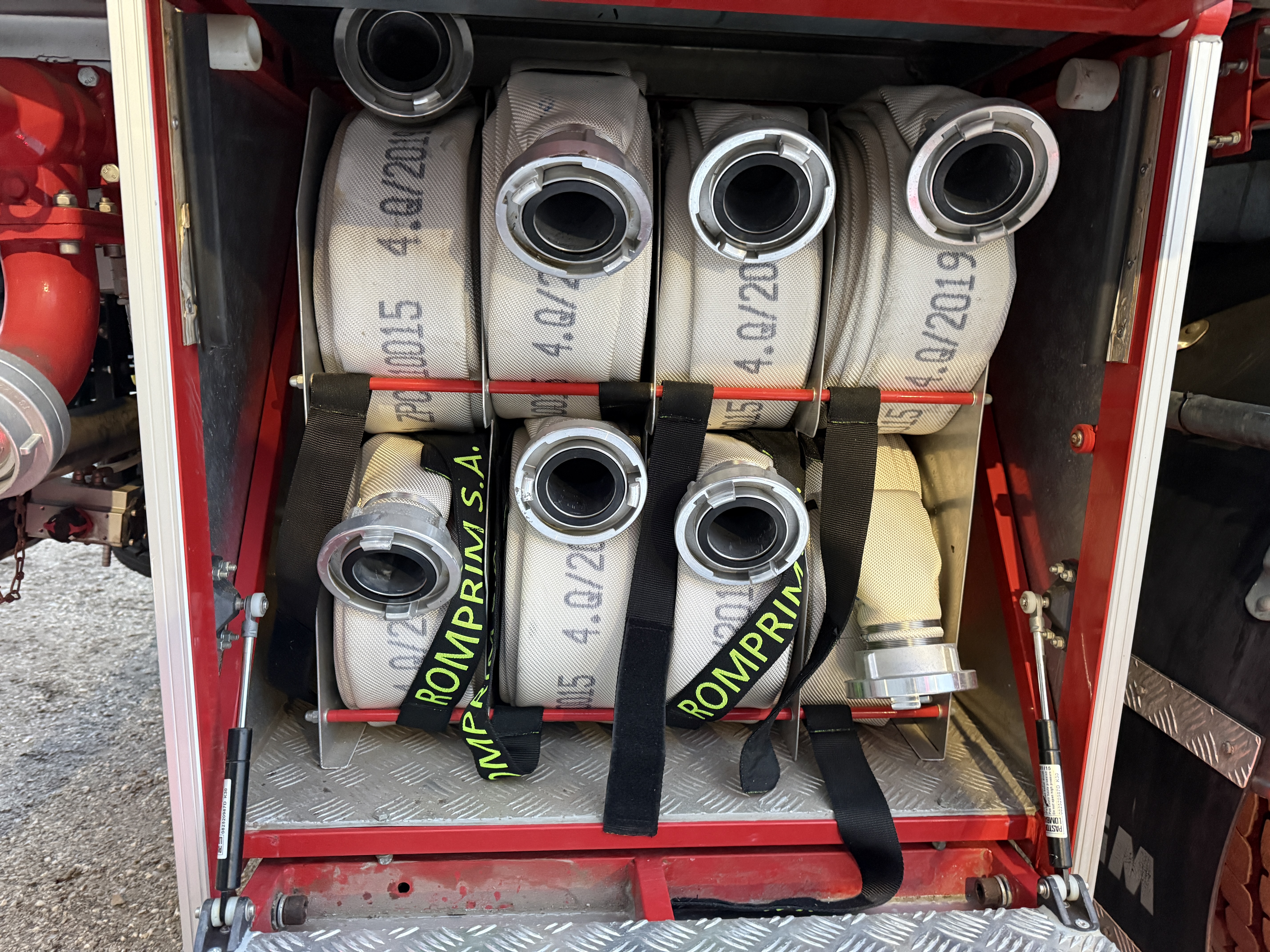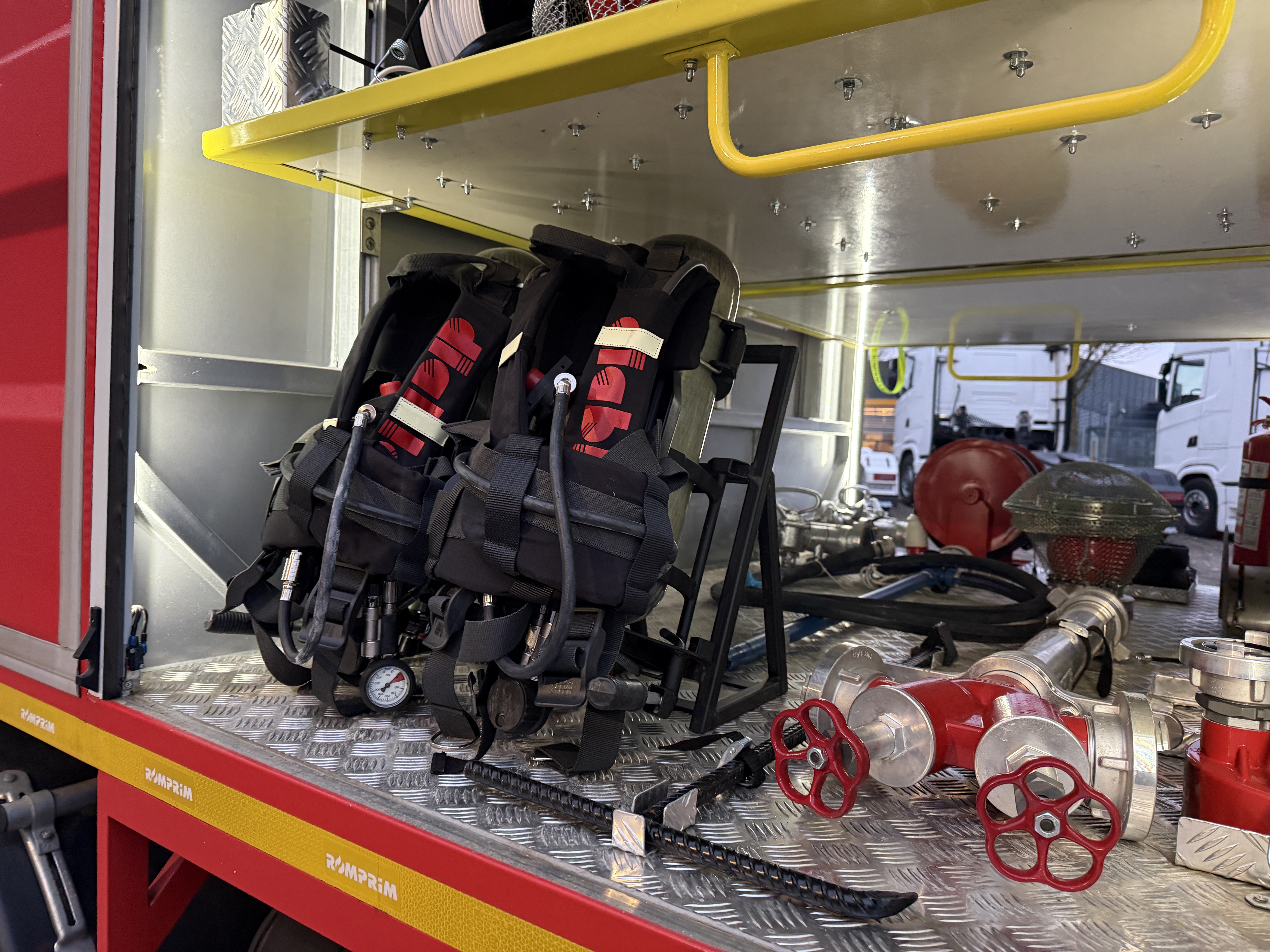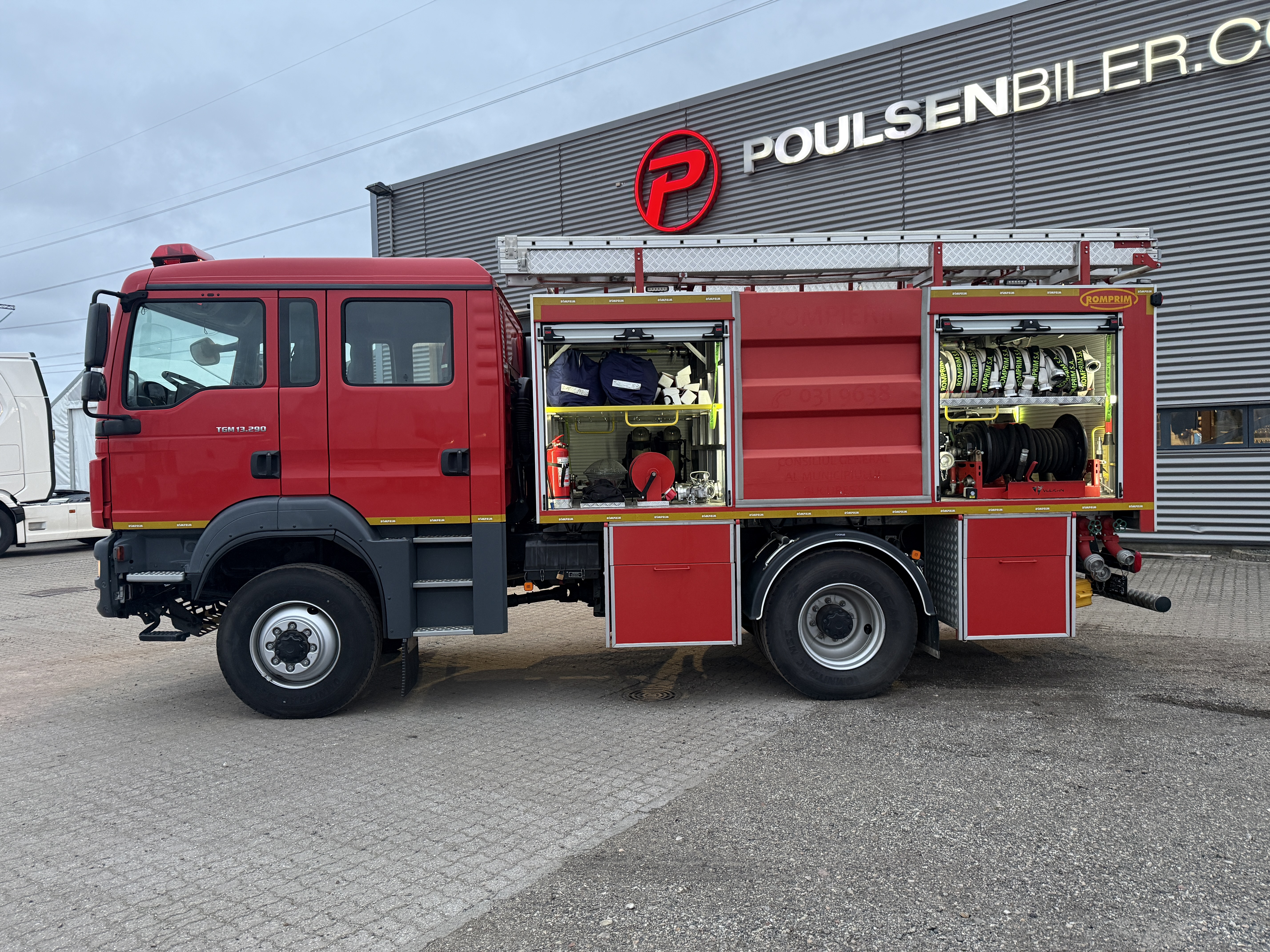 Brandbilen leveres fuldt udstyret med alt nødvendigt materiel, herunder slanger, pumper, generator, værktøj, iltflasker m.m. Den står i samme stand, som da den kørte ud fra fabrikken – helt ubrugt siden første indregistrering i 2020.
