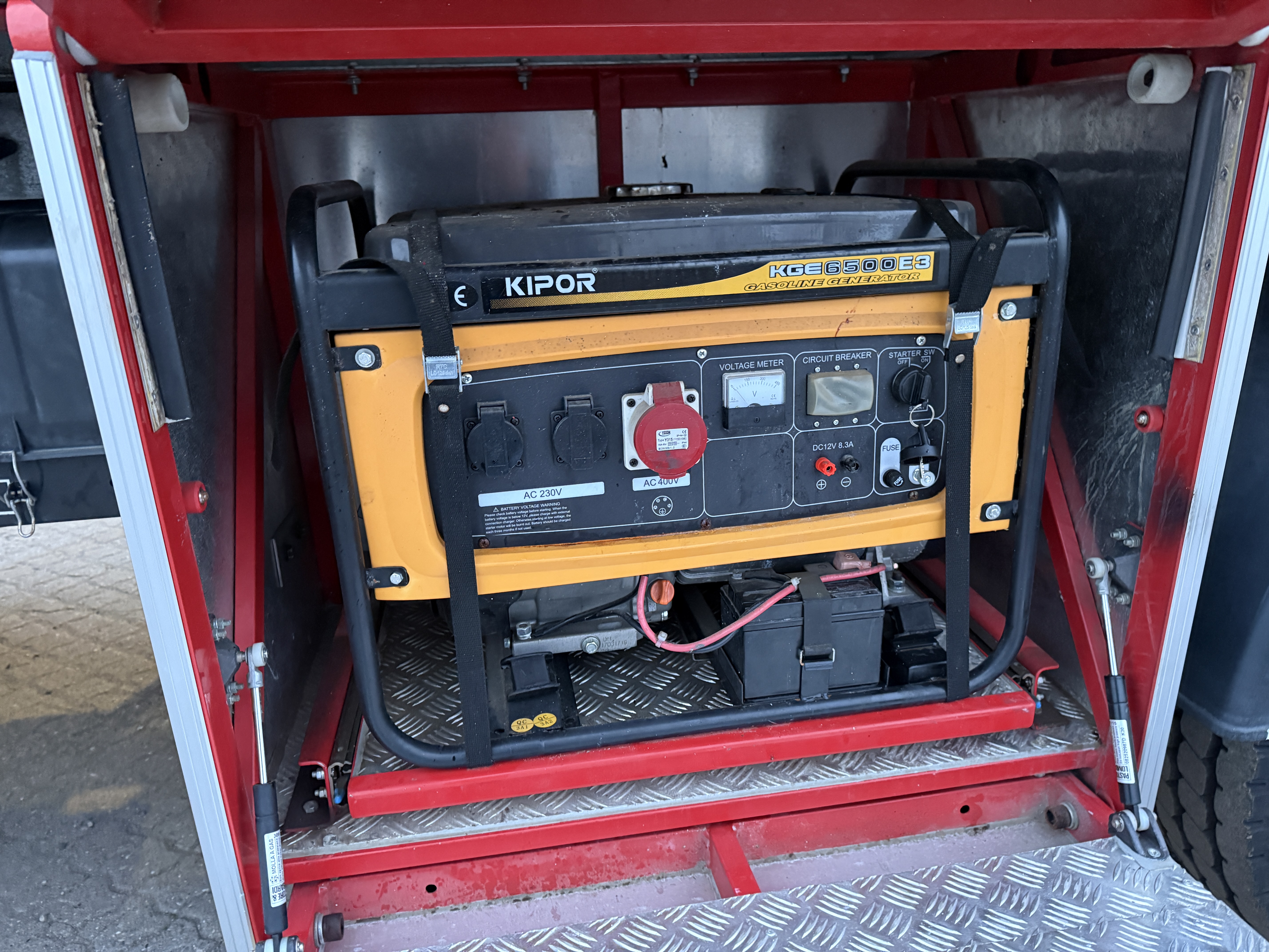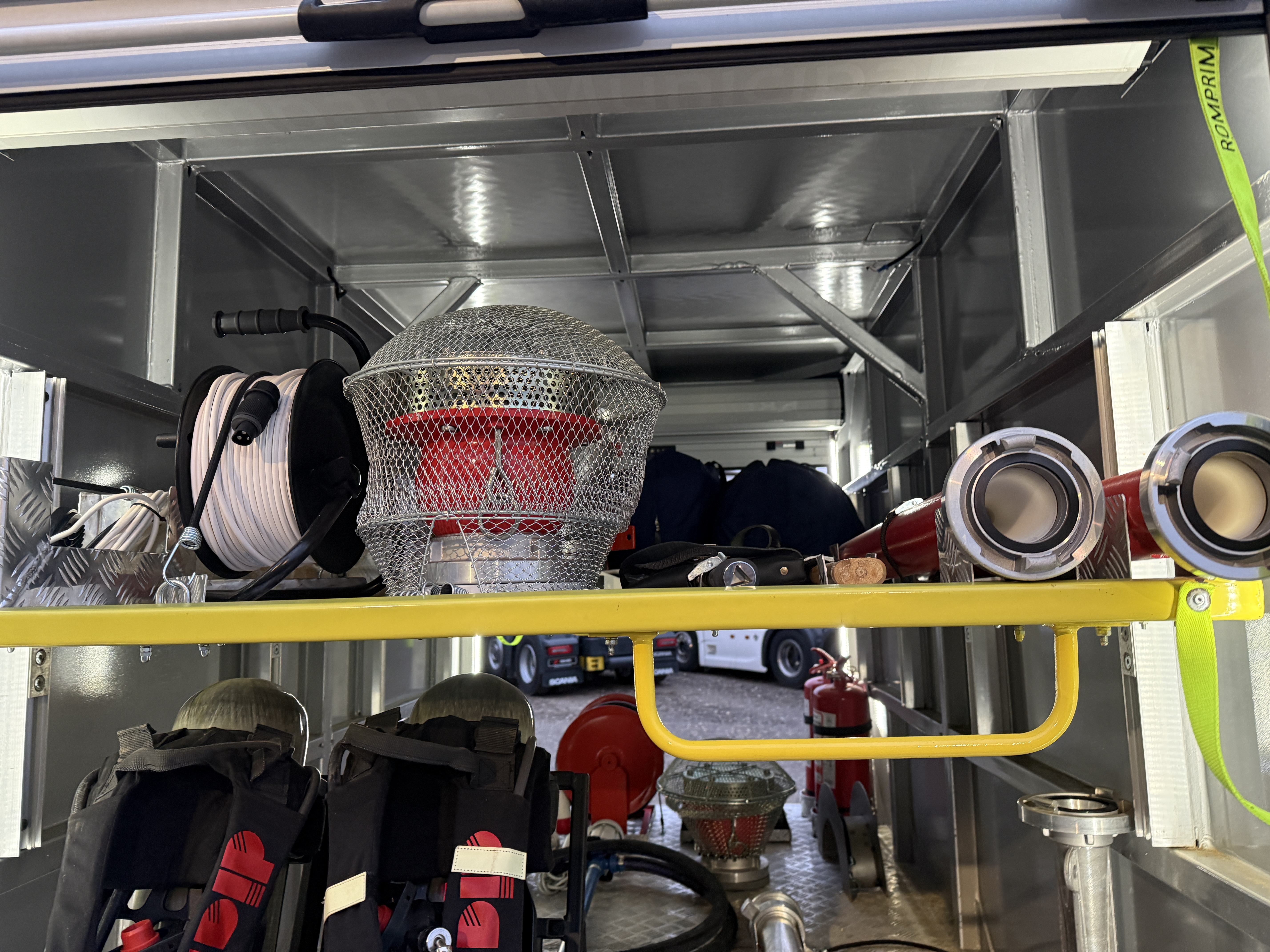 Bilen er fuldt udstyret med slanger, pumper, generator, værktøj, iltflasker m.m.