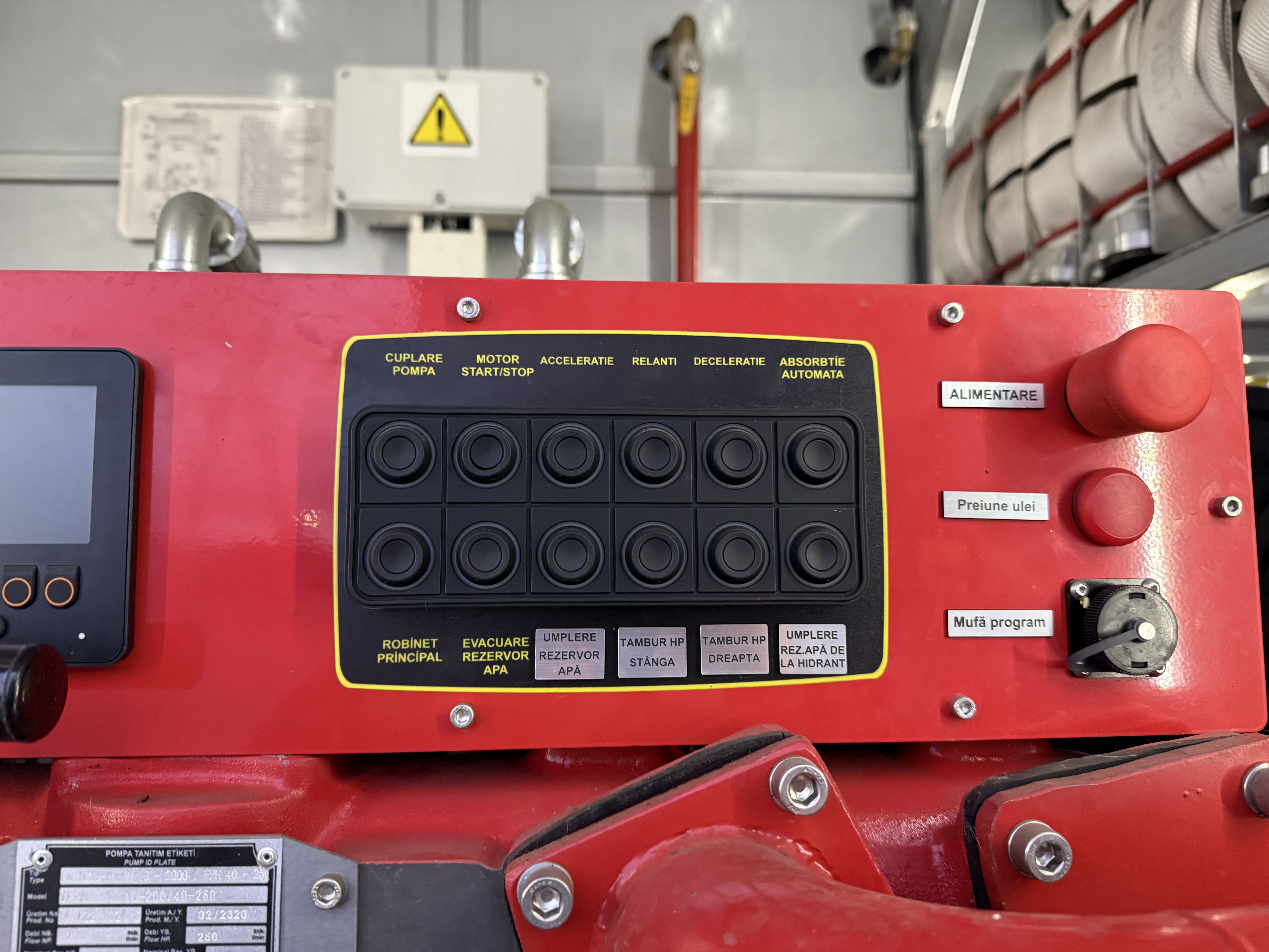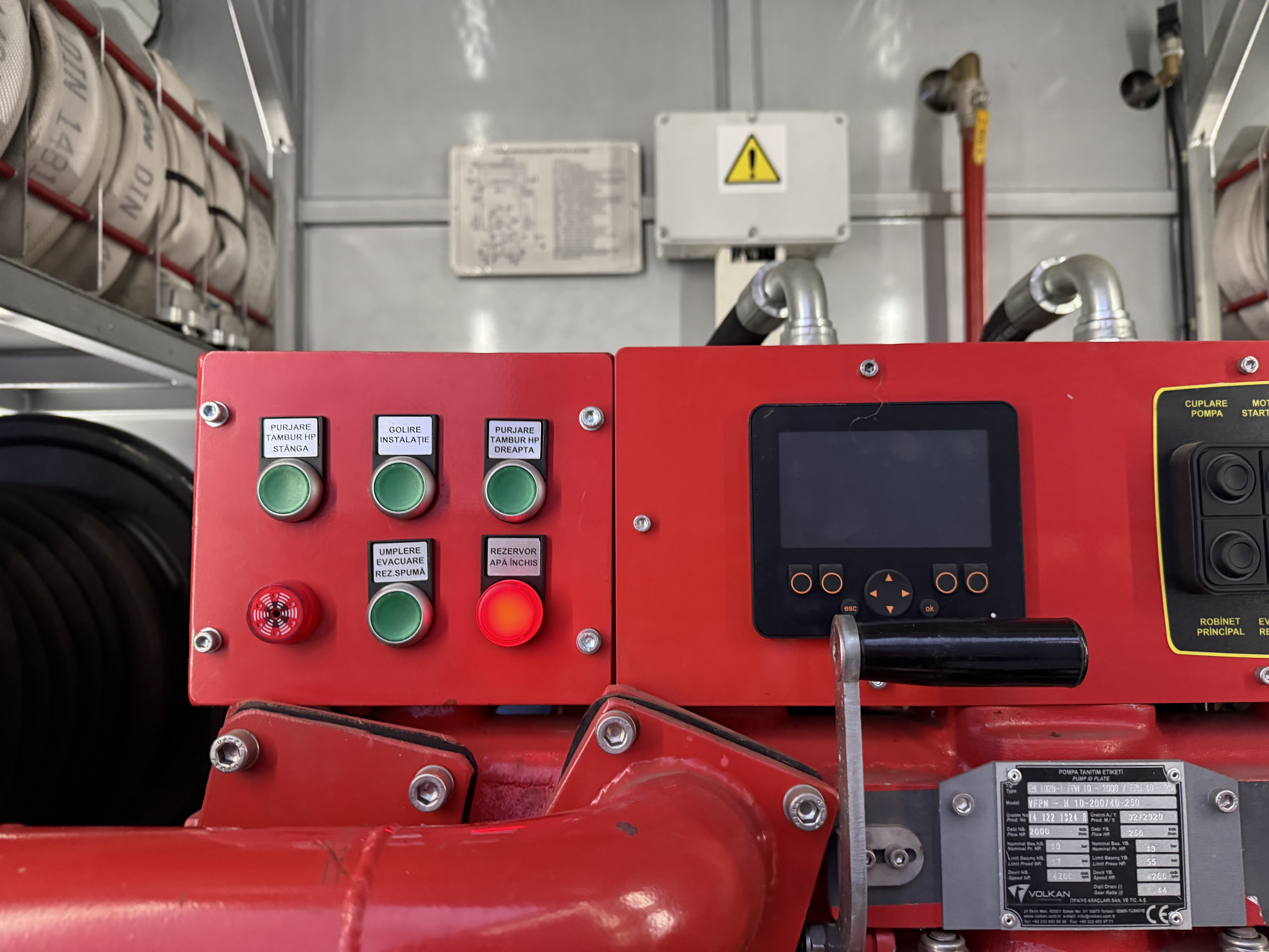 Bilen er udstyret med permanent firehjulstræk med differentialespær og har både en 3.500 liters vandtank og en 350 liters skumtank. Kabinen rummer seks siddepladser, og fartpilot.