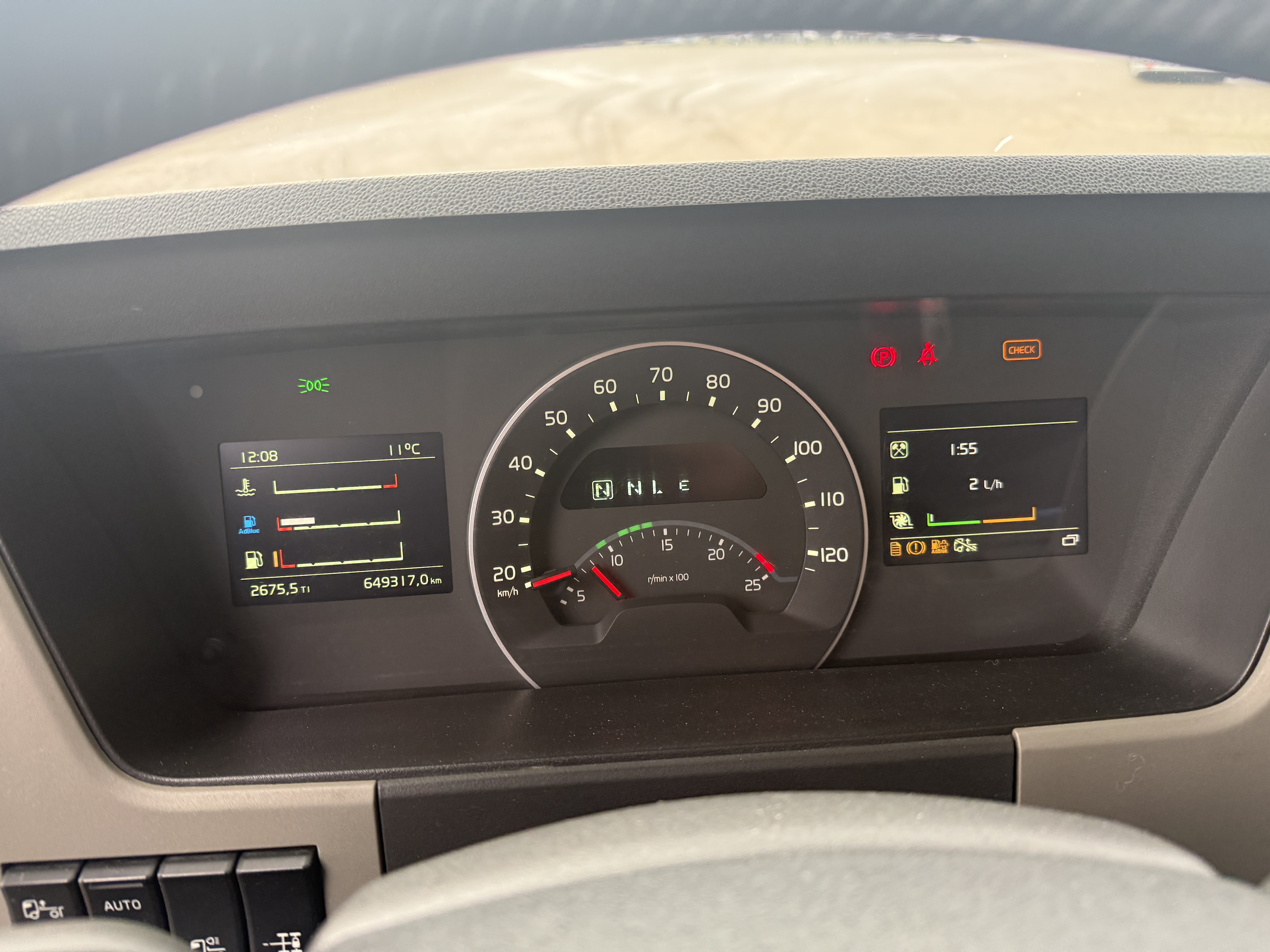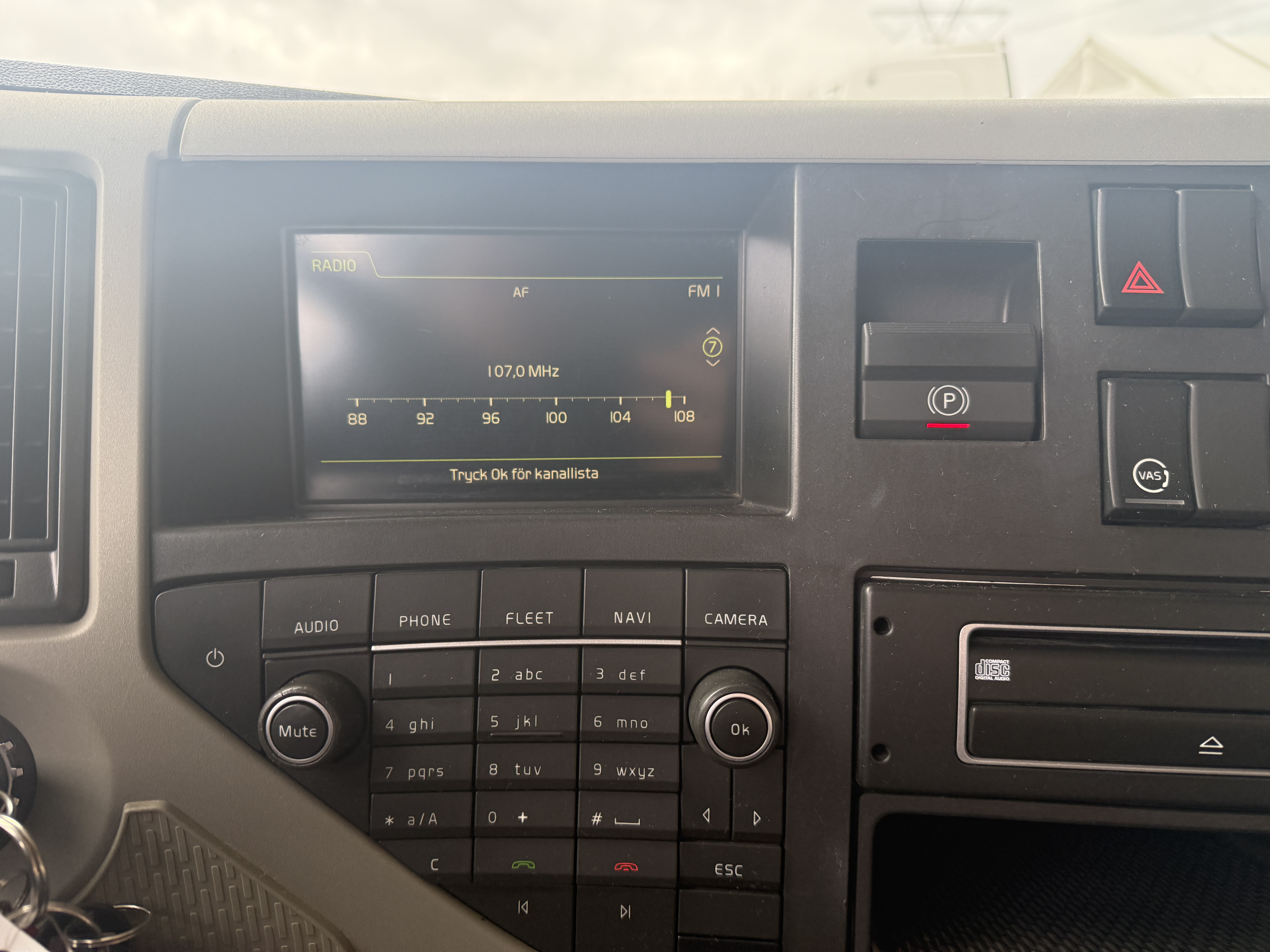 Kabinen er udstyret med fartpilot, køleskab, skabe over køjen og special plysning. Der er aircondition, automatisk klimaanlæg, walkie og radio, samt fjernbetjening til styring af luftaffjedringen. Arbejdslys.