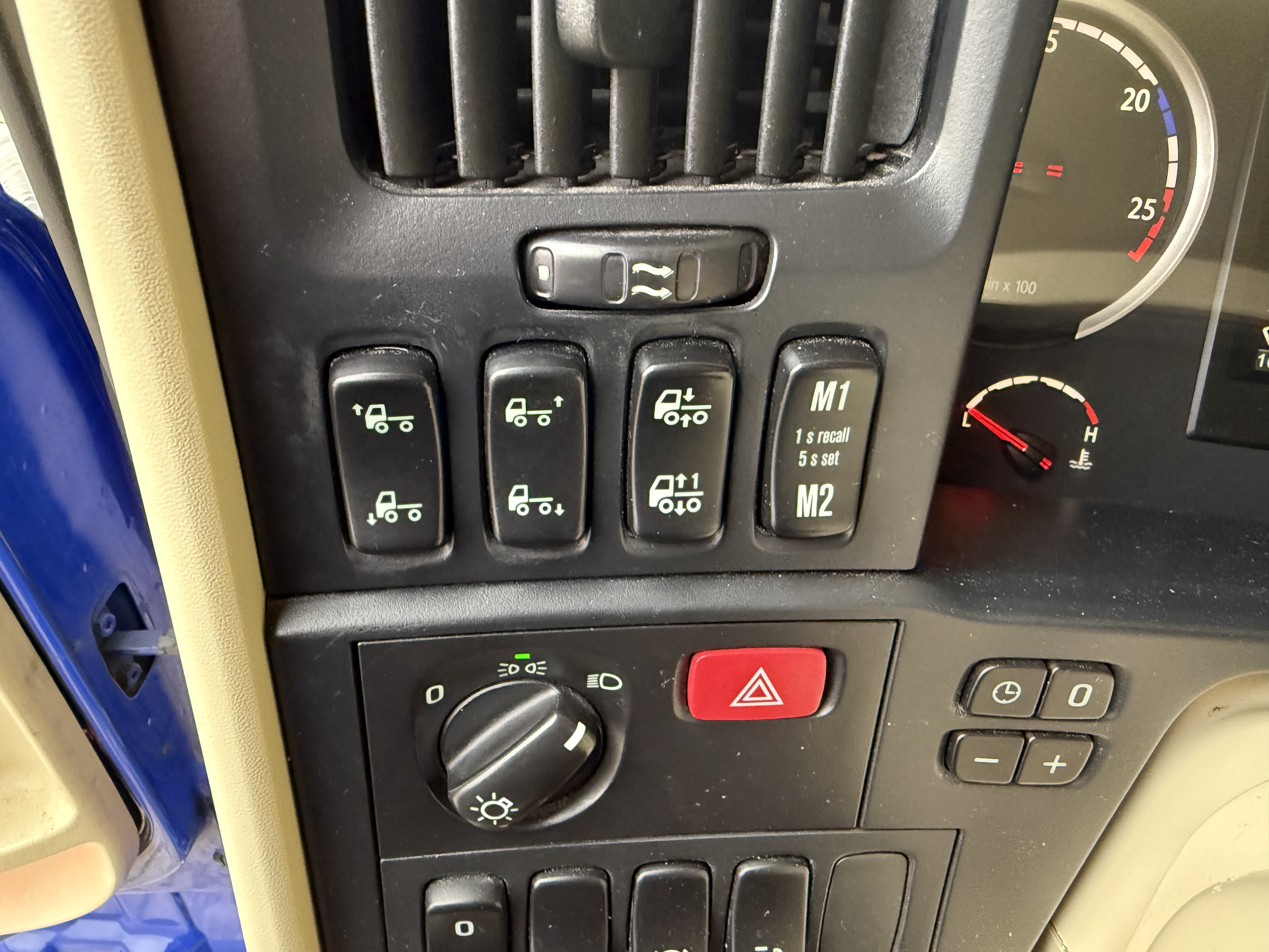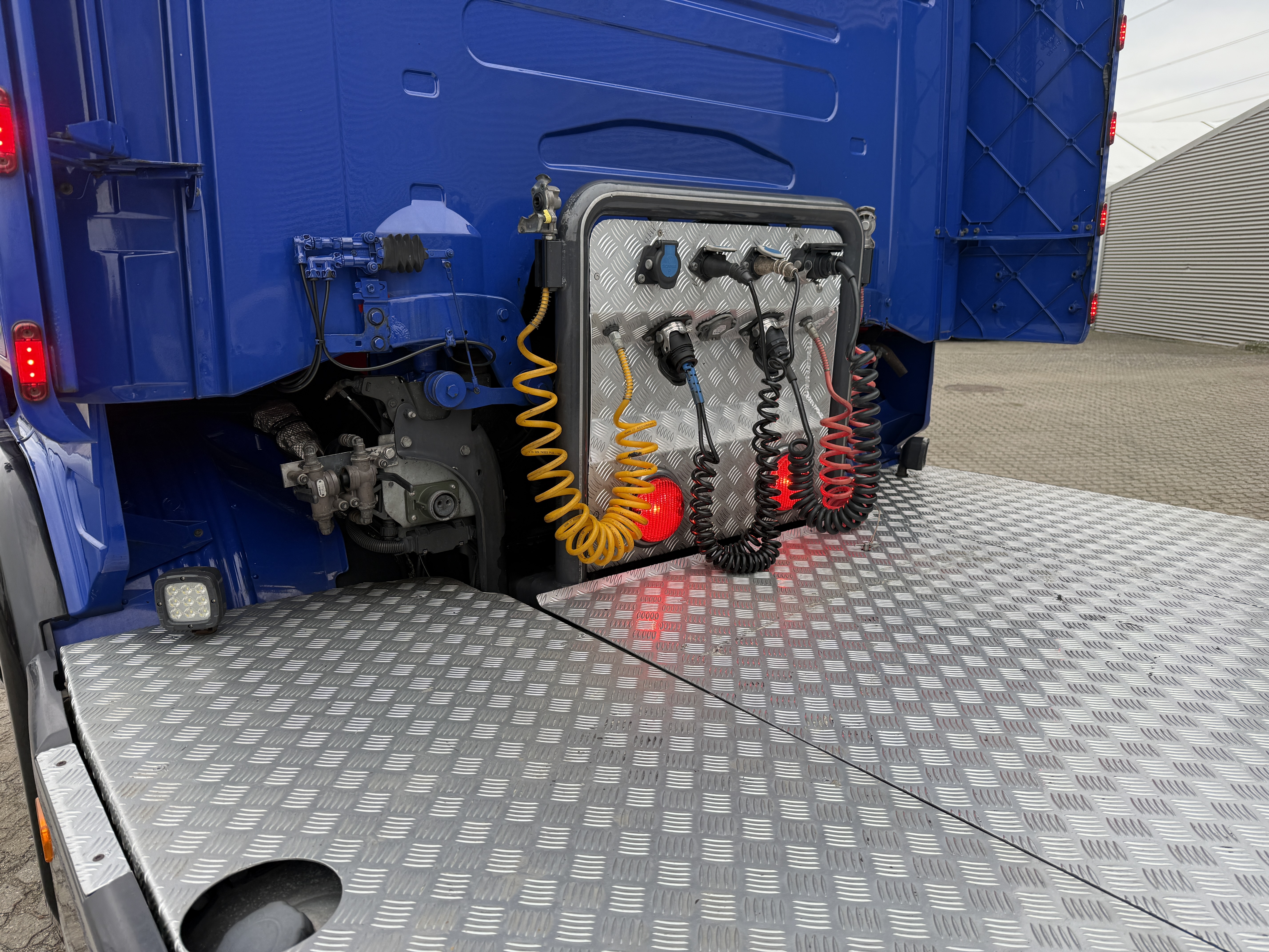 Lastbilen har radio, walkie, aircondition og automatisk klimaanlæg, samt fartpilot og retarder. Udvendigt er den udstyret med alu-afdækning, special bagkofanger, luftforskydelig skammel og stik til kamera på trailer. Derudover har den Volvo-lamper på taget, slingerlamper, LED-arbejdslys, ekstra fjernlys, positionslys i frontgrillen, horn på taget og rotorlys.
