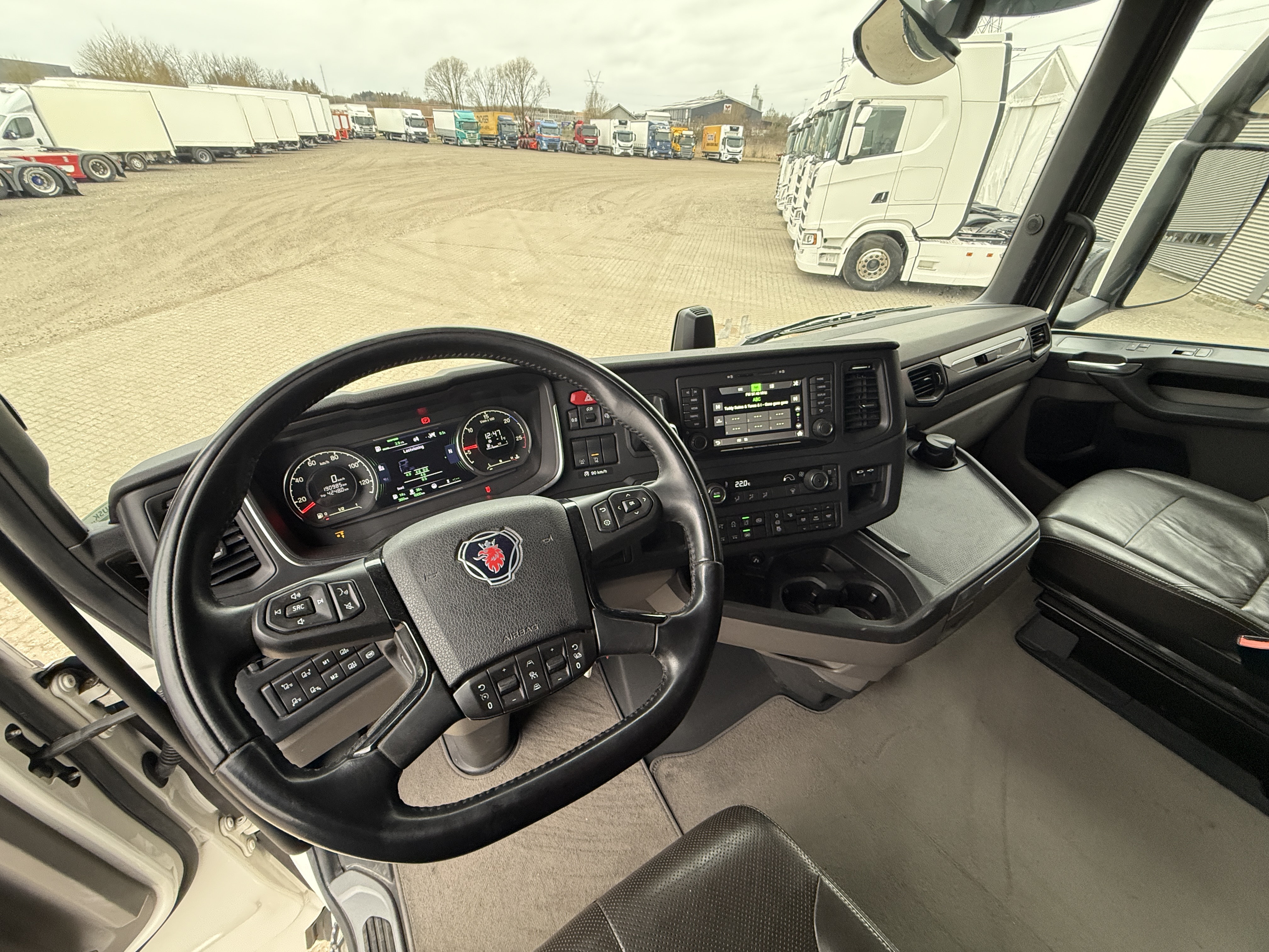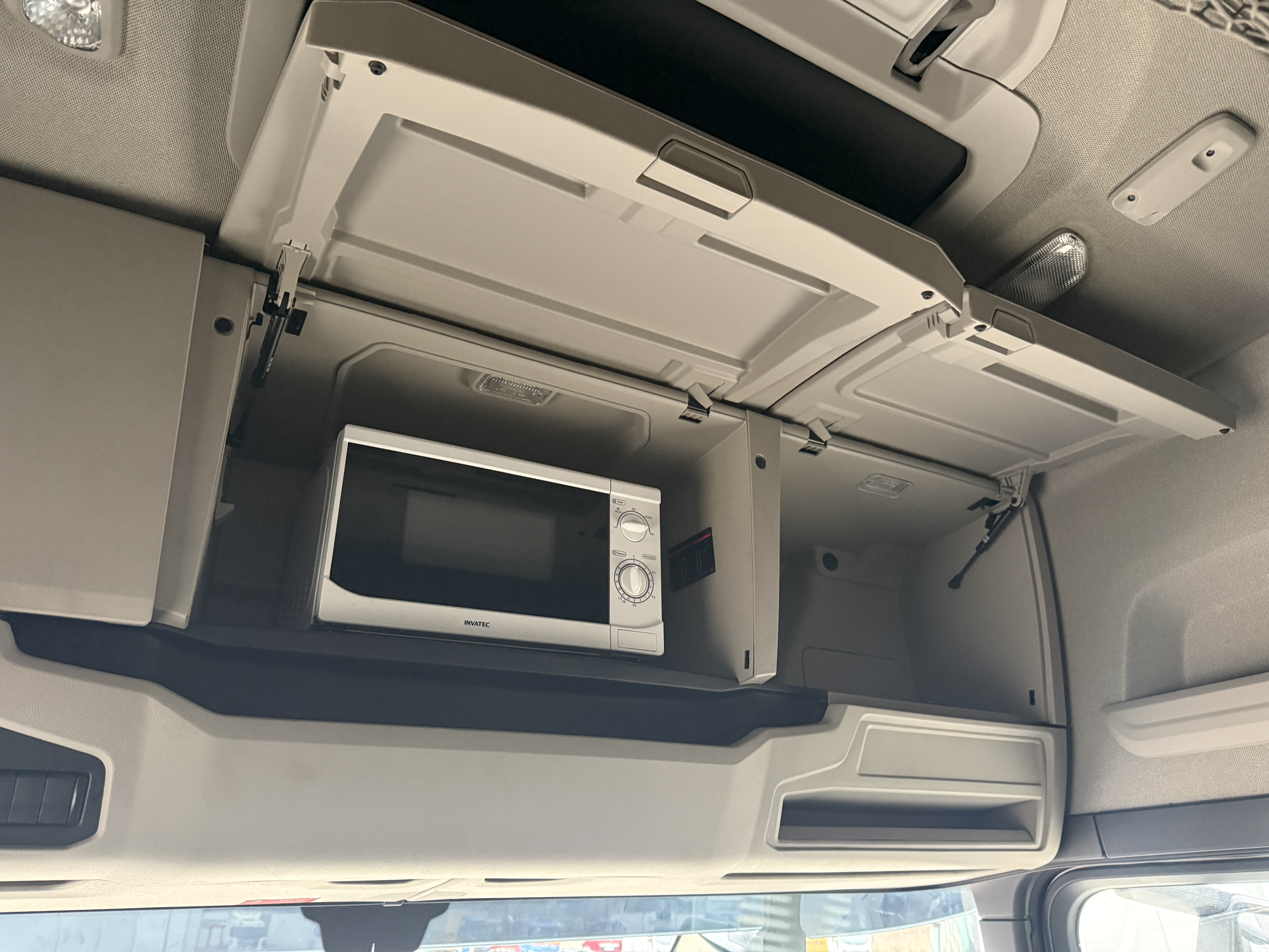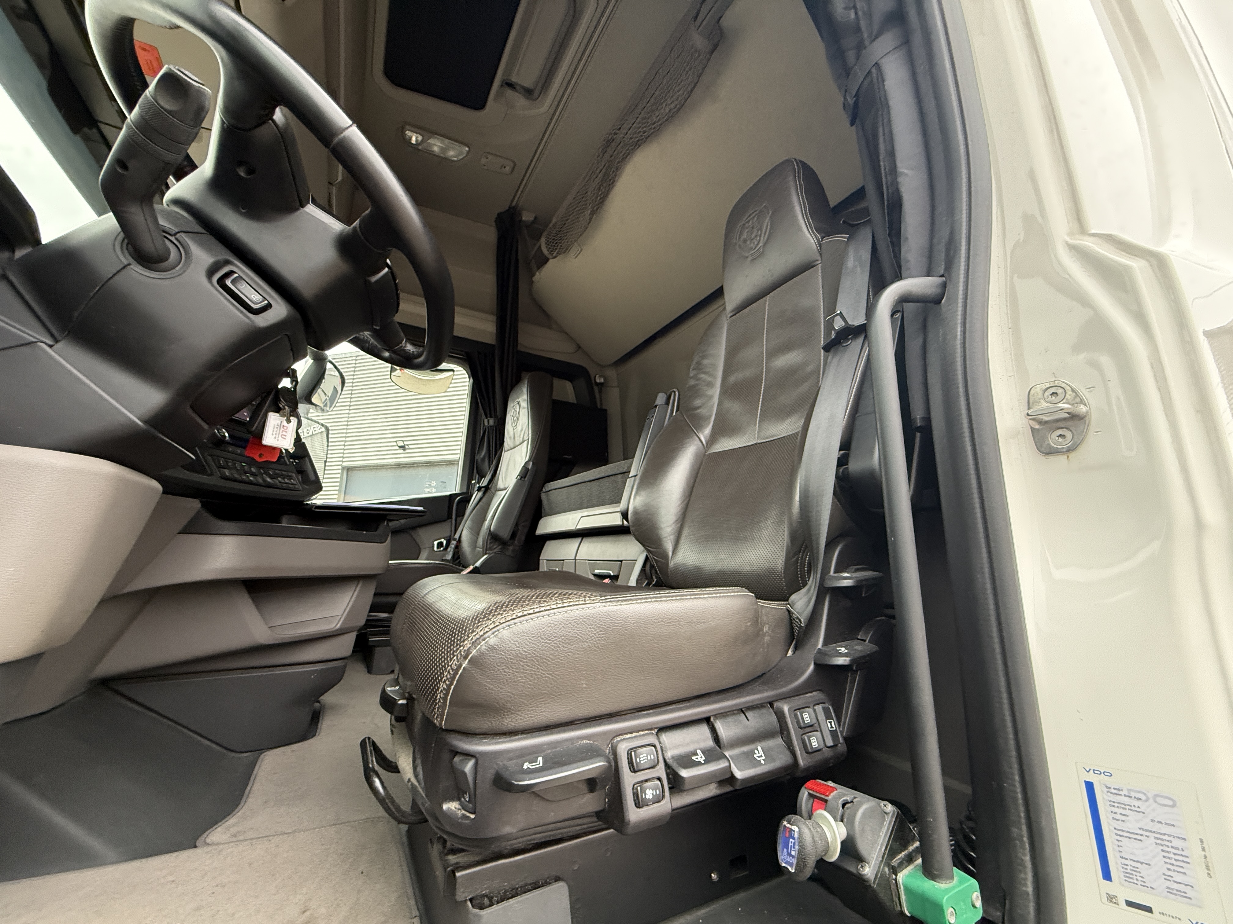 Kabinen byder på lædersæder, førersæde med både varme og ventilation, køleskab, mikrobølgeovn og fjernsyn. Derudover er bilen udstyret med ACC afstandsradar, Lane Assist, lastindikator og walkie.