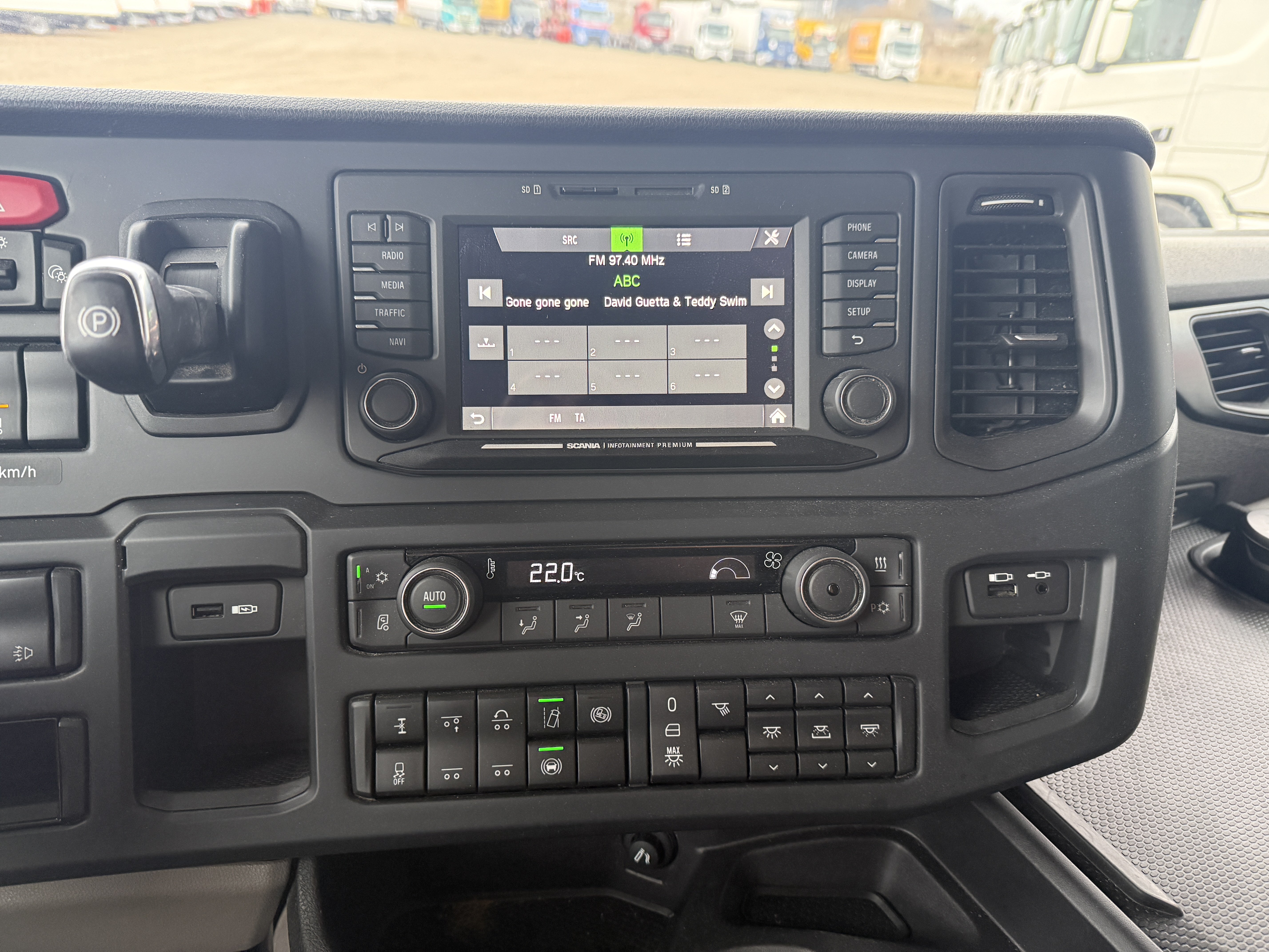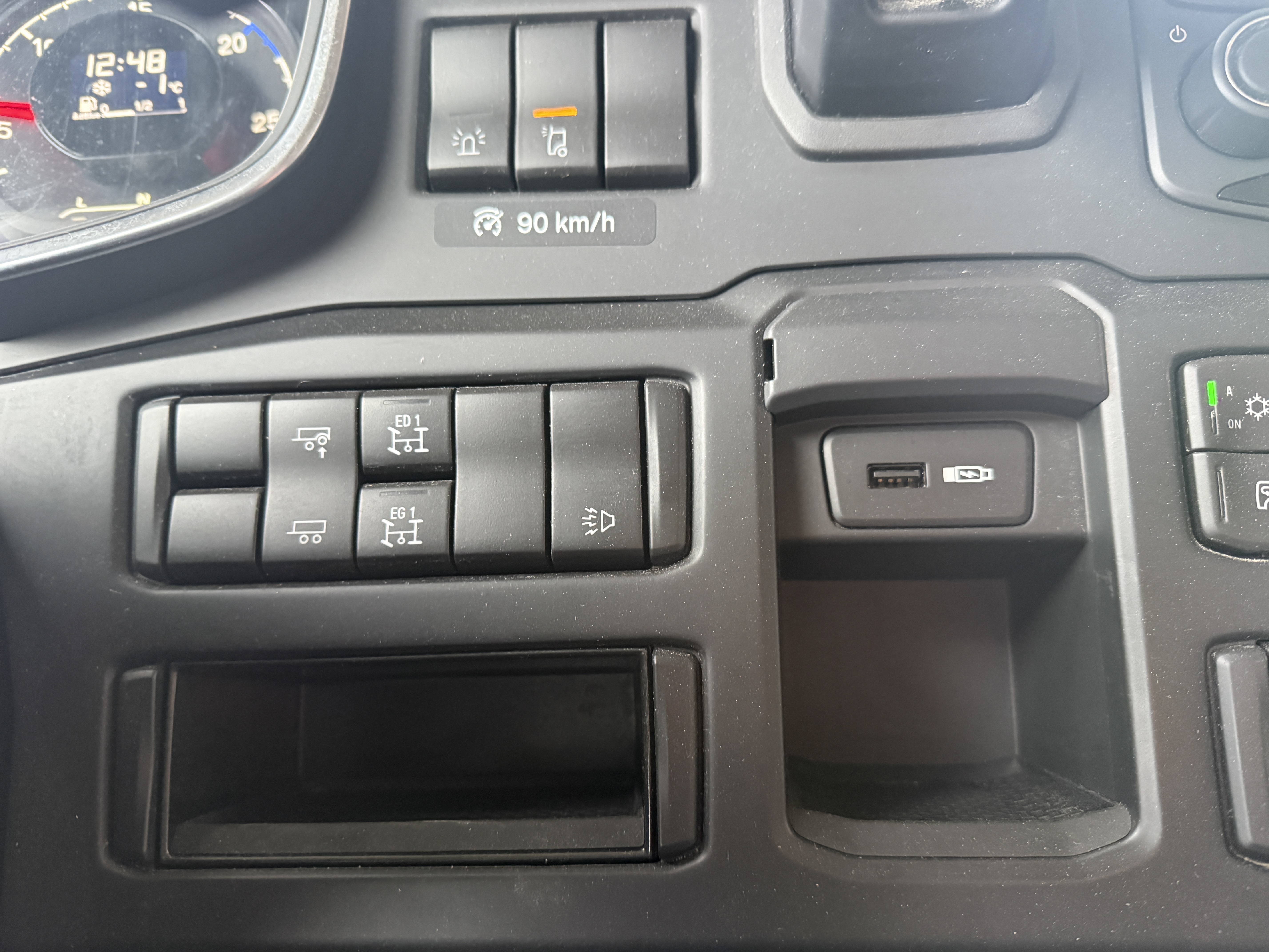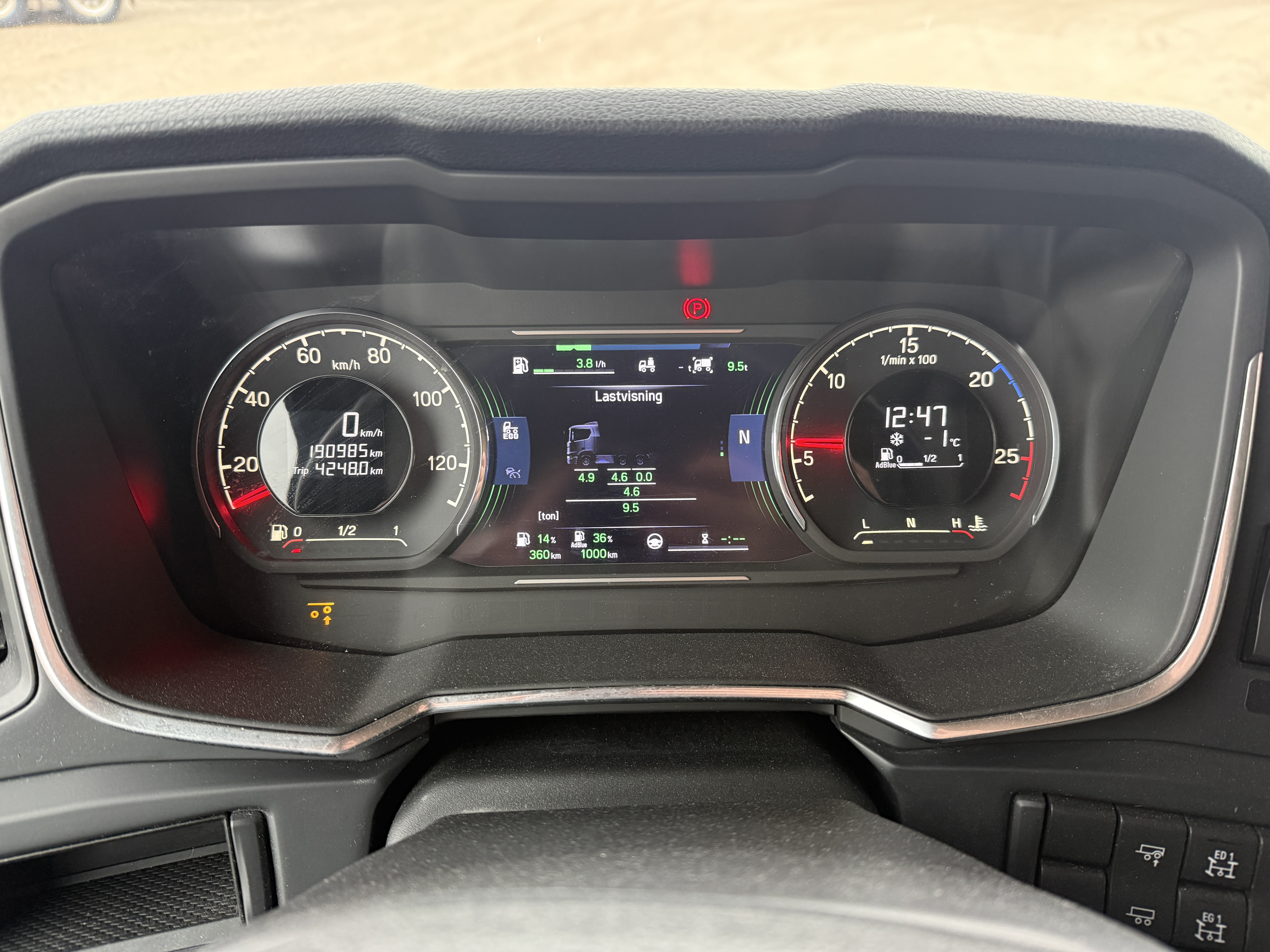Kabinen byder på lædersæder, førersæde med både varme og ventilation, køleskab, mikrobølgeovn og fjernsyn. Derudover er bilen udstyret med ACC afstandsradar, Lane Assist, lastindikator og walkie.
