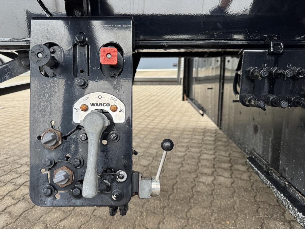 Traileren kører på BPW-aksler med tromlebremser, hvor både 1. og 3. aksel kan løftes efter behov. 4. aksel er medstyrende.