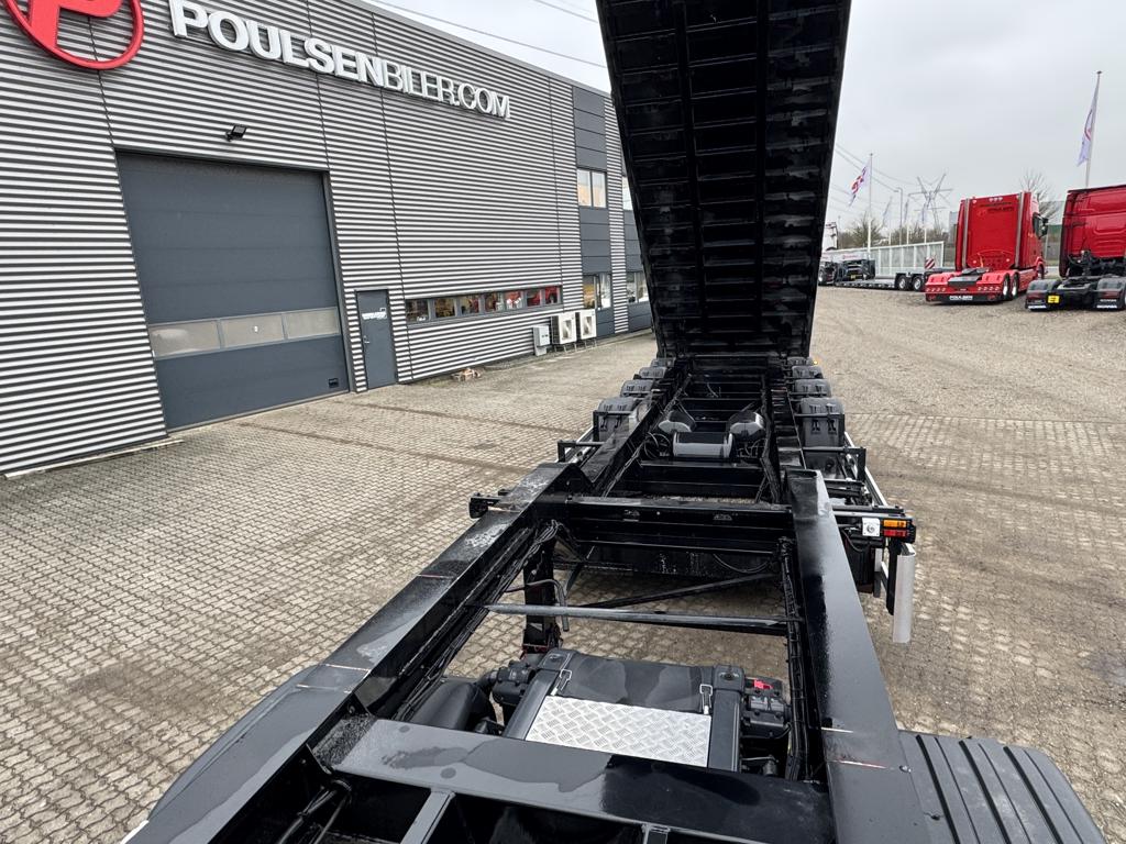 Tiptraileren er opbygget med en robust HARDOX-stålkasse, der sikrer høj slidstyrke og lang levetid. Traileren er udstyret med centralsmøringsanlæg og et fjernbetjent, automatisk net-tag, som gør den daglige drift både nemmere og mere effektiv.