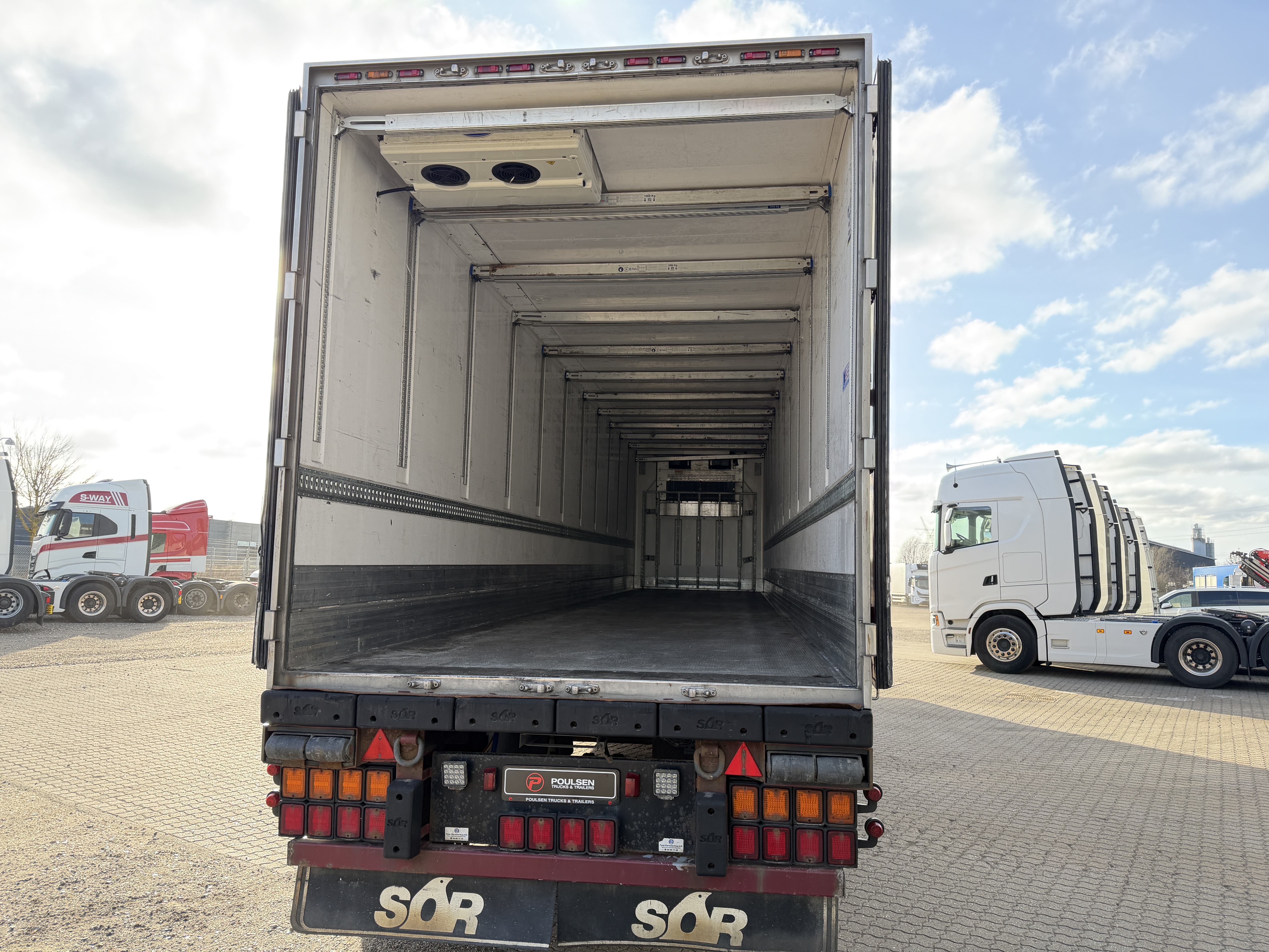 Denne SOR 3-aks køletrailer er en solid løsning til temperaturstyret transport og er udstyret med både 2‑temp kølemaskine og doublestock-system. Traileren har en stor dieseltank med pumpe og tankpistol, og tanken er opmålt til ca. 650 liter.