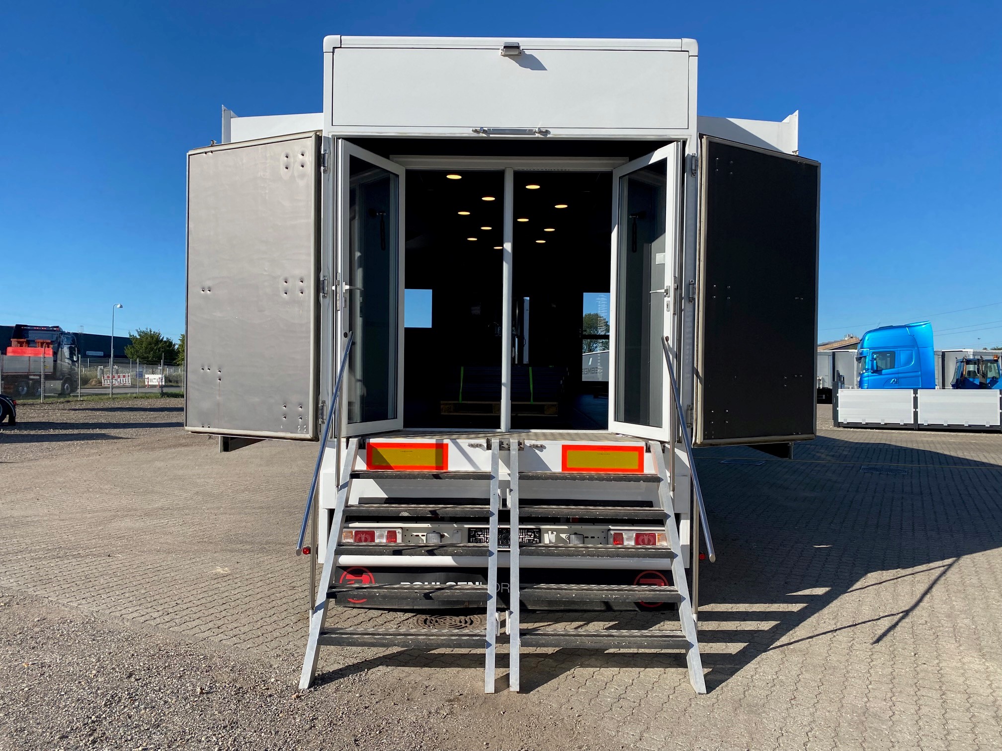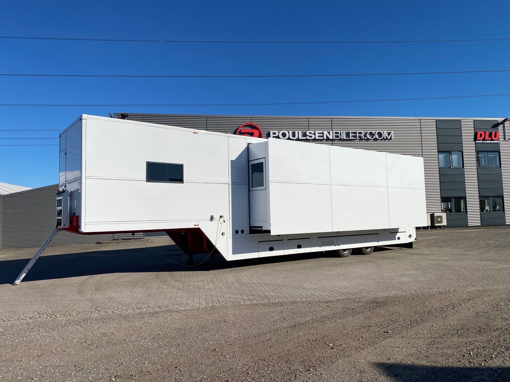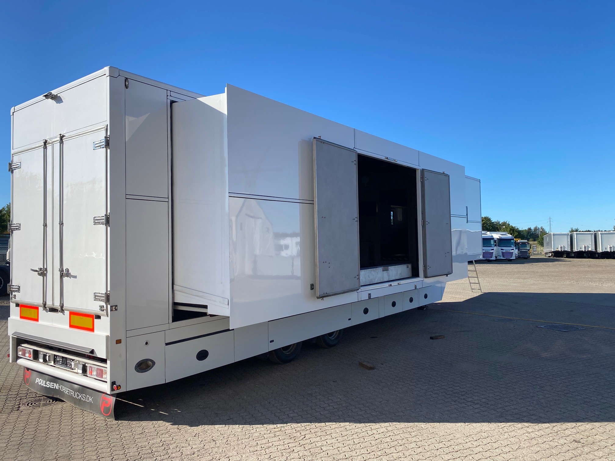 Oplev vores eksklusive udstillings- og showtrailer, udstyret med dobbelt pop-out, der skaber et indbydende loungeområde. Traileren indeholder desuden et kompakt tekøkken med køleskab og kaffemaskine, hvilket gør den ideel til længere ophold og gæstebetjening.