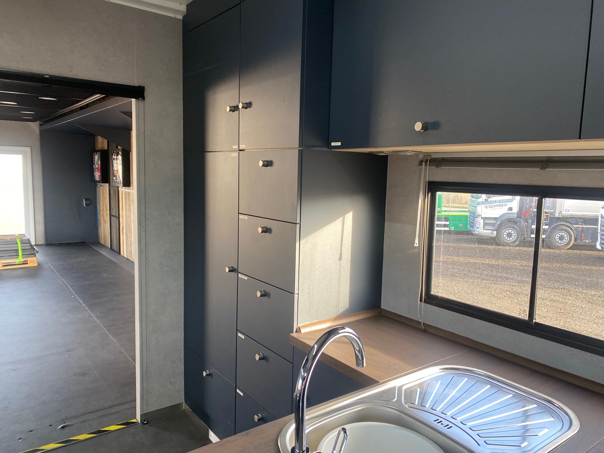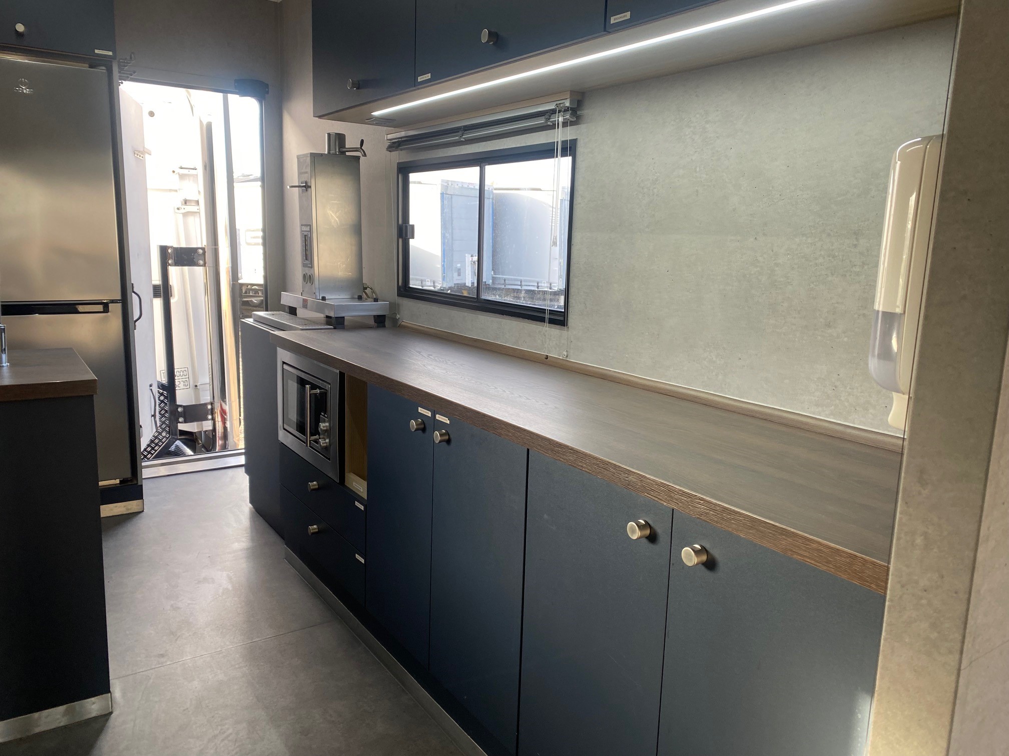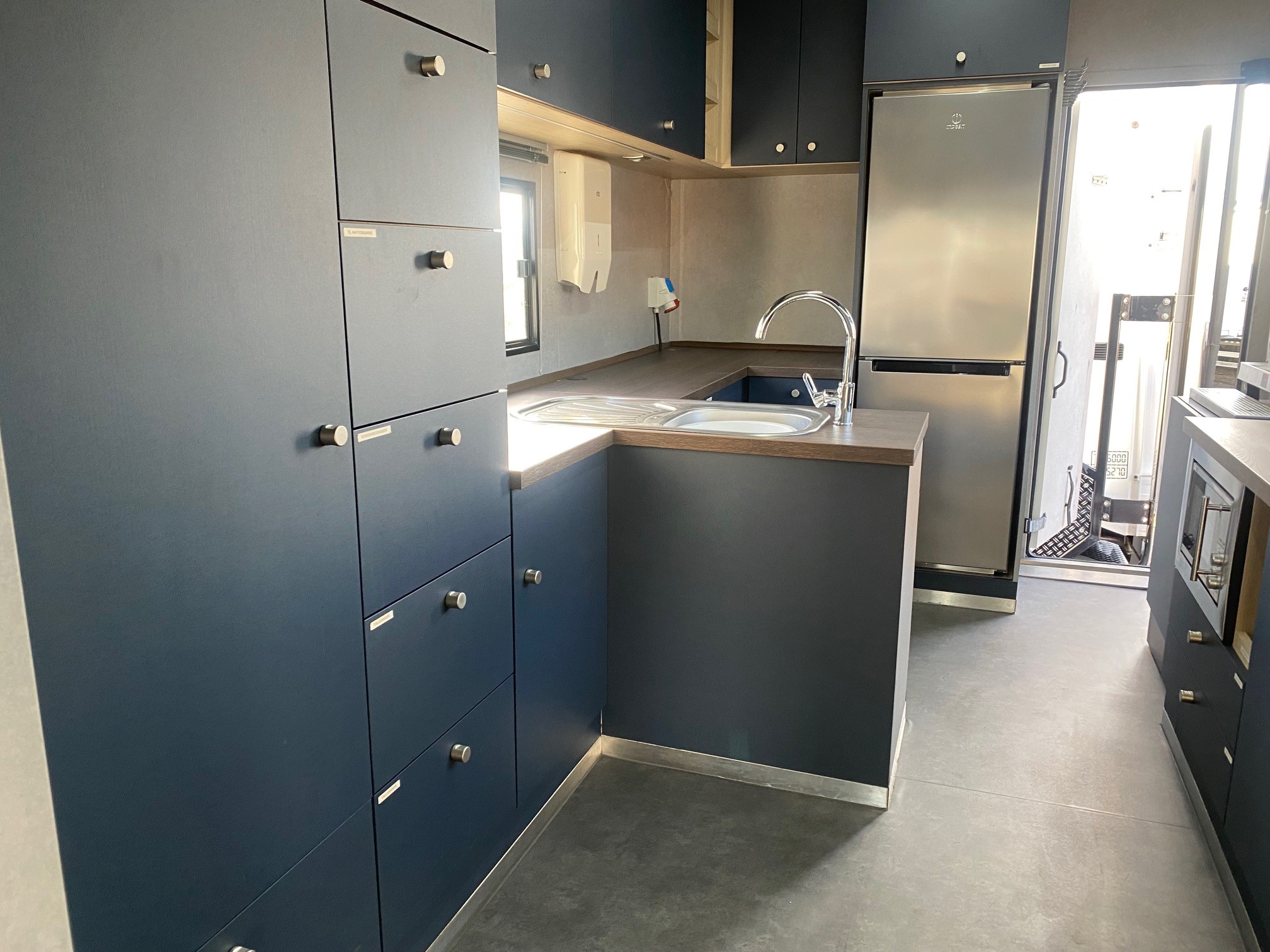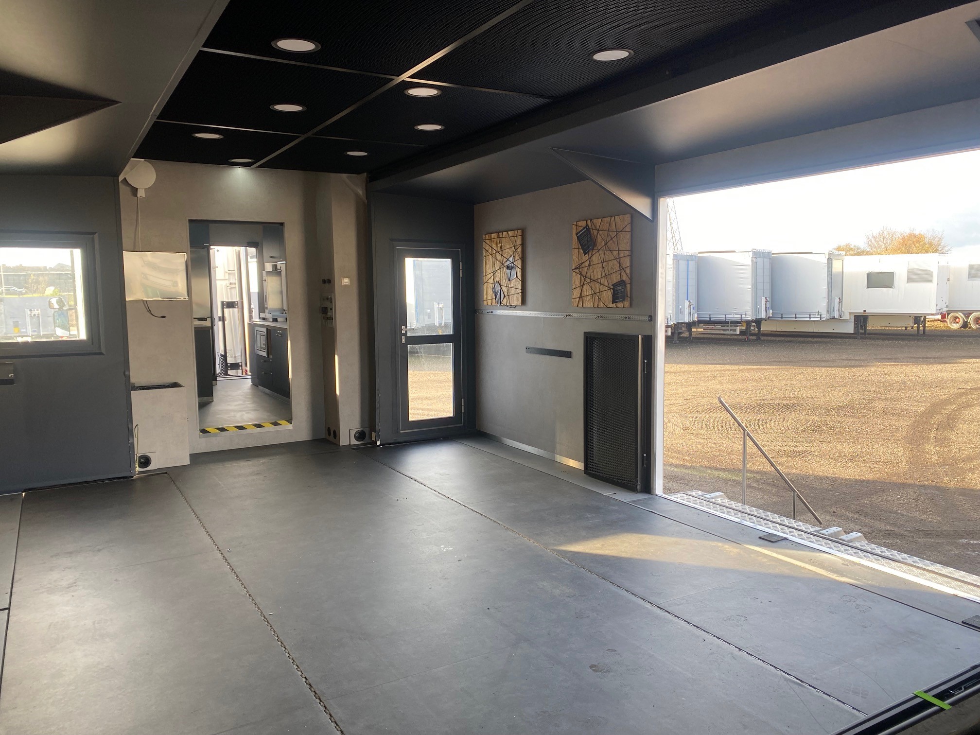 Oplev vores eksklusive udstillings- og showtrailer, udstyret med dobbelt pop-out, der skaber et indbydende loungeområde. Traileren indeholder desuden et kompakt tekøkken med køleskab og kaffemaskine, hvilket gør den ideel til længere ophold og gæstebetjening.