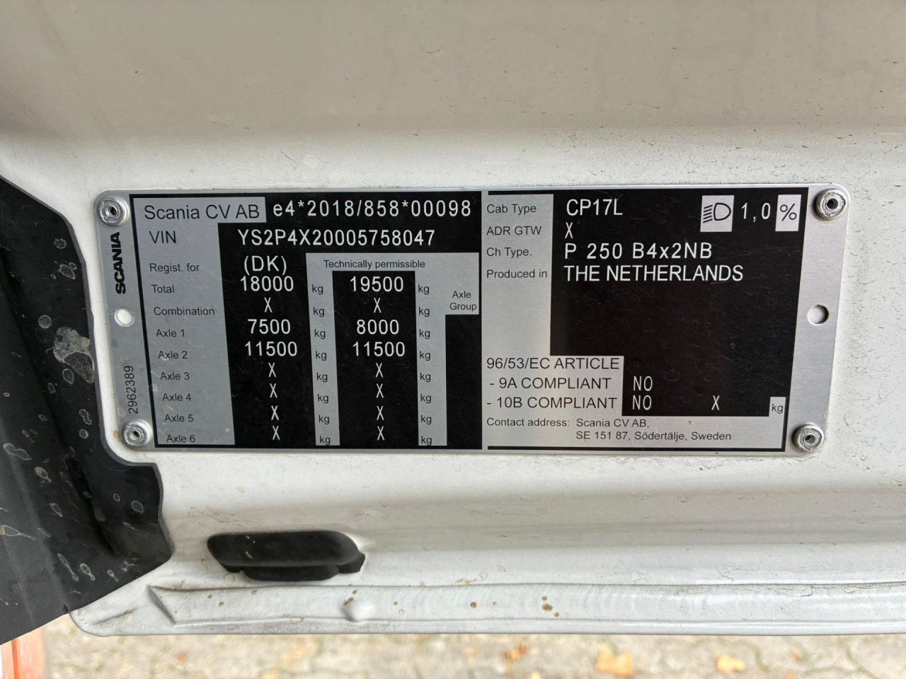 Nyttelast: 8.195 kg, Tilladt totalvægt: 18.000 kg, Brændstofstank: 315l, Akselafstand: 5.550 mm