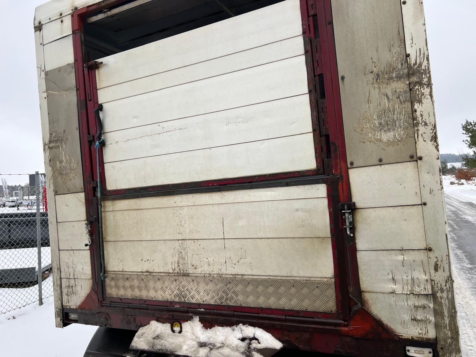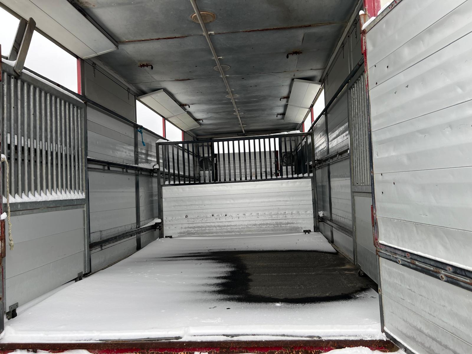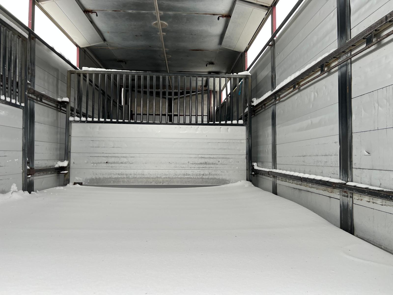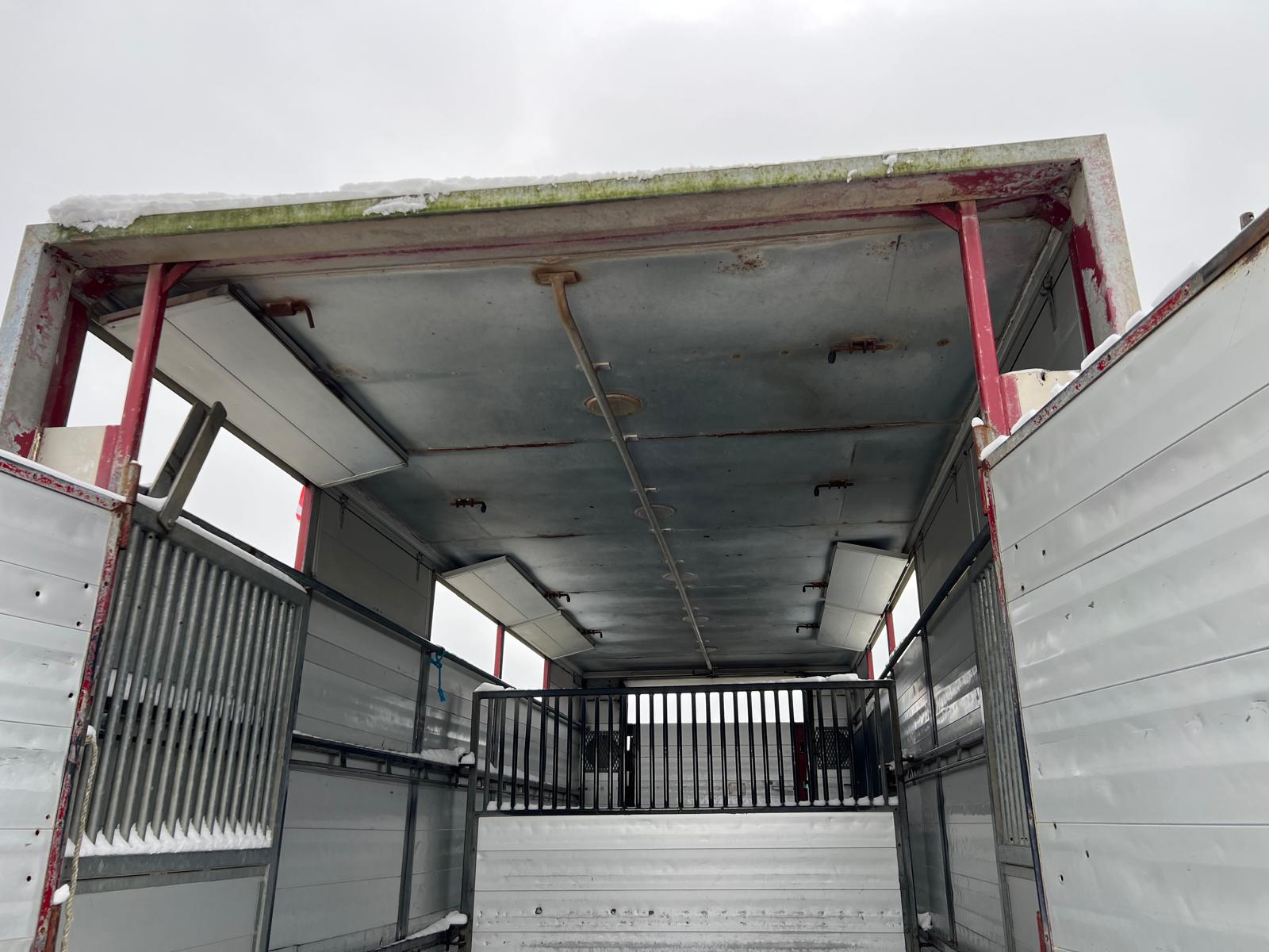 Alu. kasse fra Øster Snede Ladfabrik indvendige lad længde : 7150 x H 2150 x B 2420 mm - 3 stk svingbar skillevæg som giver 4 stk. opdelings rum - gulv areal 17m2 godkendt til : Heste - Får - Geder - Svin + 40kg se dyre attest under fotos