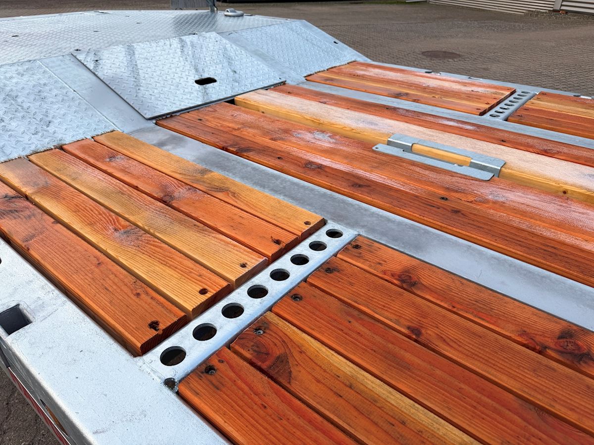 70 mm lærketræ planker i bund, samt riflet stål over hjulkasserne - 70 mm for brednings planker som ligger i midten nedfældet i lad bunden