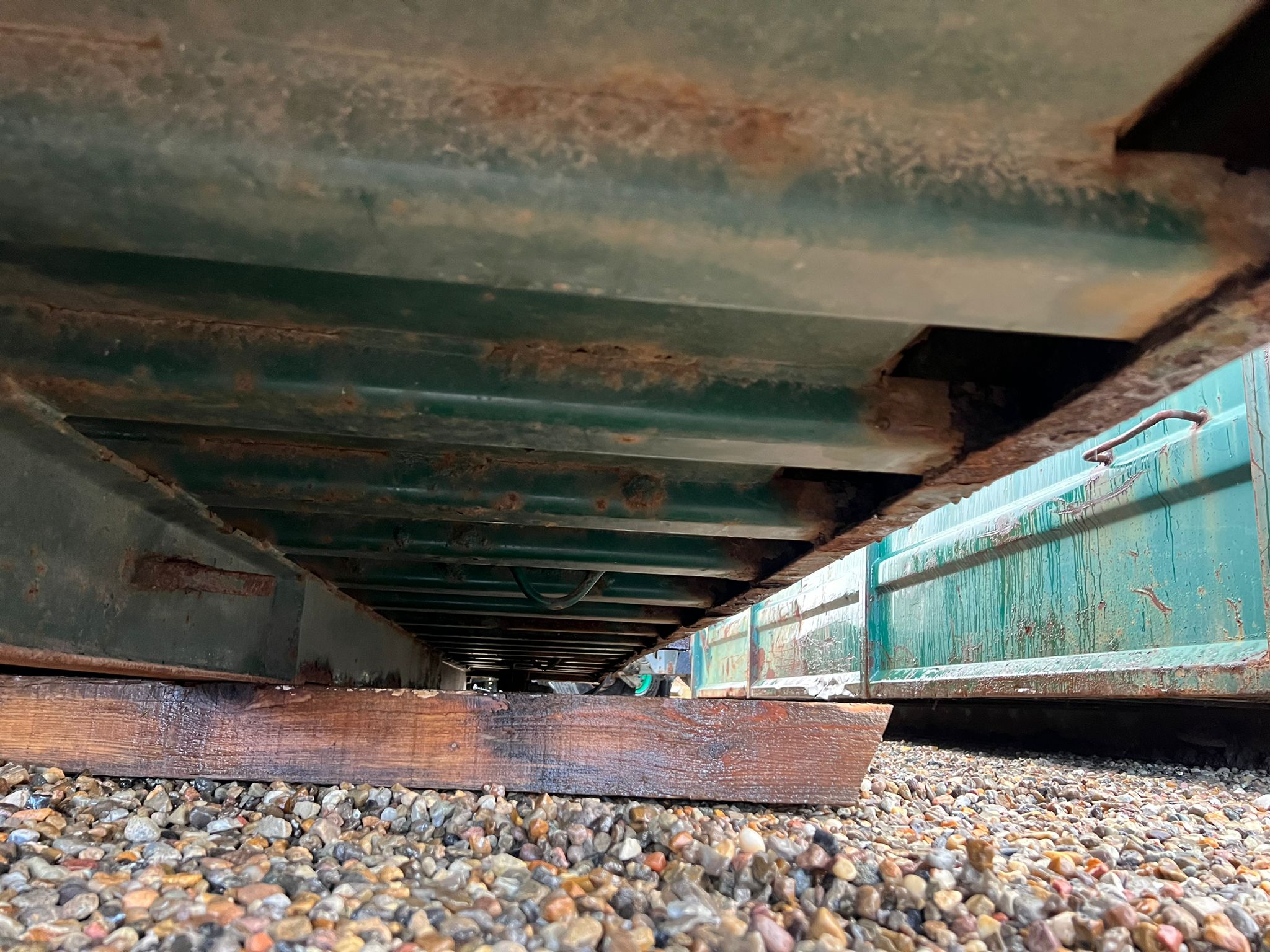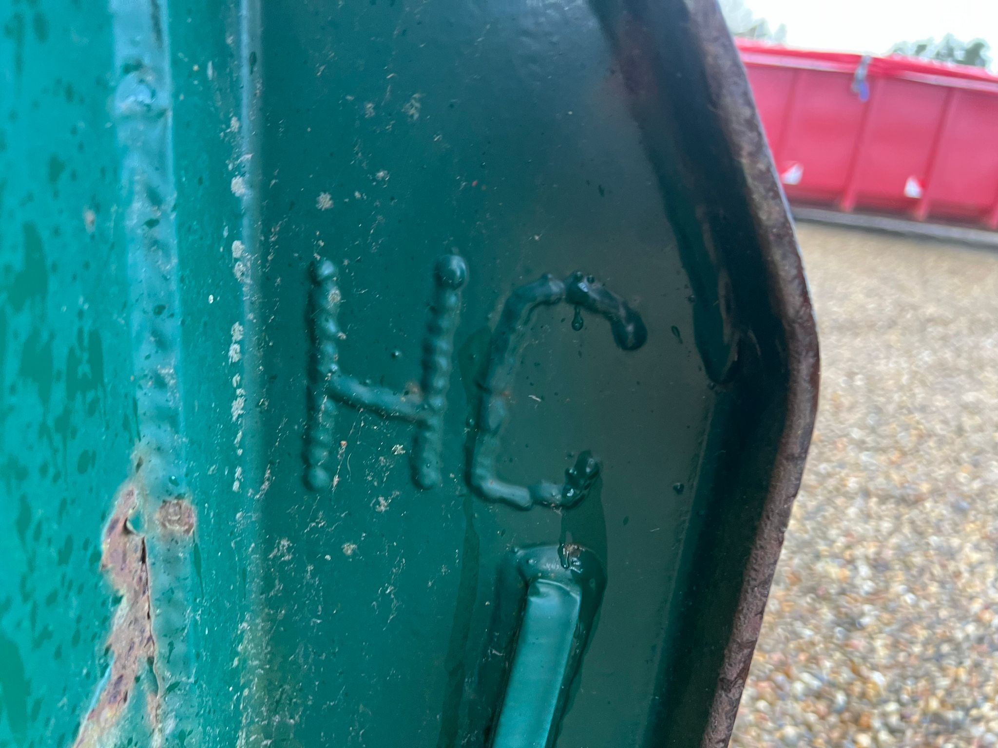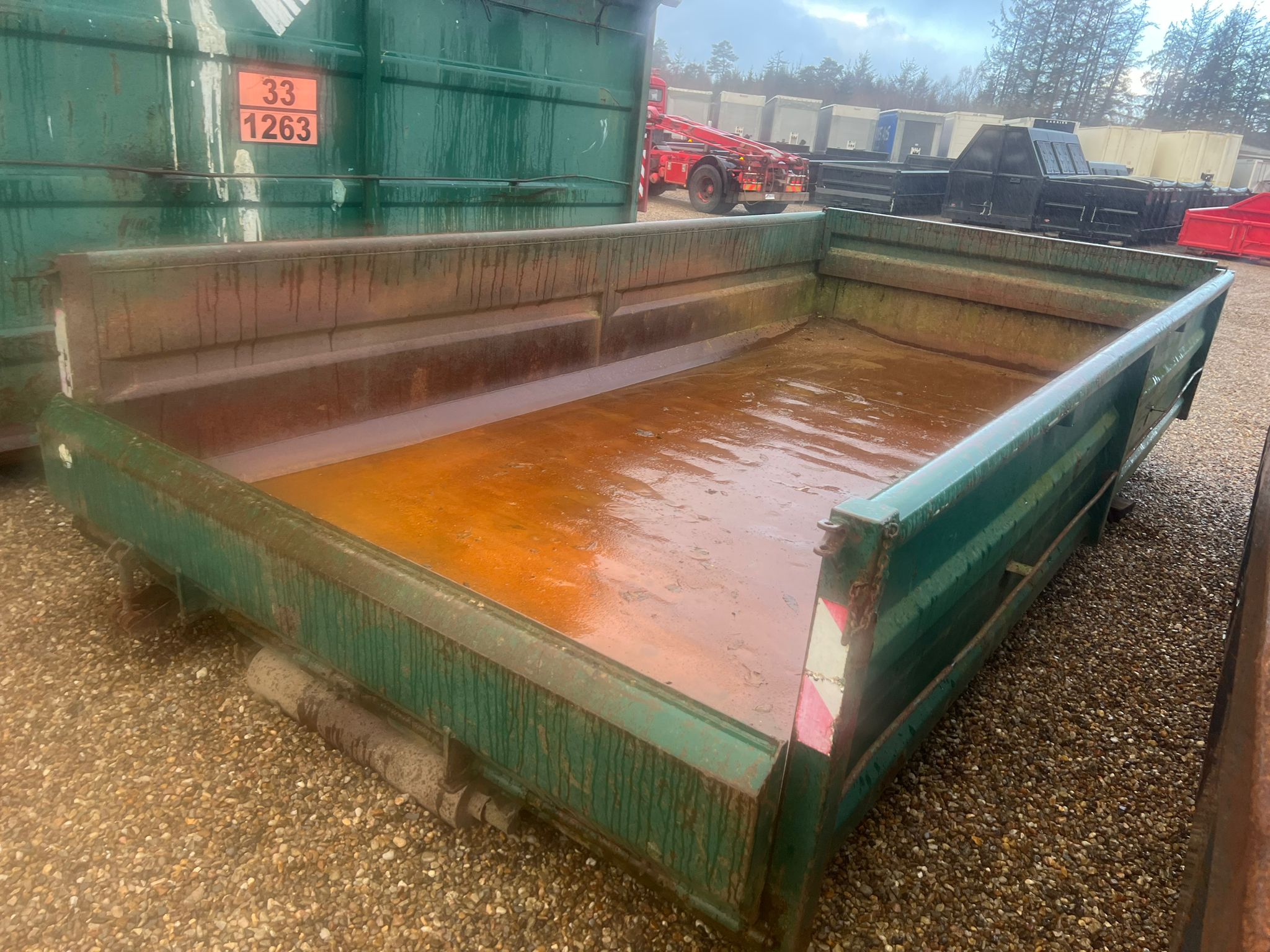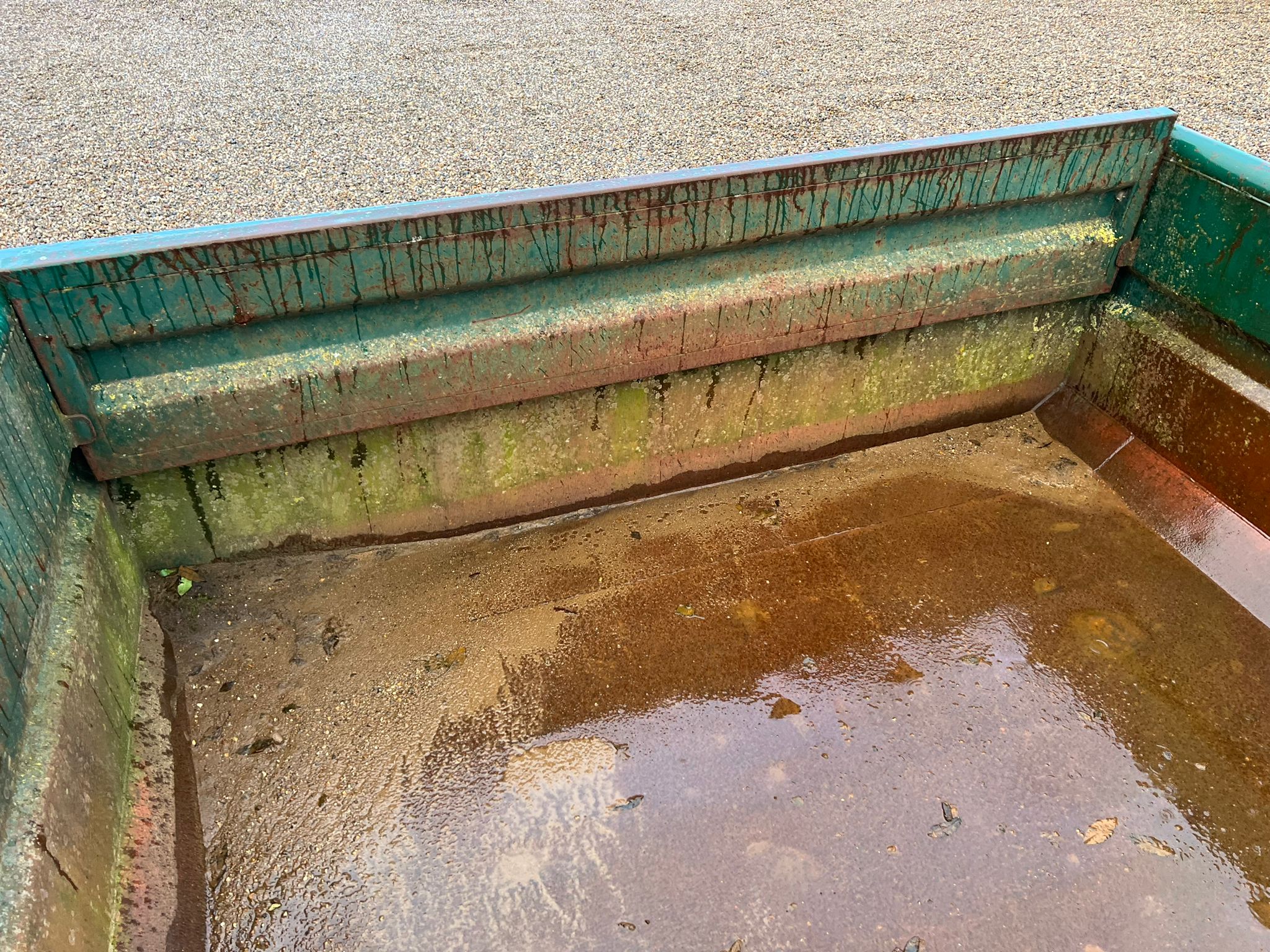 Bund fremstår pæn jævn - Stærk kasse med kort afstand mellem forstærkninger under bund - Mørkegrøn ligner RAL 6005