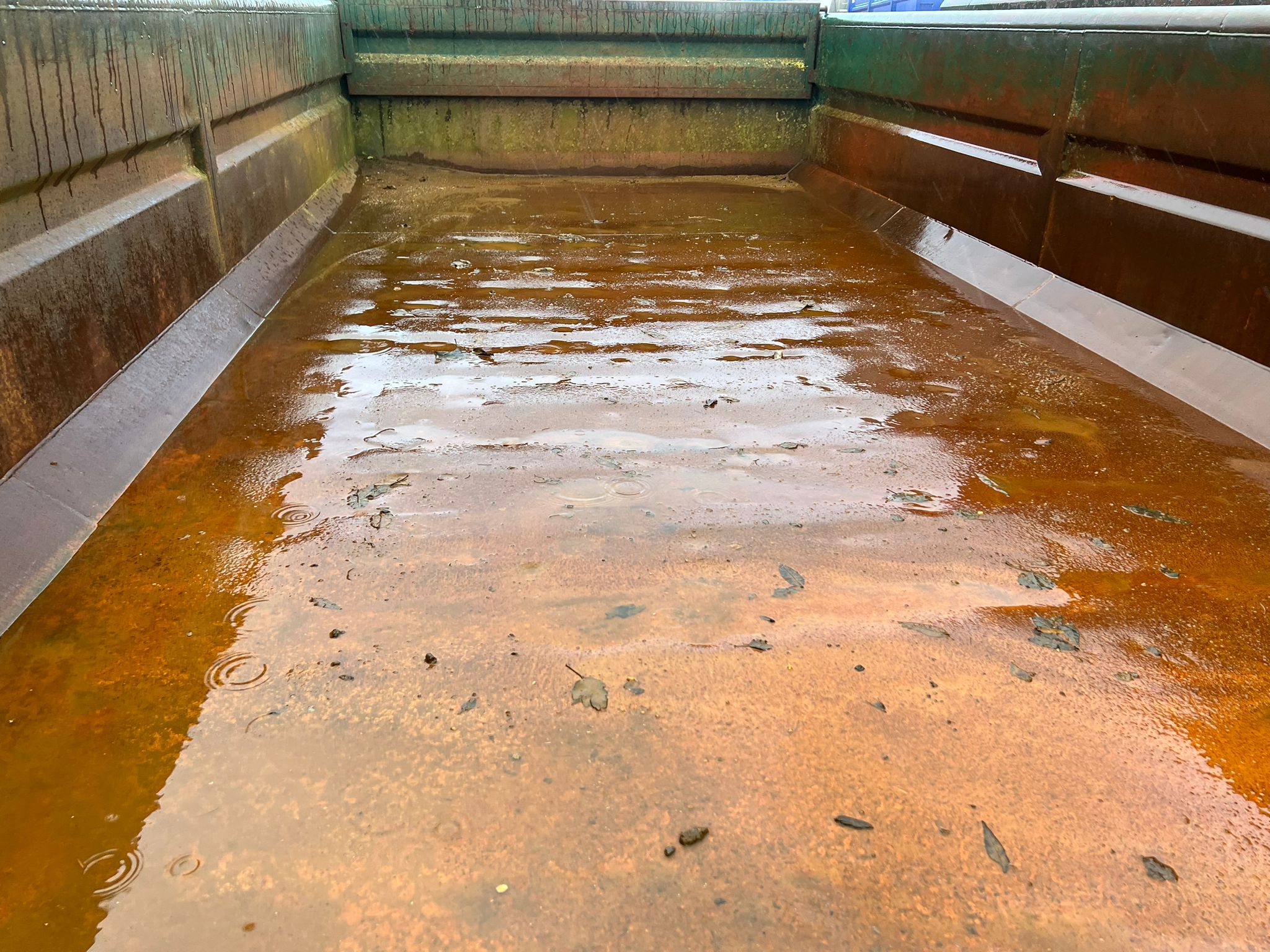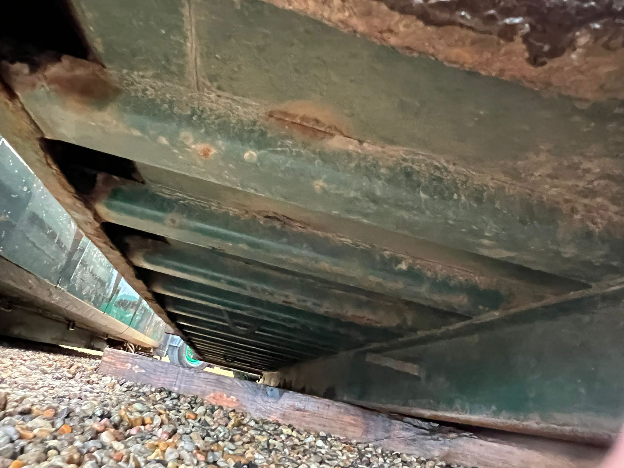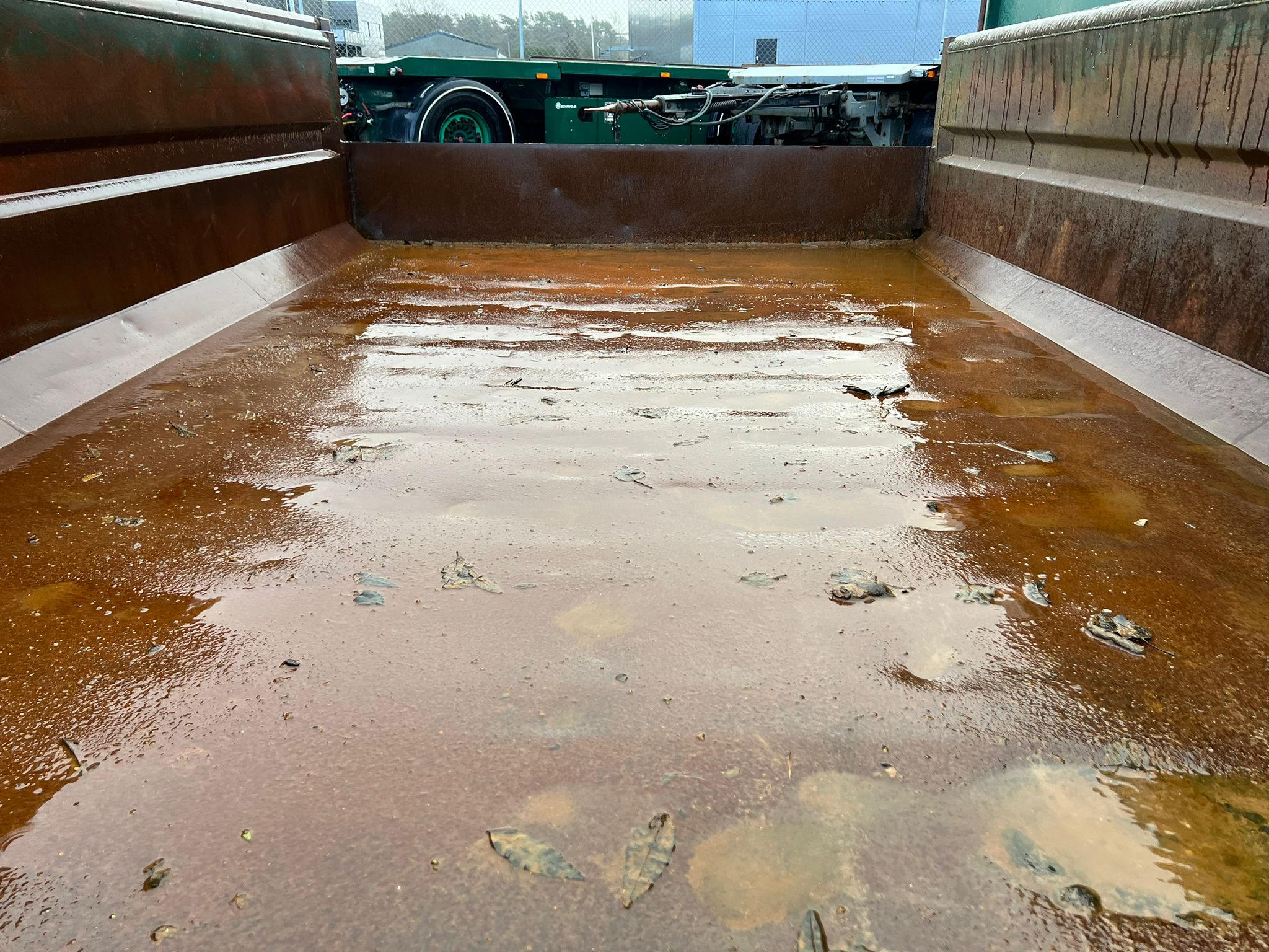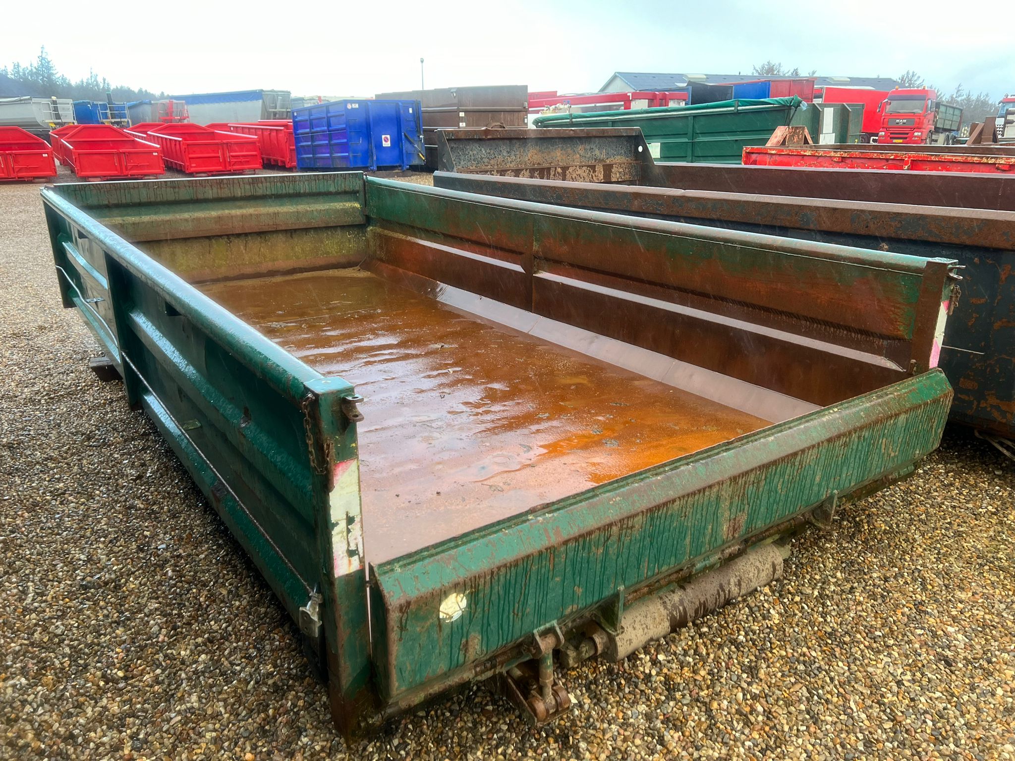 Bund fremstår pæn jævn - Stærk kasse med kort afstand mellem forstærkninger under bund - Mørkegrøn ligner RAL 6005
