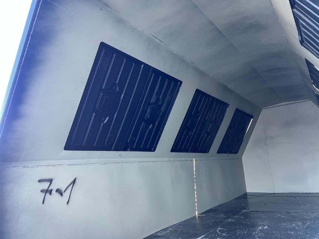 Opbygget med følgende indv. mål: L 4950 (5000 ex. døre) x B 2110 x H 1850 mm (ca. 19m3)