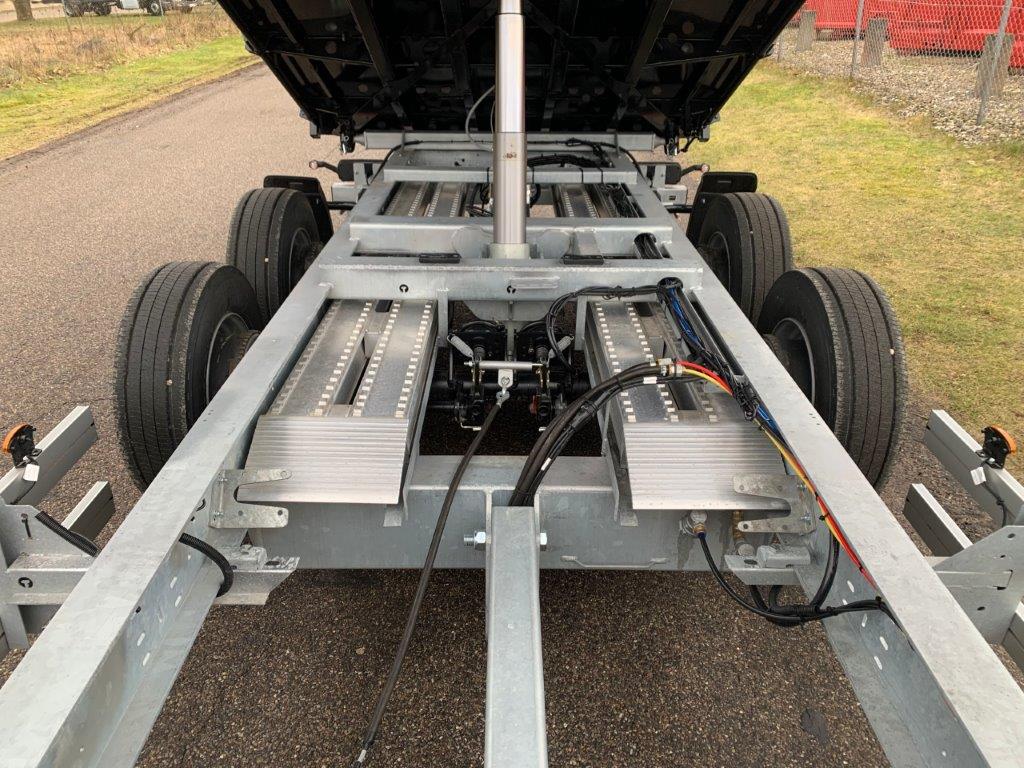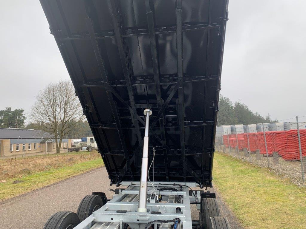 Opbygget med 5000 mm 3-vejs tip - via 1-strengs hydraulik fra forvogn. (bagtip + sidetip til begge sider)