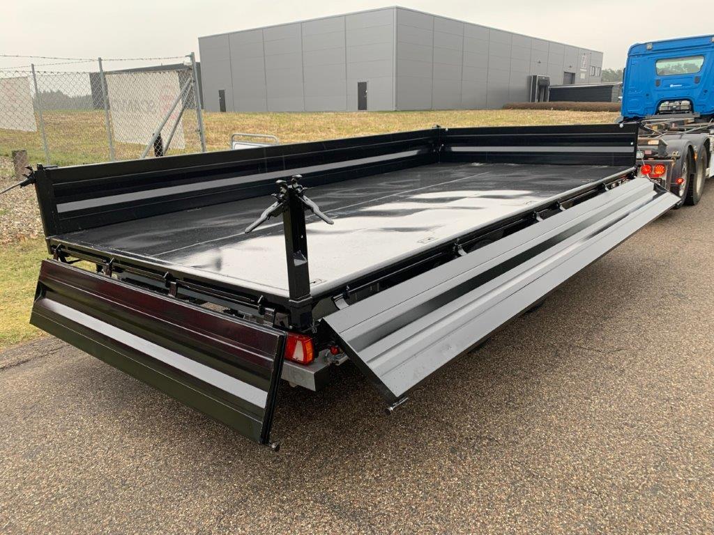 Opbygget med 5000 mm 3-vejs tip - via 1-strengs hydraulik fra forvogn. (bagtip + sidetip til begge sider)