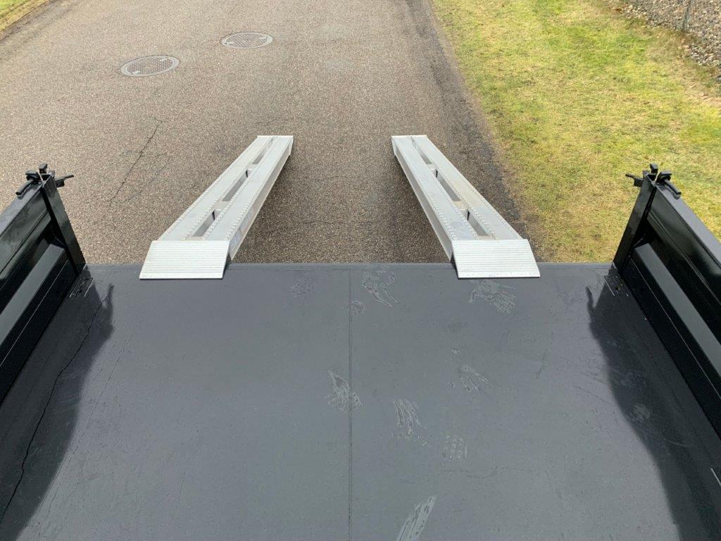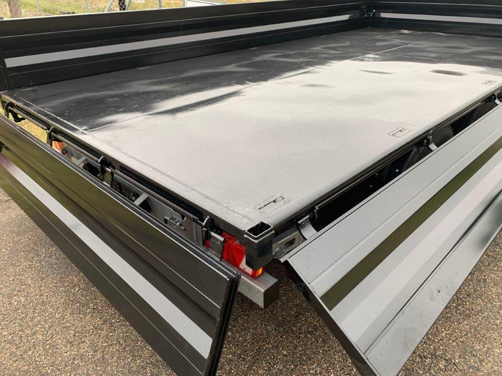 Ladbunden er opbygget af stål, 450 mm aftagelige stålsider + stål bagklap. Fronten er boltmonteret og kan også afmonteres hvis det ønskes. Siderne er udstyret med fjeder-træk som ses på fronten gør det enkelt for en person, at åbne og lukke siderne uden besvær - tilhørende 2 stk. løse 8.000 kg (par) 3.000 x 360mm alu-ramper opbevaret i magasin mellem chassisvangerne - trækkes ud bagerst på kærren - 1.750mm lang trækstang med 57mm trækøje med en koblings længde på 71500mm - Trækstangen er højdejusterbar fra 750 til 1050mm - læssehøjde 960mm - Kærren er udstyret med BPW aksler med tromlebremser på parabel fjedre - Galvaniseret chassis og bestilt med RAL 9005 Tiefschwarz sort lakeret lad sider, kan også leveres i ønsket RAL farve ved bestilling