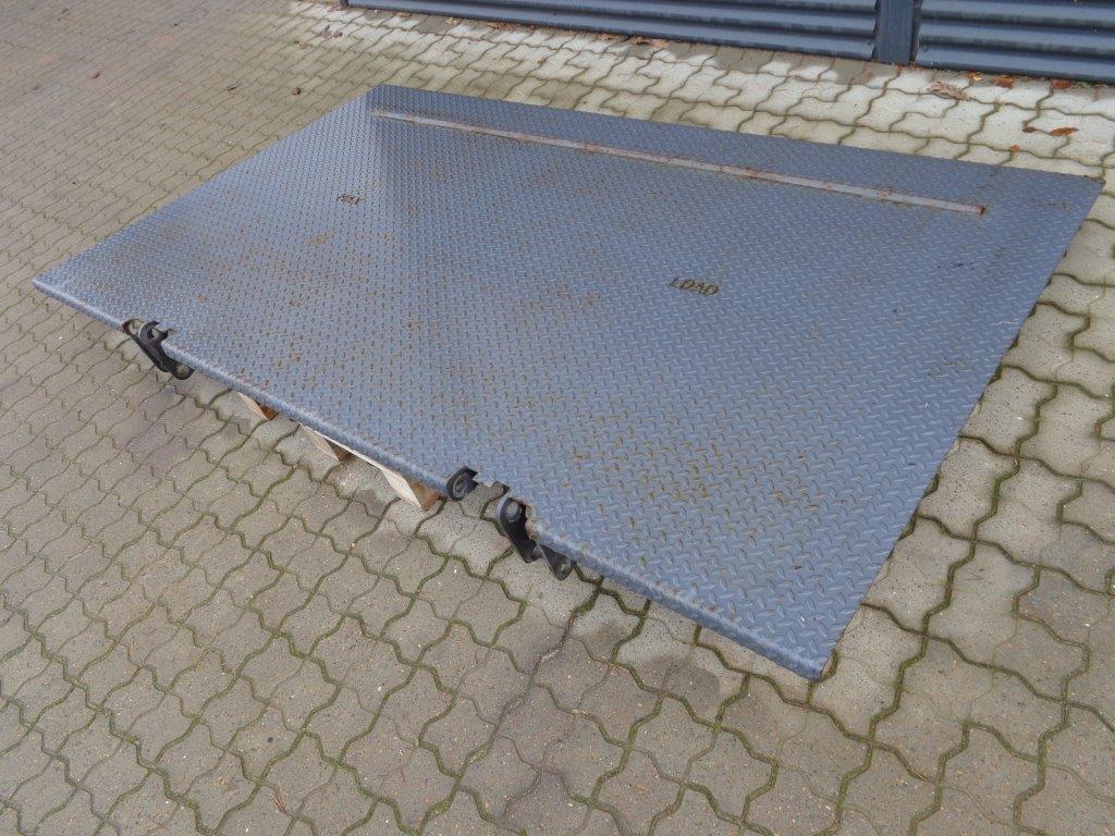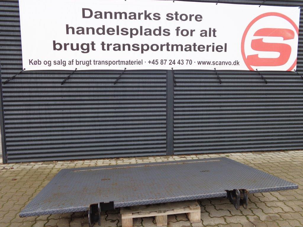 Fin Zepro Z150-135MA lift plade med containerstop. H: 1500 mm x B: 2530 mm. Yderligere mål kan ses på sidste billede.