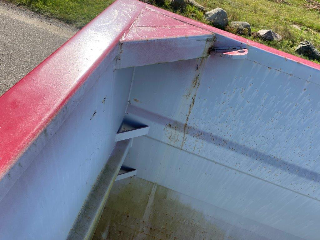 udv. ladmål 6630 + skuffen 540 mm ialt total 7200 mm - indvendige mål: Længde 6180 x Højde 2000 mm x bredde 2180 mm - rumindhold 26 m3 - isoleret med skum og derefter beklædt med rustfri plader - bunden er fremstillet i stål 52