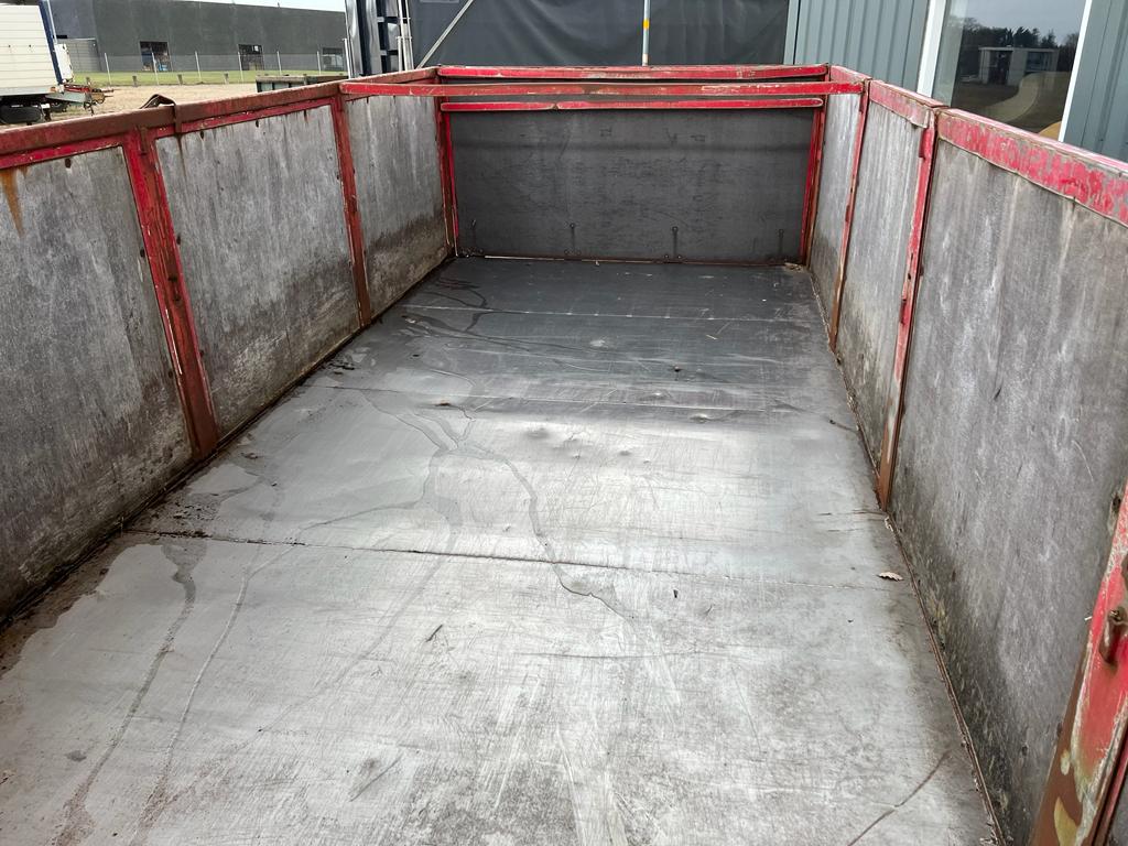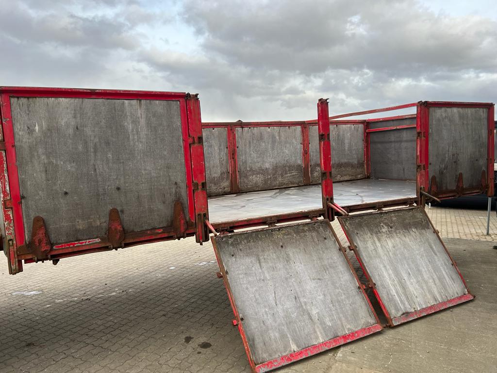 Opbygget med følgende indv. mål: L6190 x B2440 x H1240 mm (Totallængde ca. 6350. mm alt inkl.) - Top/bundhængte finersider + bagsmæk - Optræk for krog + Wirehejs - Midterrulle - Rød
