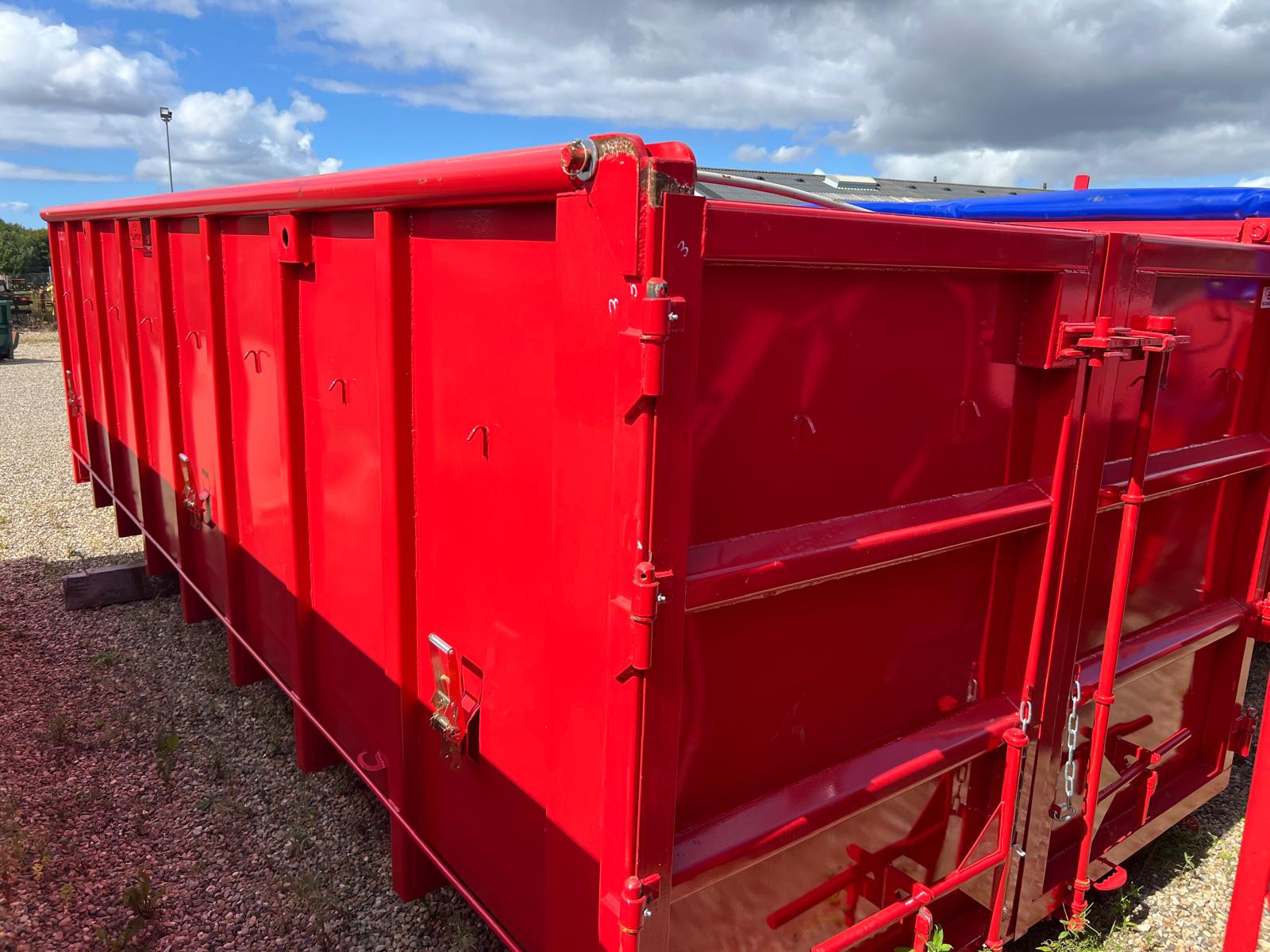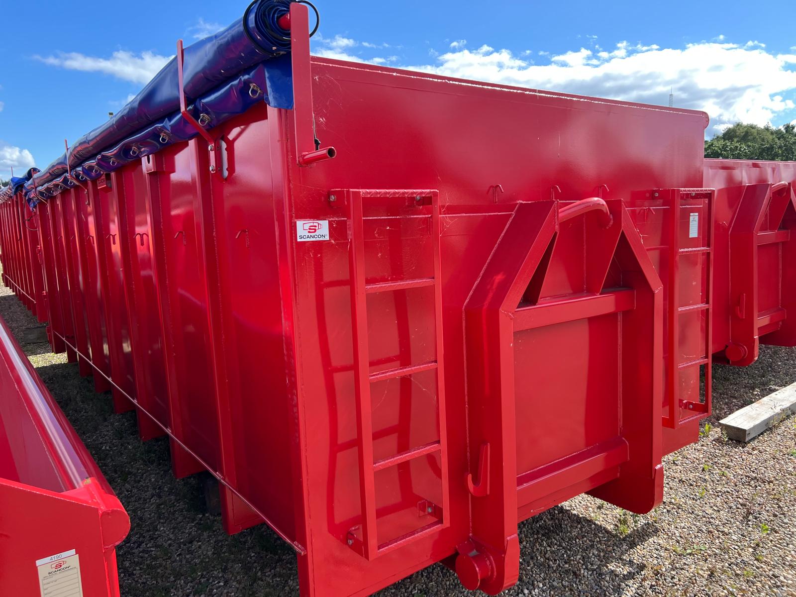 Denne container er efter monteret med mørkeblå rulle presenning