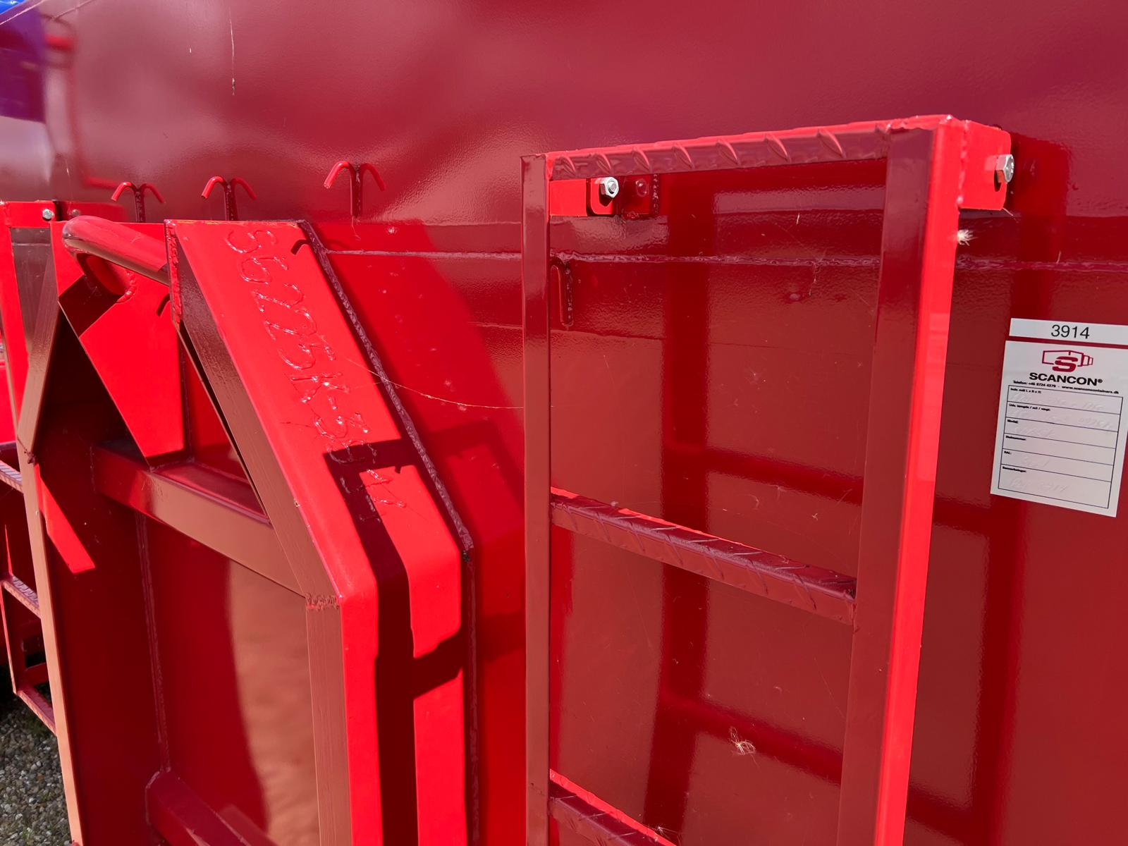 Containeren kombi bagdøre/ låge som kan bruges som tophængt bagsmæk + sidehængte bagdøre monteret i bagramme så den kan anvendes som normal container med bagdøre