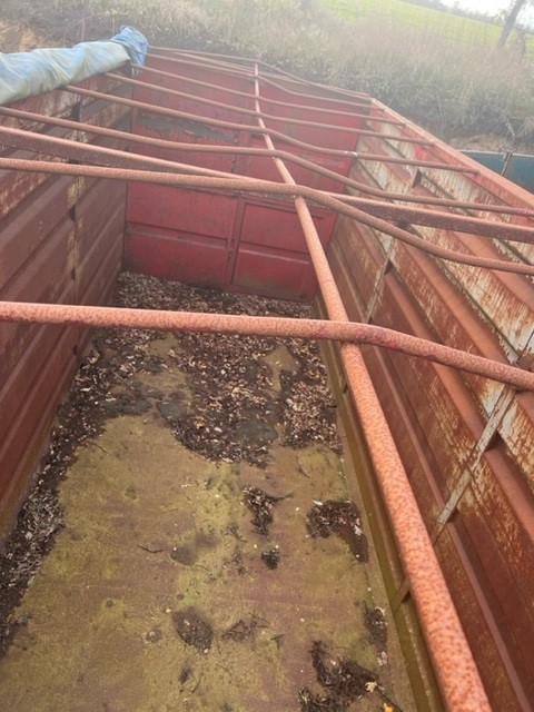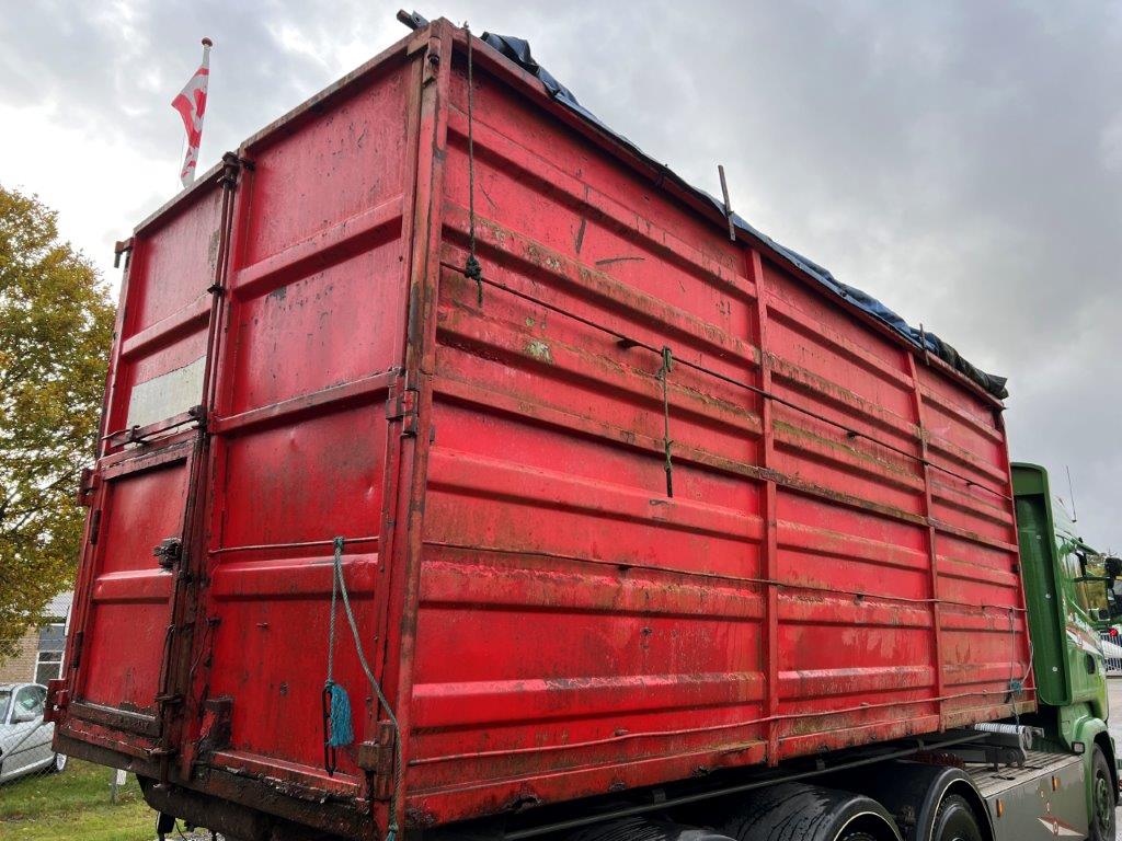 6000mm wirehejs container - 33 m3 - sidehængte bagdøre - indv. højde 2375 mm - midterulle - Rullepresenning samt bærestænger hertil - forbehold for stand på presenning - Farve Rød -