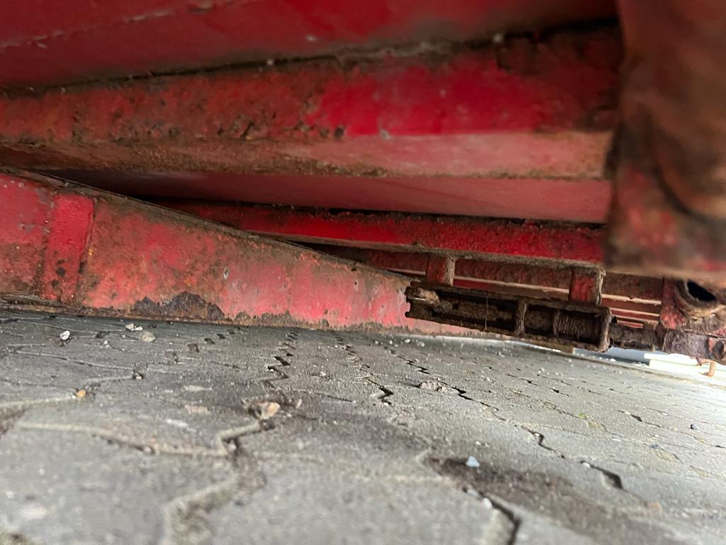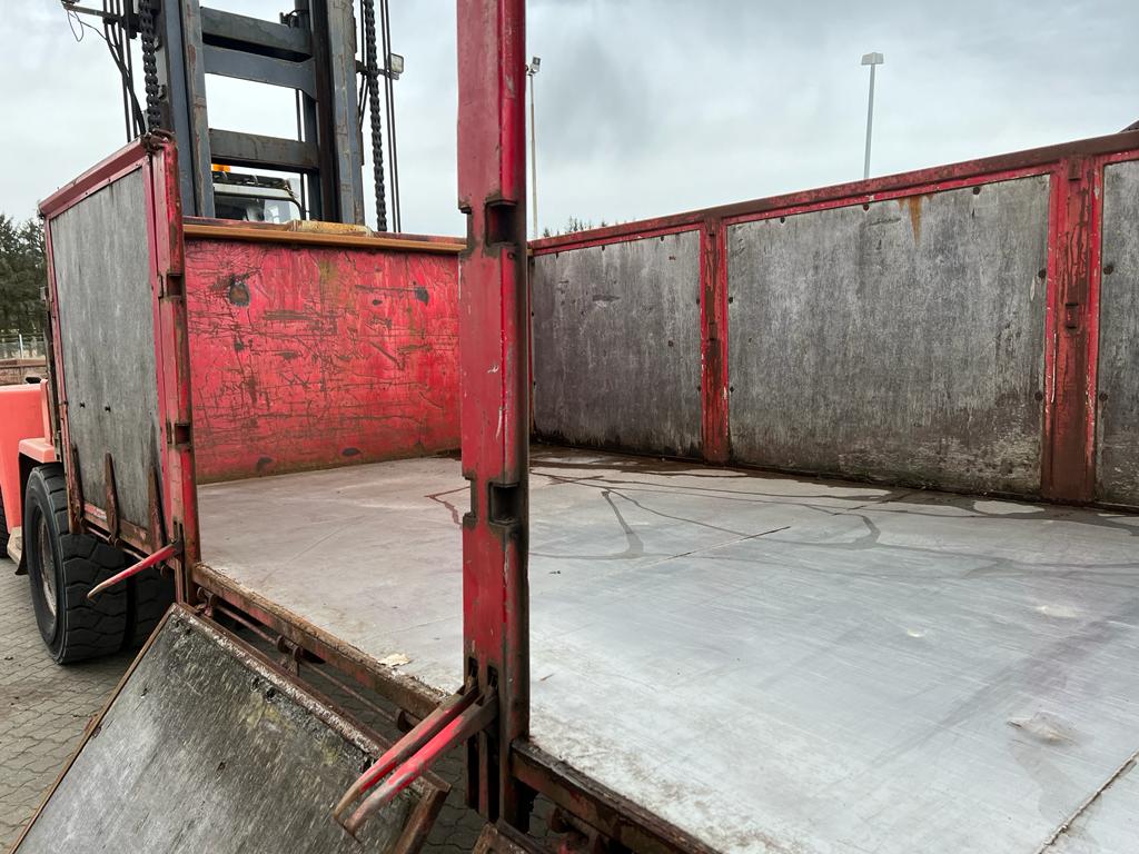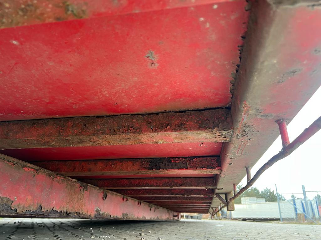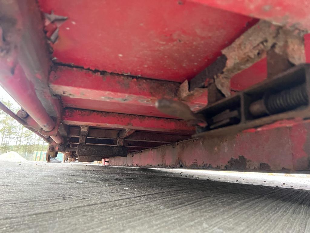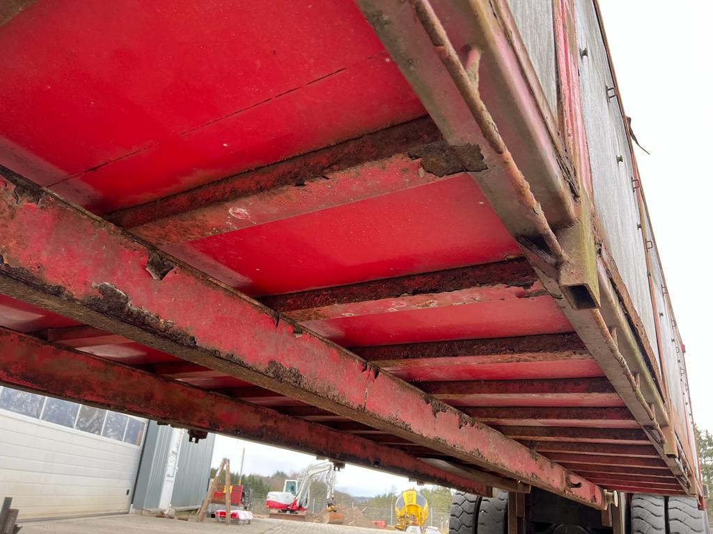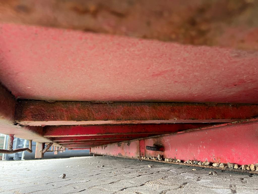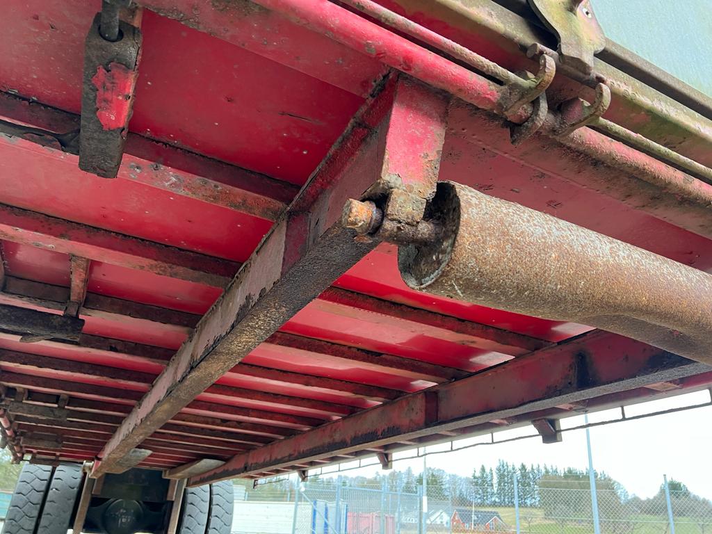Opbygget med følgende indv. mål: L6190 x B2440 x H1240 mm (Totallængde ca. 6350. mm alt inkl.) - Top/bundhængte finersider + bagsmæk - Optræk for krog + Wirehejs - Midterrulle - Rød
