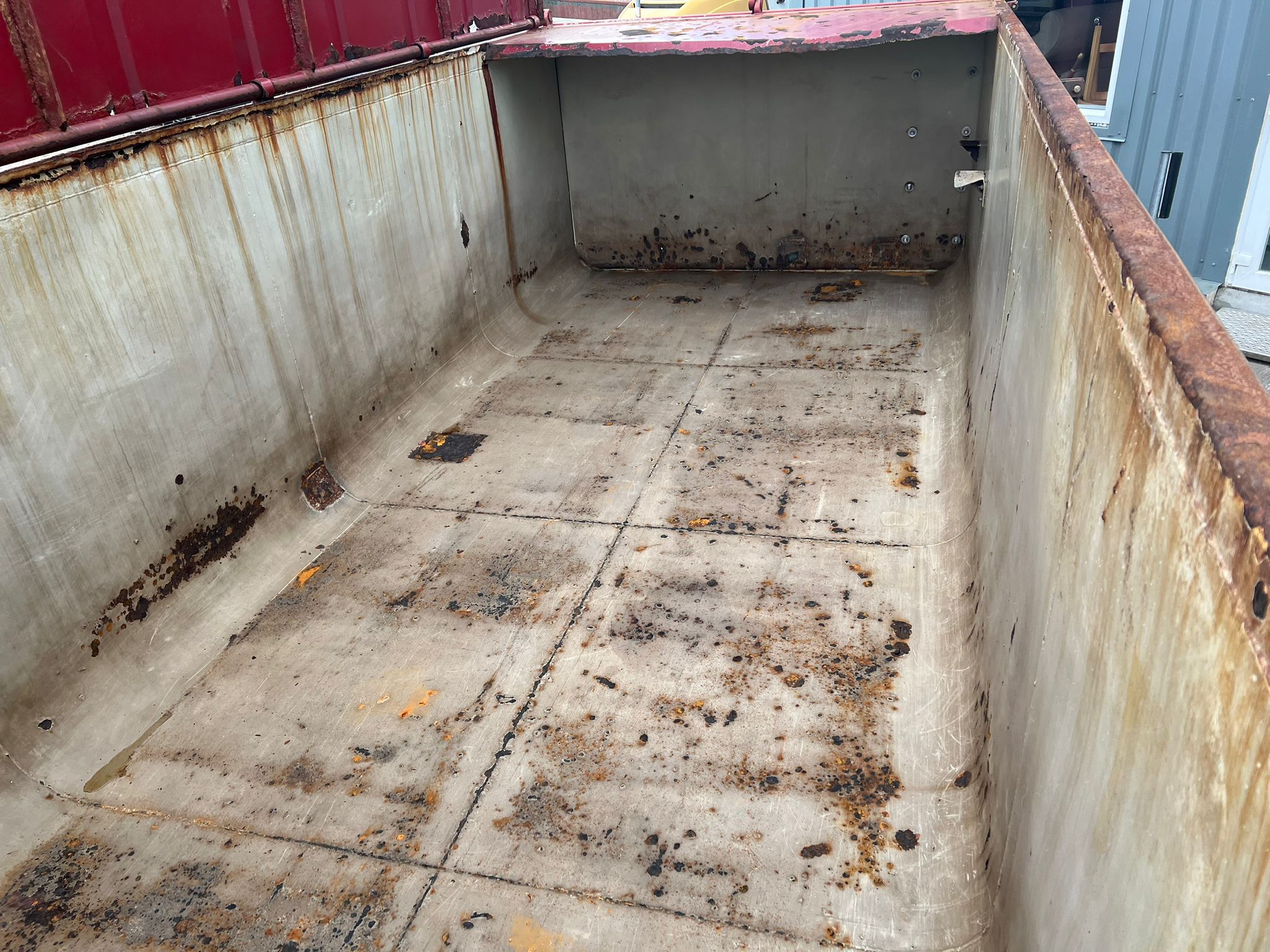 Opbygget med følgende indv. mål: L 6000 x B 2380 x H 1400 mm (Indv. længde i top: 4900 mm pga. flade hvor låg lægger)
