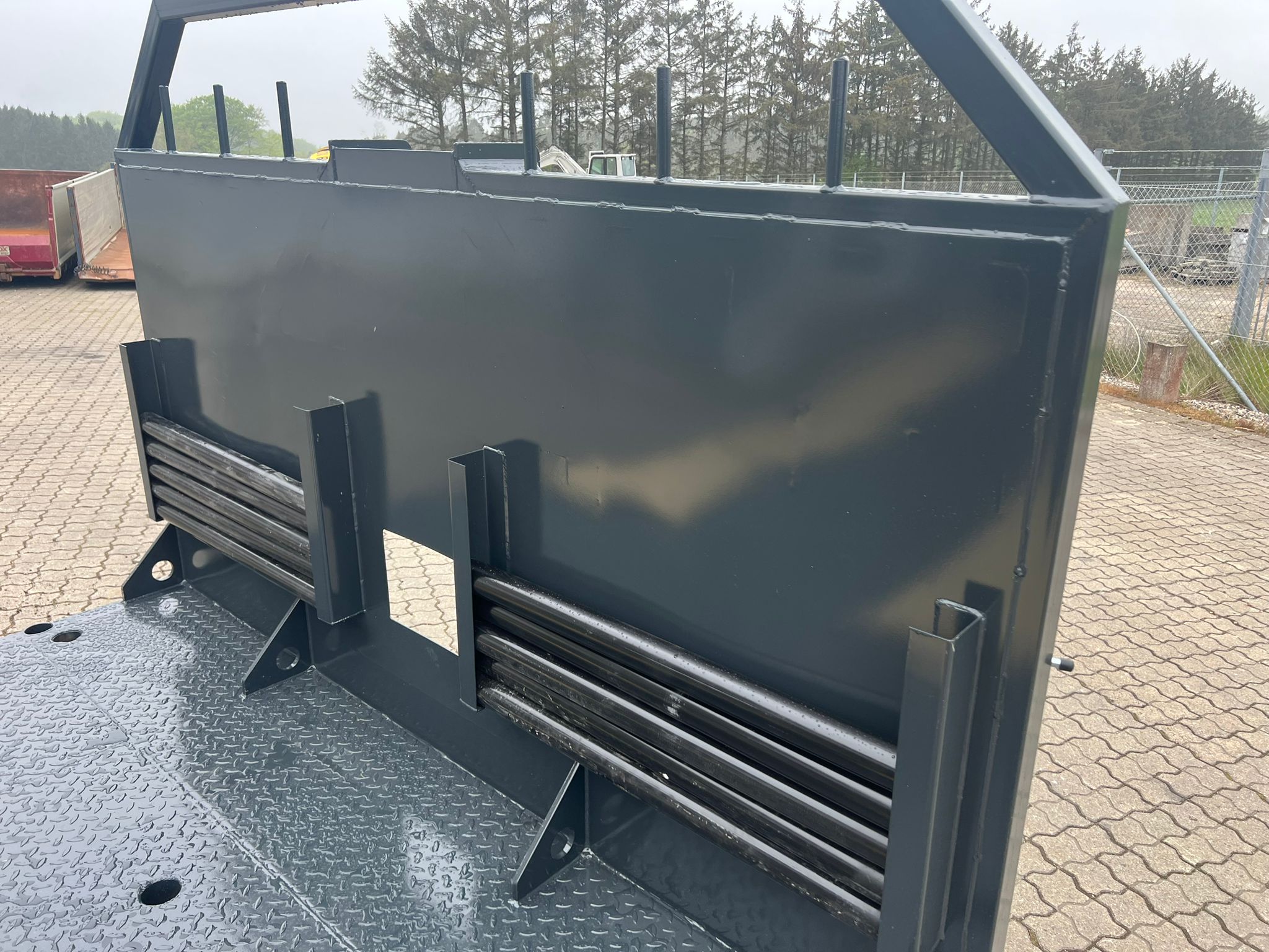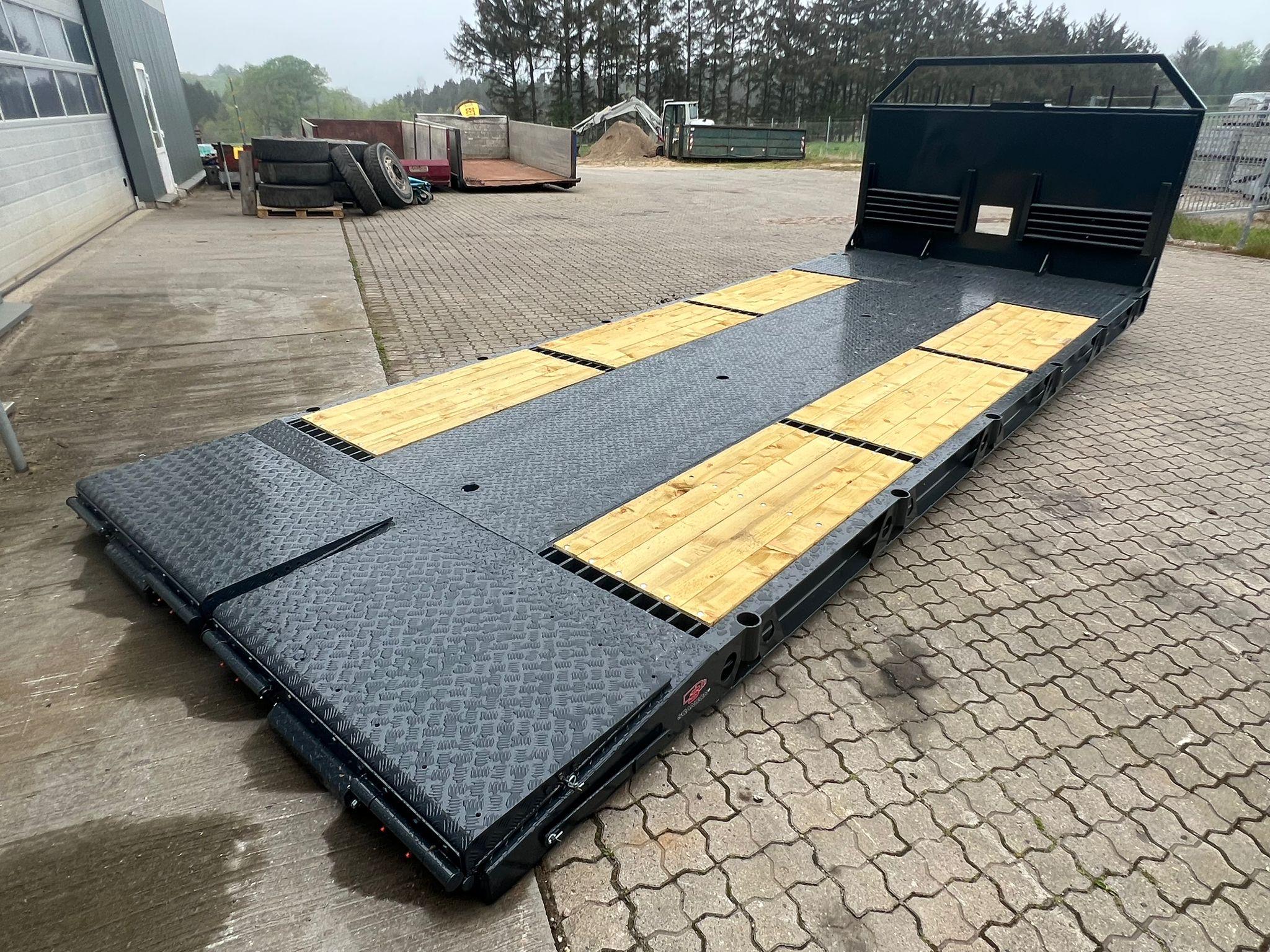 Yderligere forstærket med 1 x UNP200 vanger i hver side som kantskinne til kørsel m/tungt læs