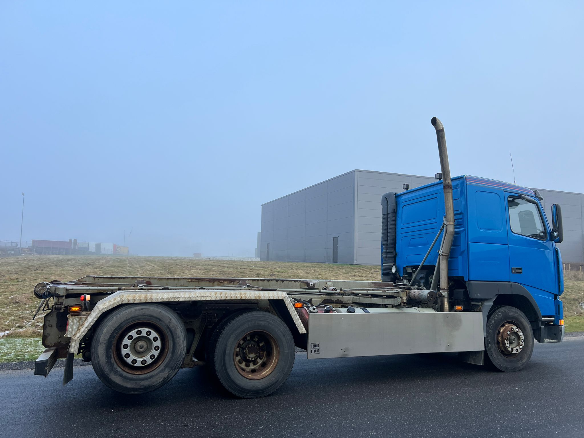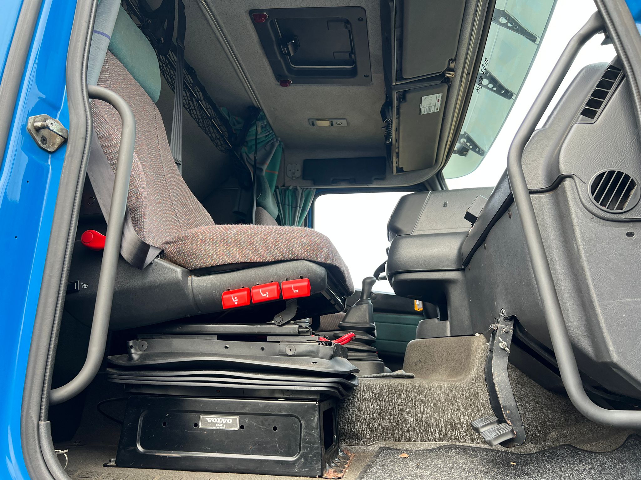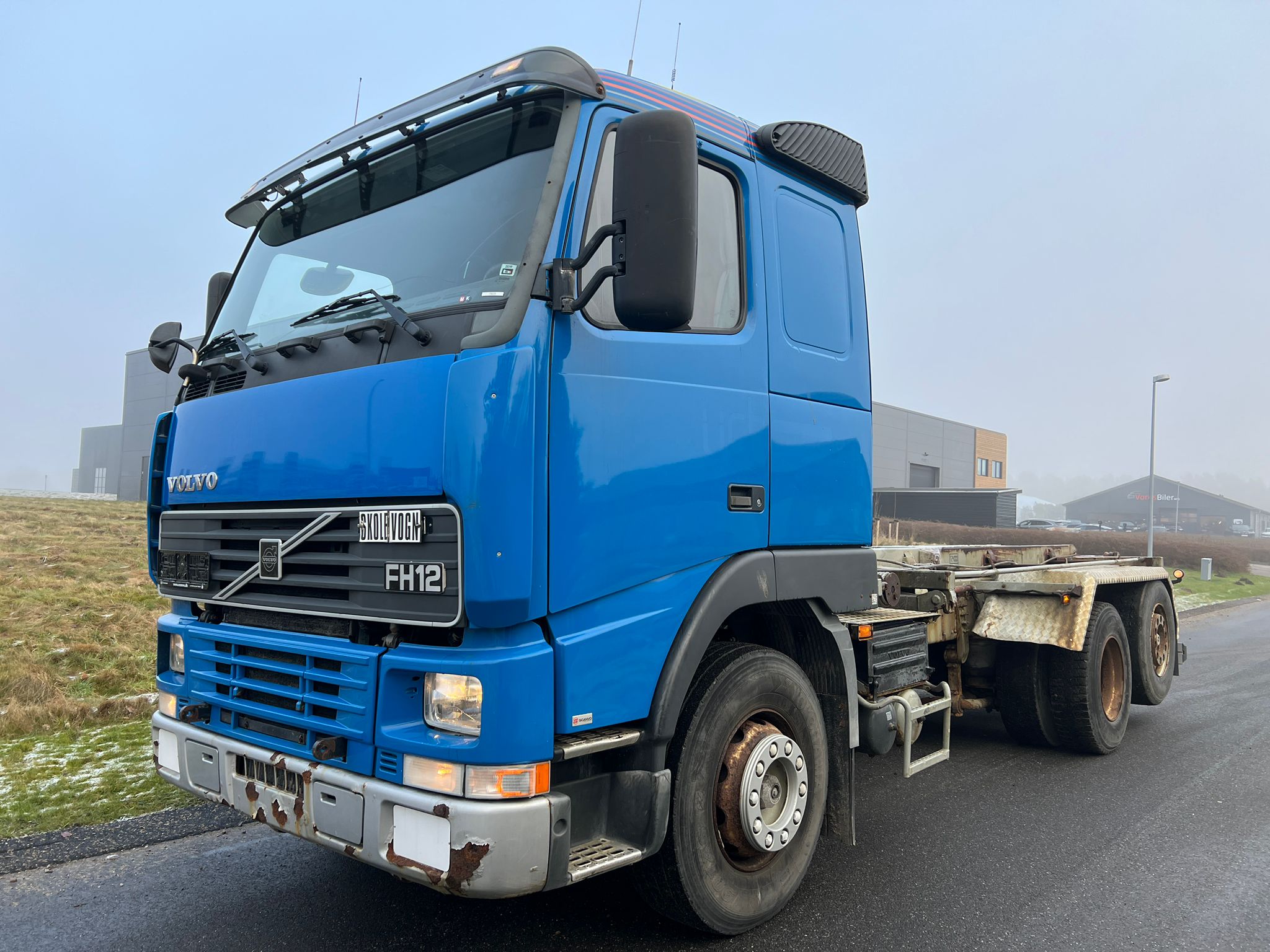 Volvo FH12-420HK 6x2 med Wirehejs, fuld luftaffjedring, manuel gear 12 trin med range og split, gl. type fartskriver, udstyret med pedaler i højre side til øvelseskørsel.
