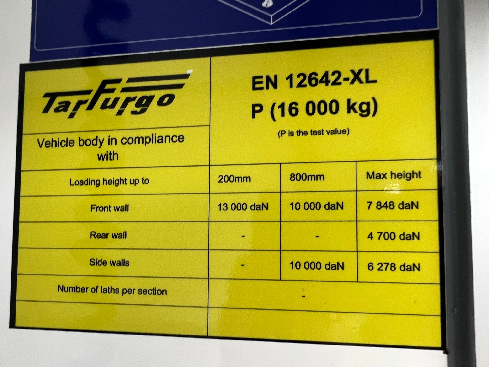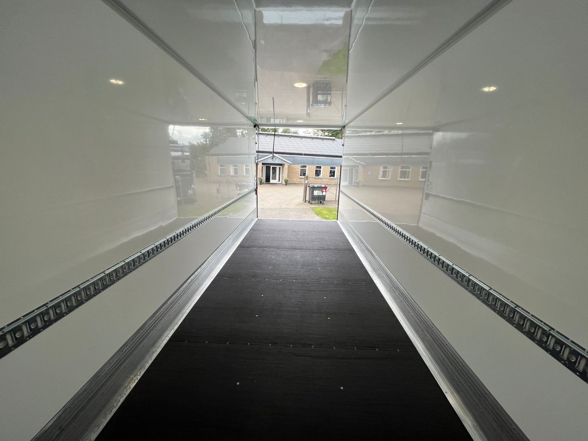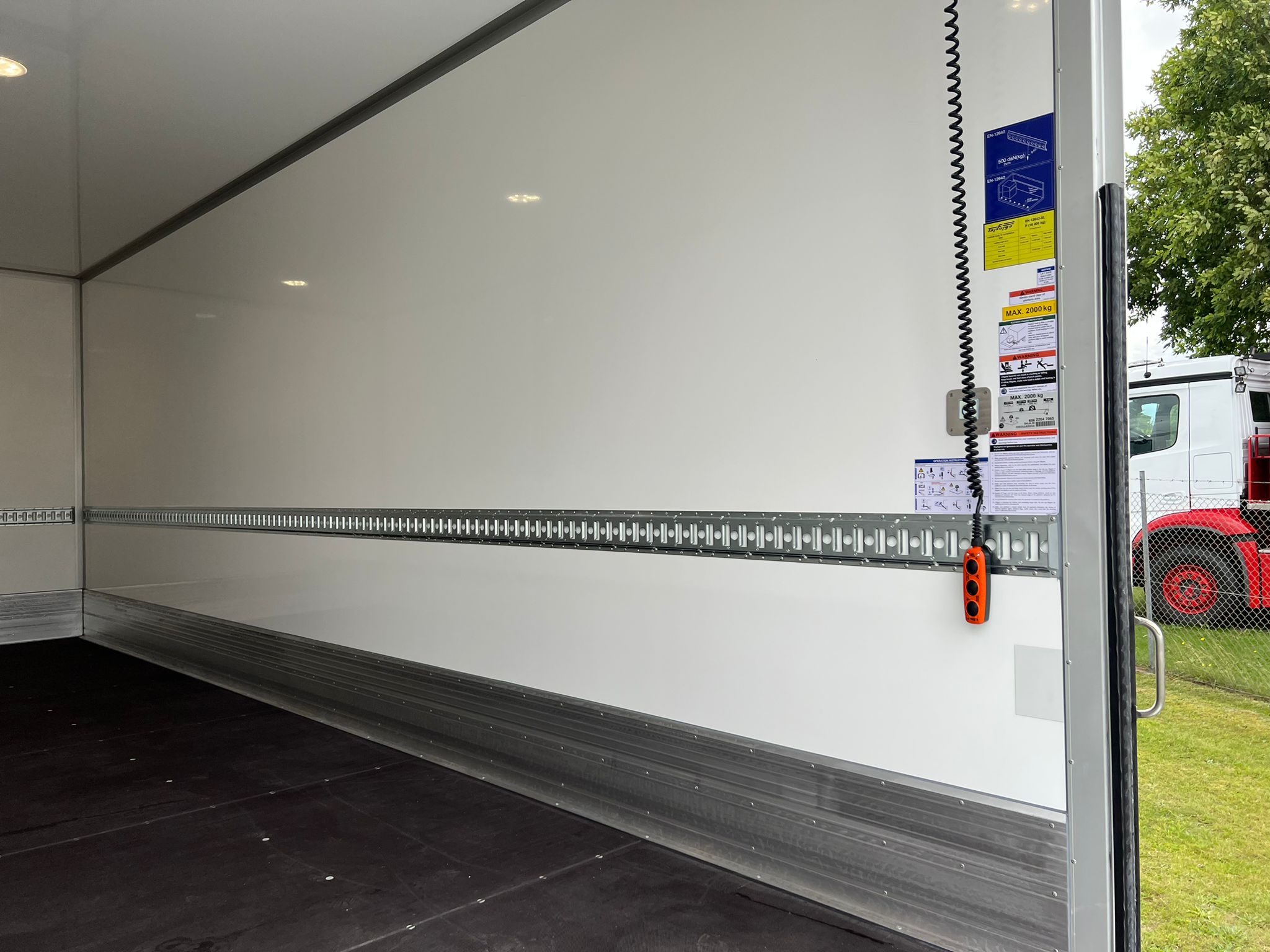 Plywood fast kasse fra Tarfurgo med indvendige ladmål: L7330 x B2470 x H2670 (Udv. H4000 mm) - 1 surringsrække indv. i kassen - Lys indv. i kassen