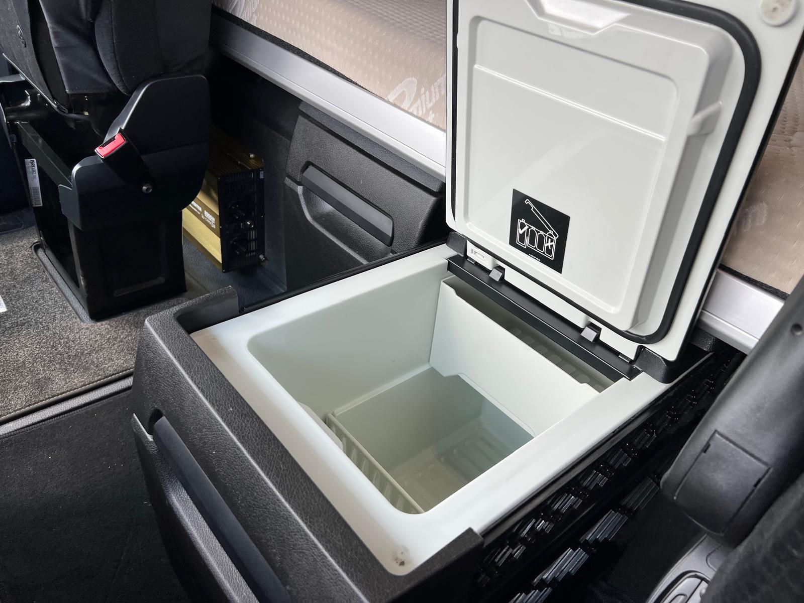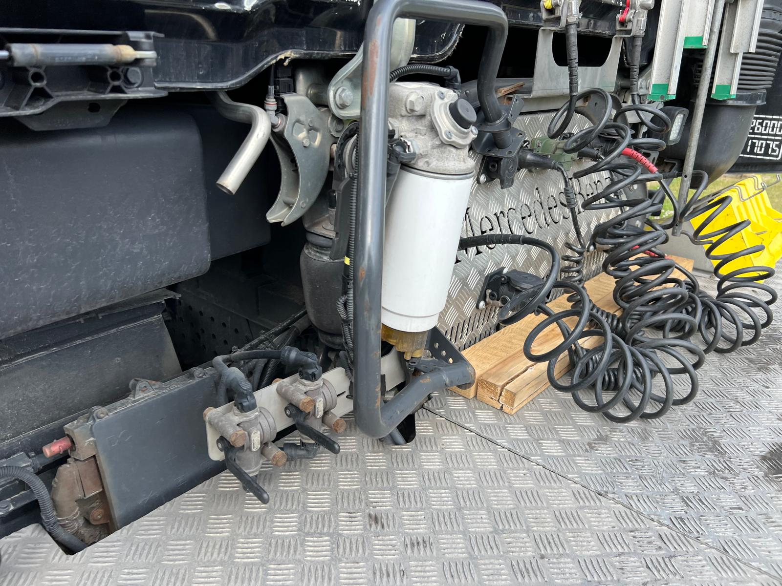 Forskydelig luft betjent skammel - stor alu afdækning foran skammel + bag skammel - spærre haner til luftslanger - 2 x LED lys ved hanebro samt 2 stk LED bag tagspiler i toppen - 24 volt strømstik - 490 ltr diseltank - ca 60 ltr AD blue tank - batterier monteret i overhæng