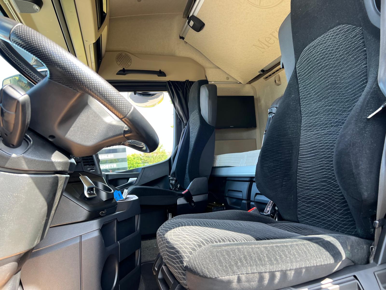 Sovekabine førerhus med høj tag + plan gulv - luft på førerhus - 2 køjer - klimaanlæg - motor/kabinevarmer - køleskab - walkie - radio - Digitale sidespejle - navigation - 2000 watt inverter 24/220 volt - TV