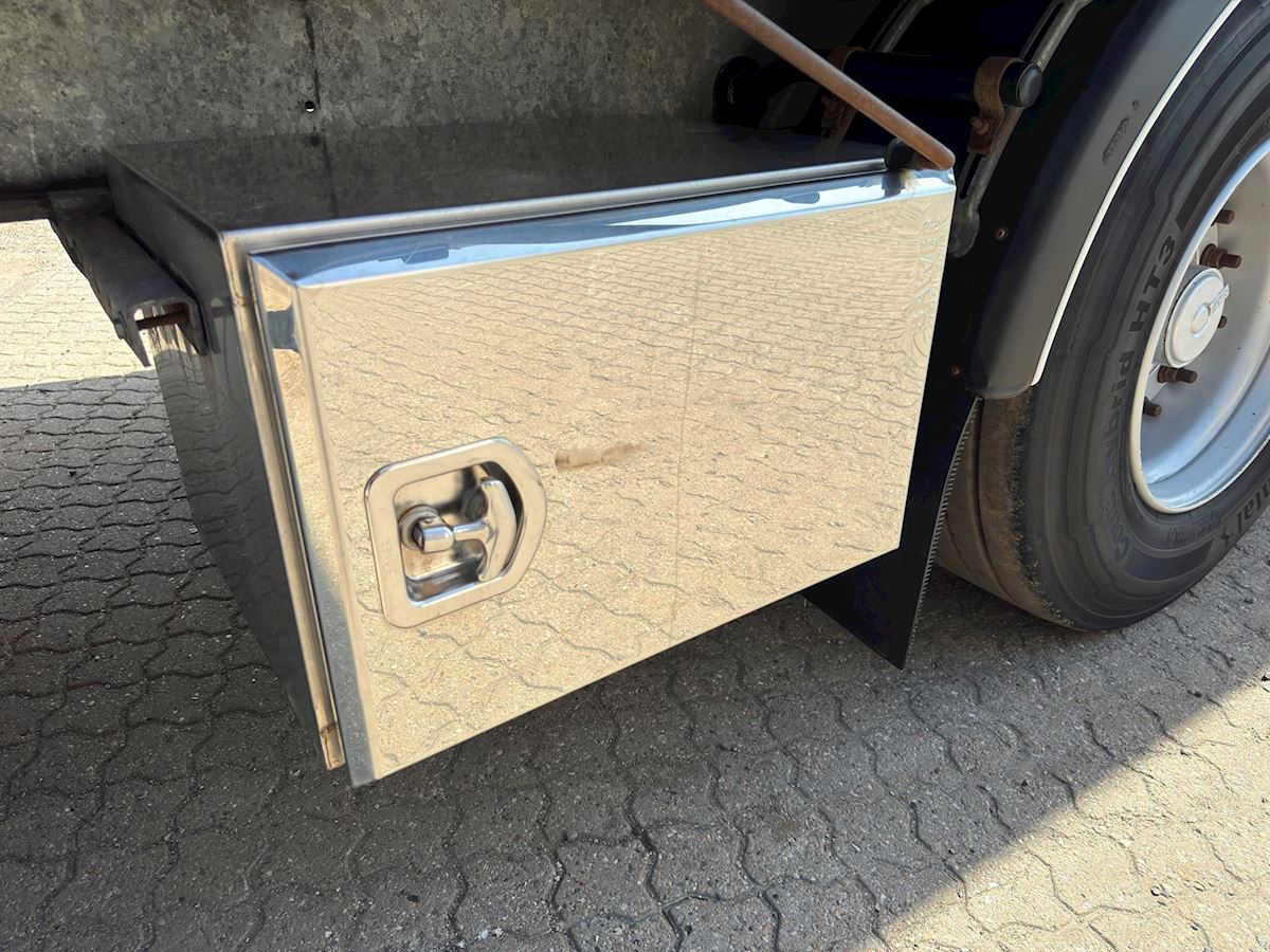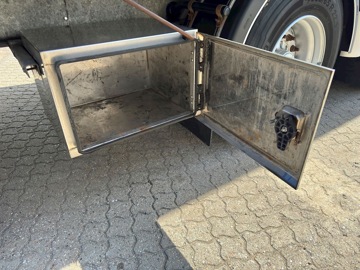 1310 - 1810mm akselafstand - SAF aksler med tromlebremser - Luftaffjedret - Forskudt selvsporende 3-aksel - Galvaniseret chassis - Rustfri værktøjskasse - Arbejdslys under lad.