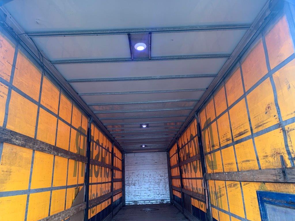 indv ladmål ca. 11050 x H 2680 x B 2480 mm - alu dørk ladbund med omega hård træ / stål under - fast ståltag - loftlamper indv. i kasse - pakkelem i højre side